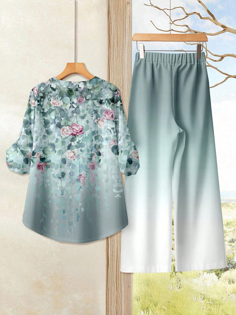EMERY ROSE 2pcs Casual Elegant Floral Pattern Women Set, Suitable For Summer Fall Clothes Ladies Casual Sets Blouse And Pants Set 2pc Set Women Women Plus Clothing Sets 2pc Set Women Plus Summer Pants Sets Floral Blouse And Pants Set Womens Casual Pant S