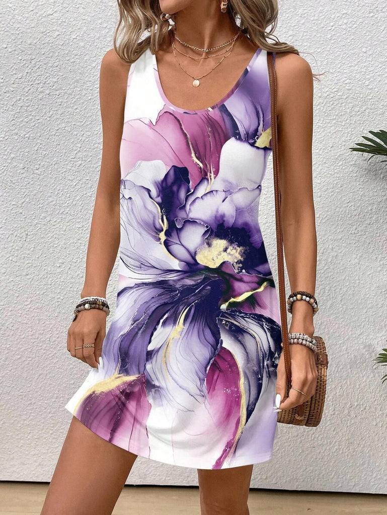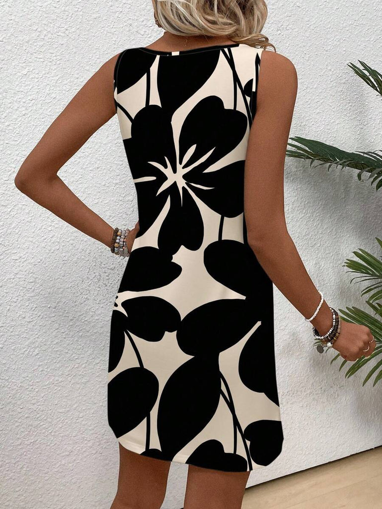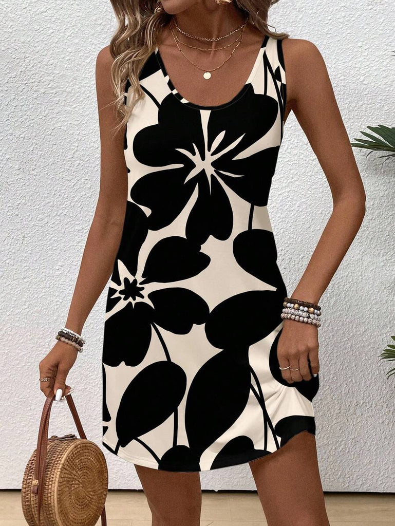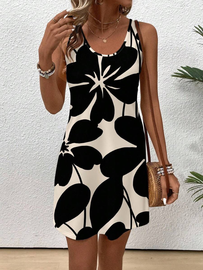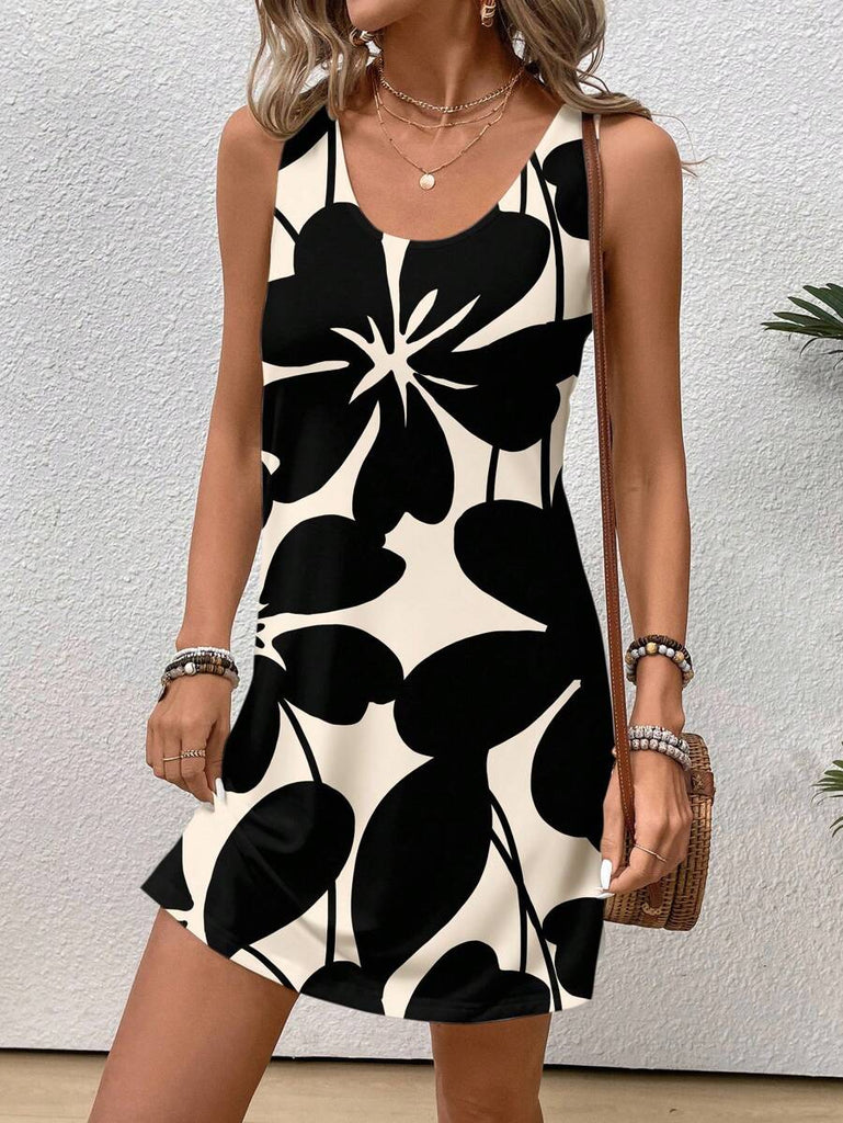 EMERY ROSE Casual Floral Pattern Round Neck Short Dress For Women, Suitable For Summer,Casual Dresses For Women Chic Dress Women Vacation Dress,Fall Clothes For Women