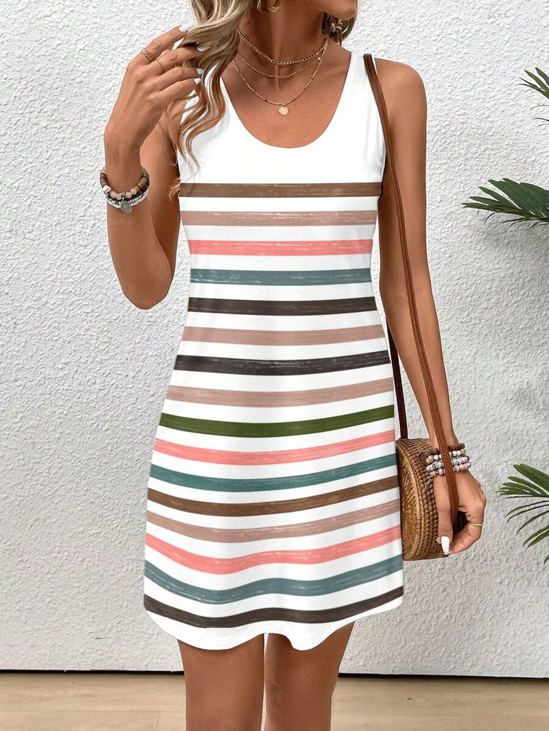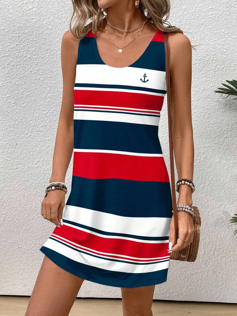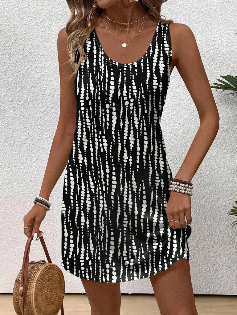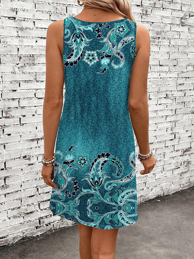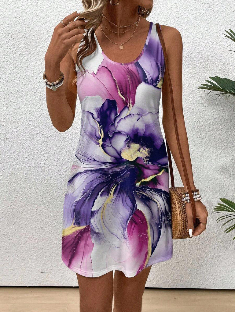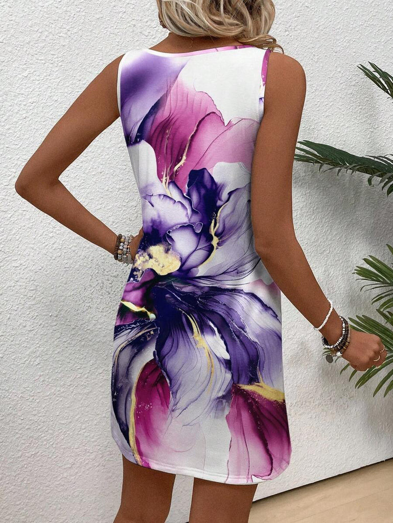 EMERY ROSE Casual Floral Pattern Round Neck Short Dress For Women, Suitable For Summer,Casual Dresses For Women Chic Dress Women Vacation Dress,Fall Clothes For Women