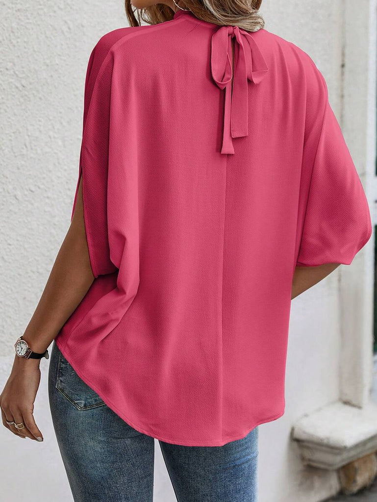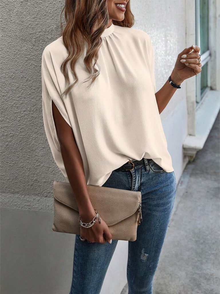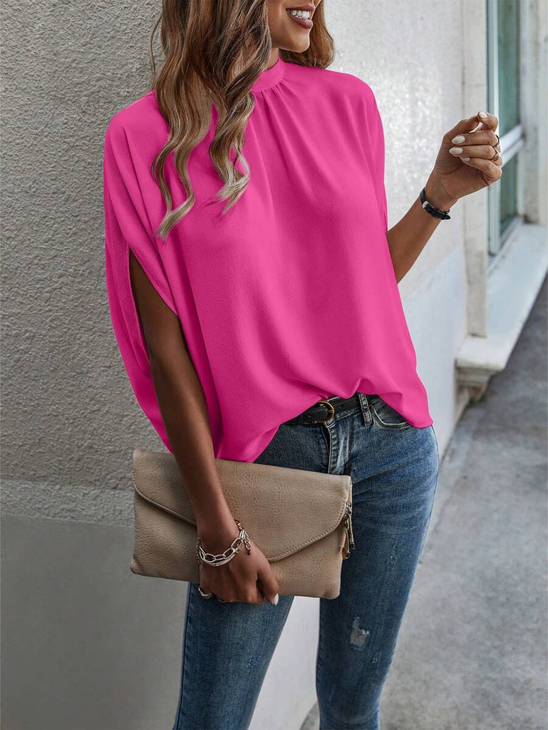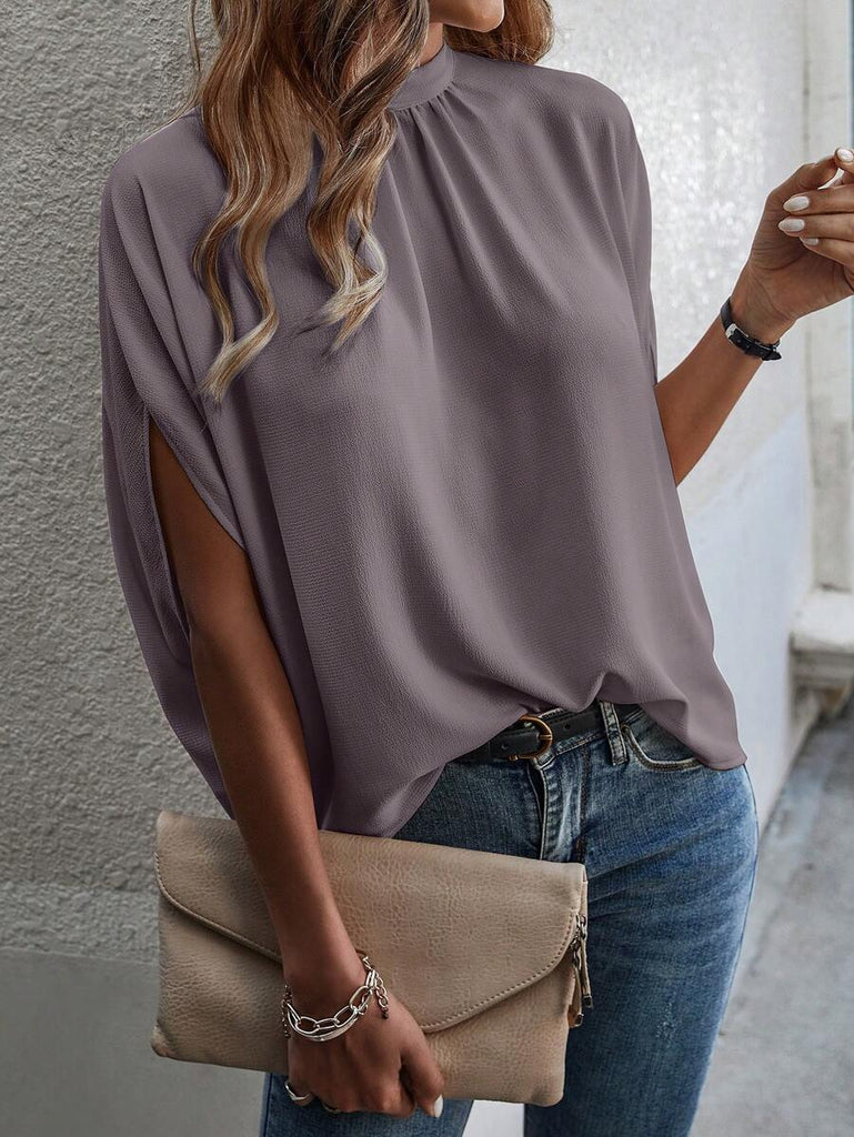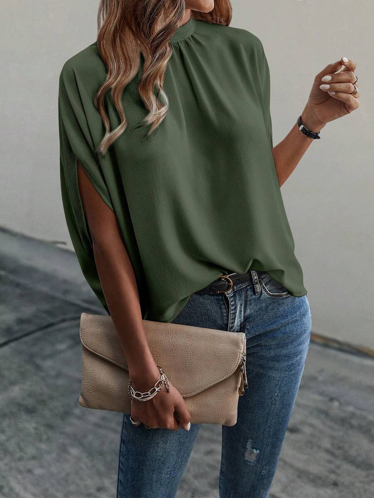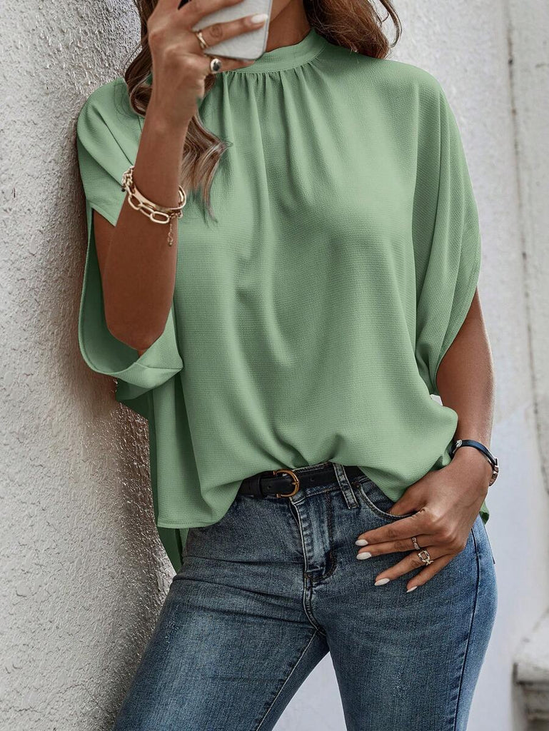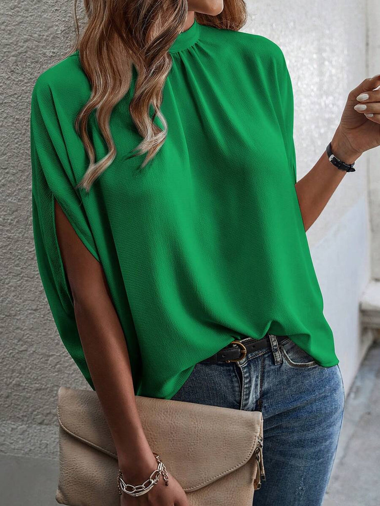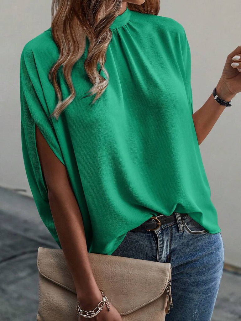 EMERY ROSE Summer Casual Solid Color Stand Collar Mid-Sleeve Shirt
