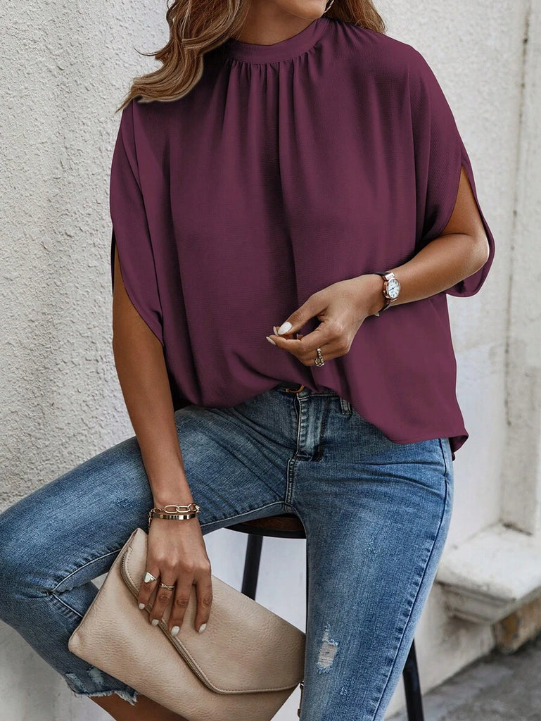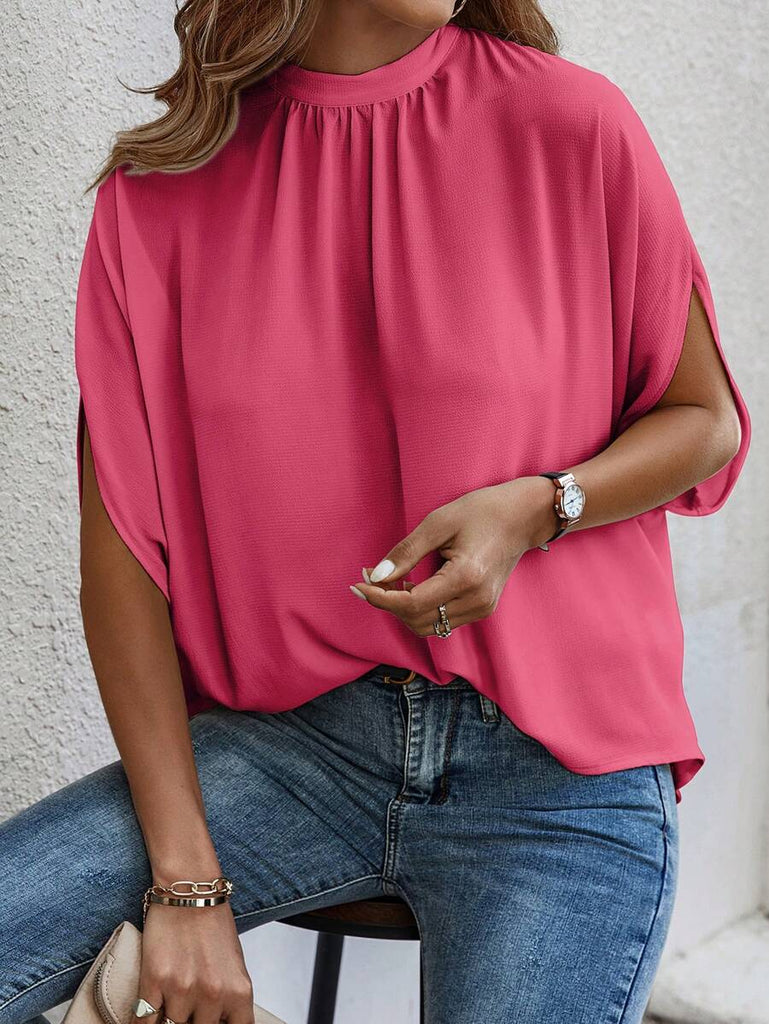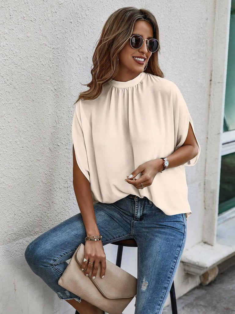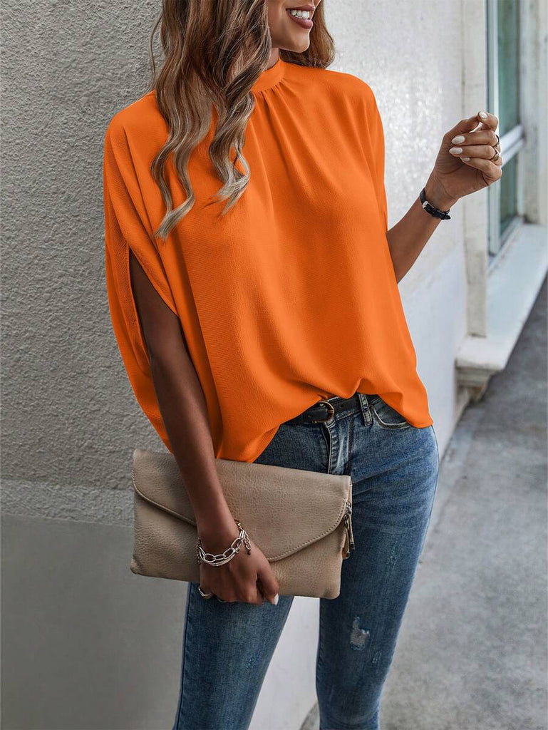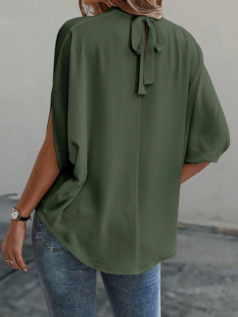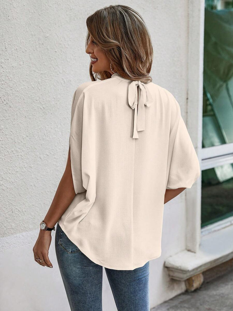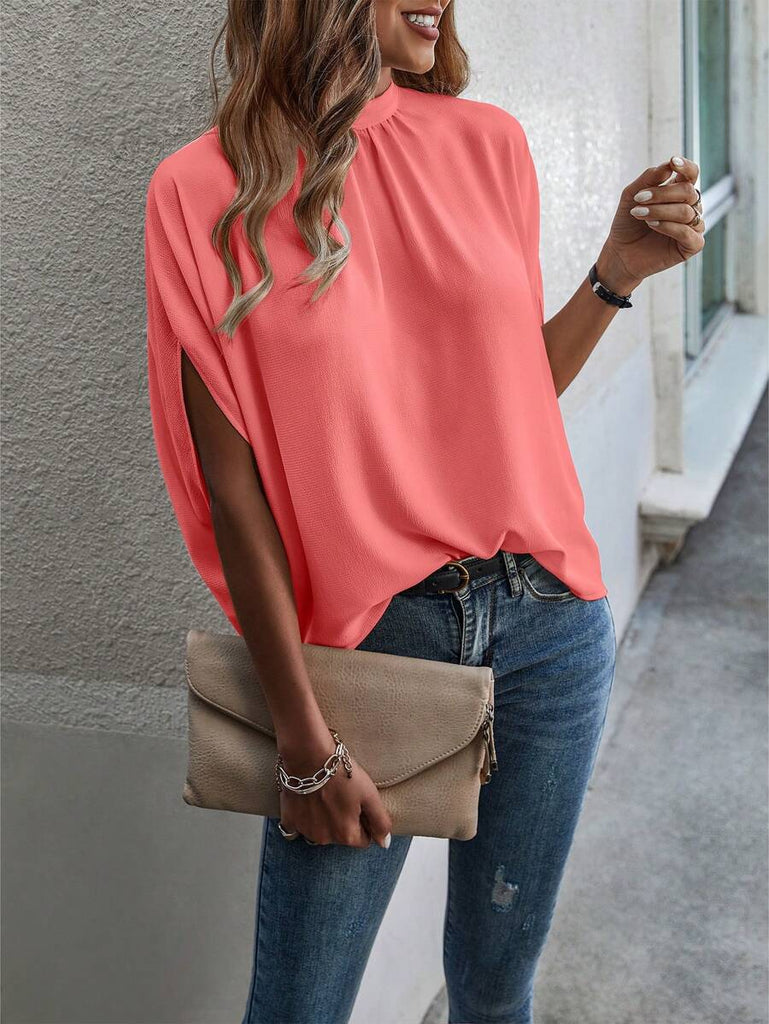 EMERY ROSE Summer Casual Solid Color Stand Collar Mid-Sleeve Shirt