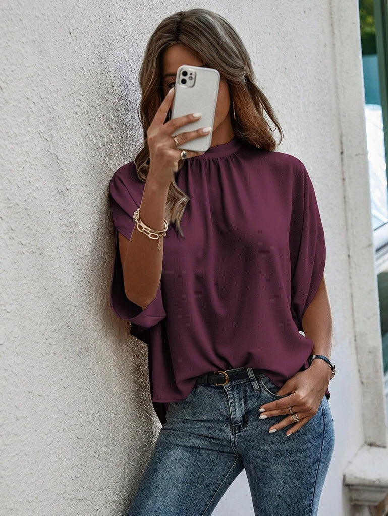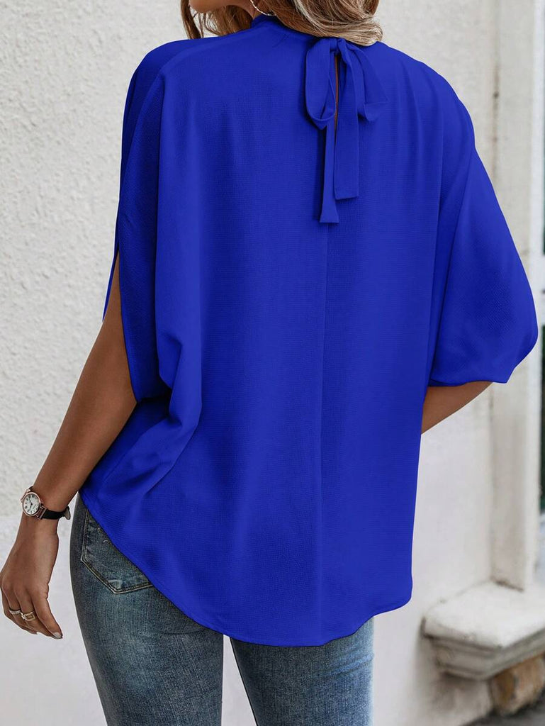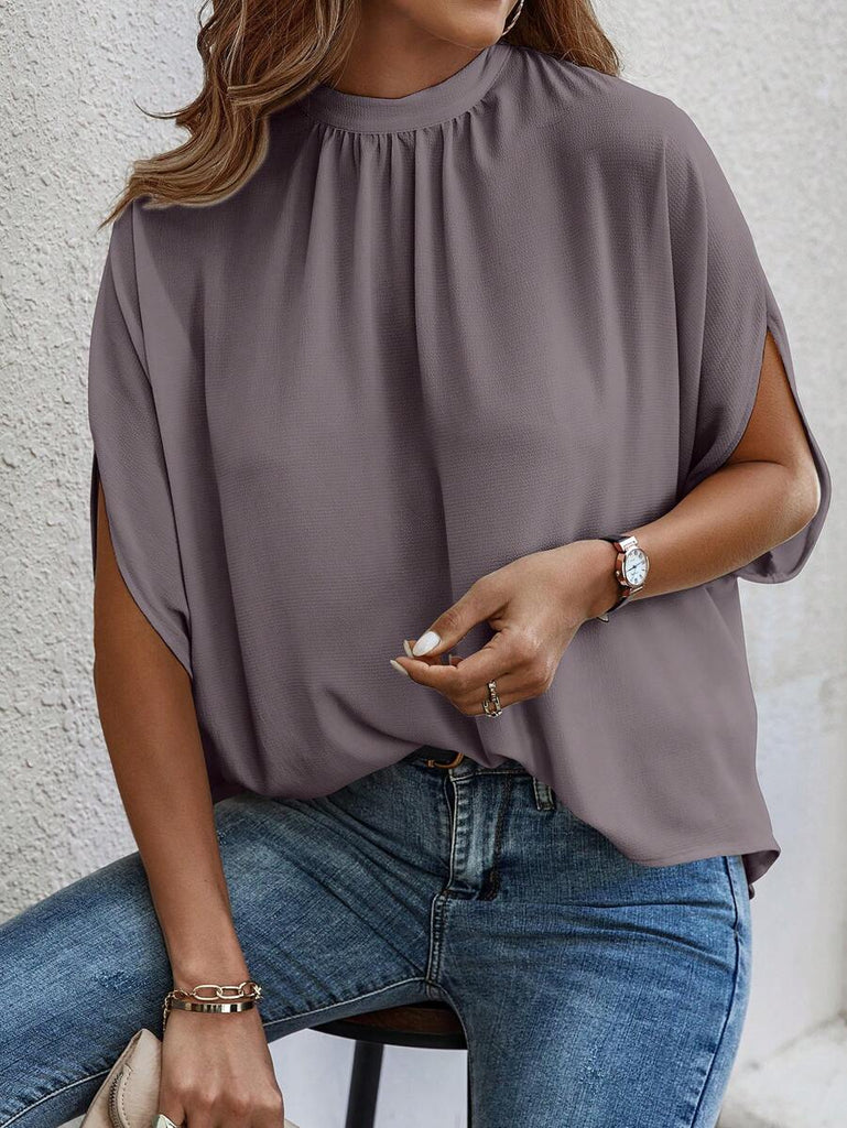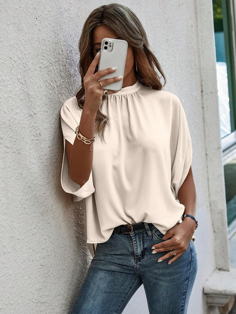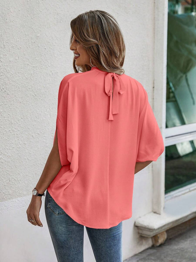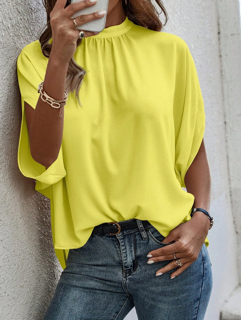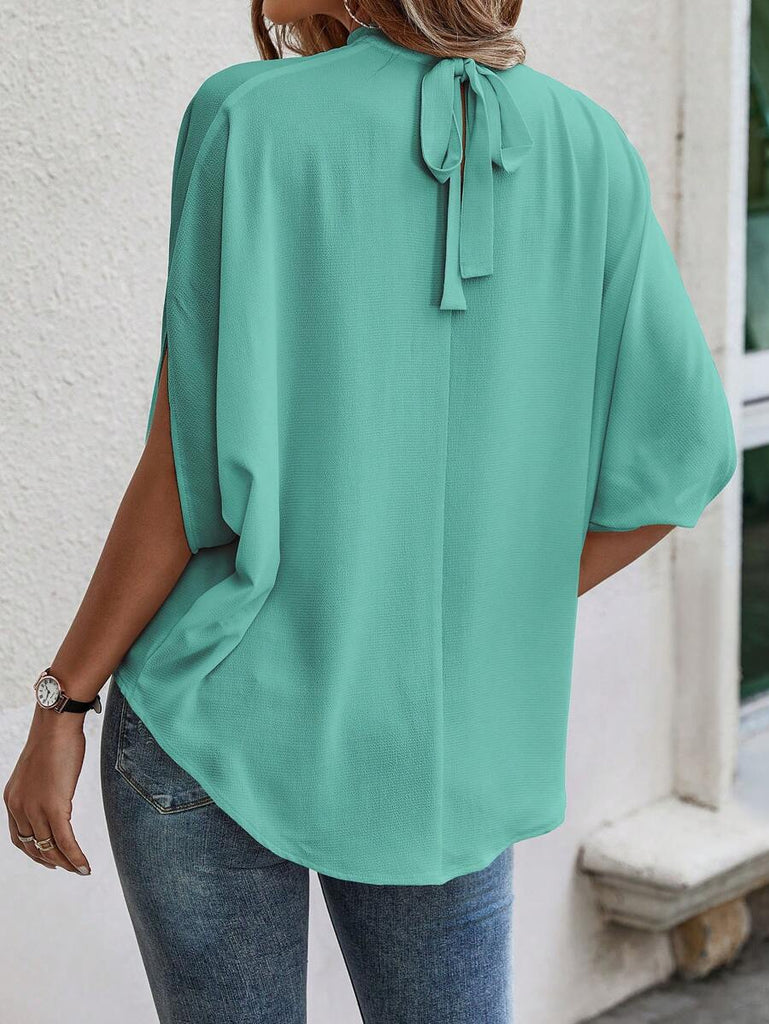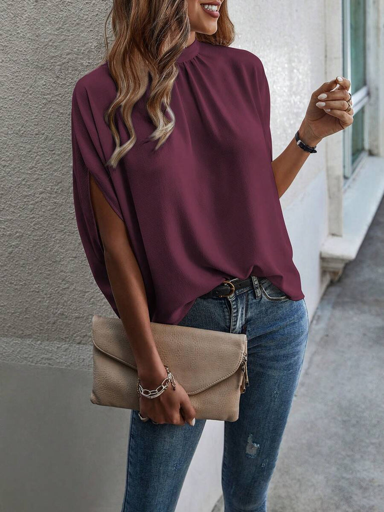 EMERY ROSE Summer Casual Solid Color Stand Collar Mid-Sleeve Shirt