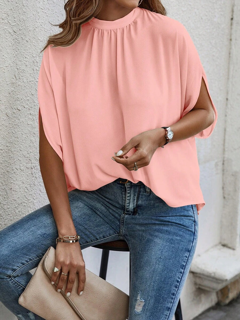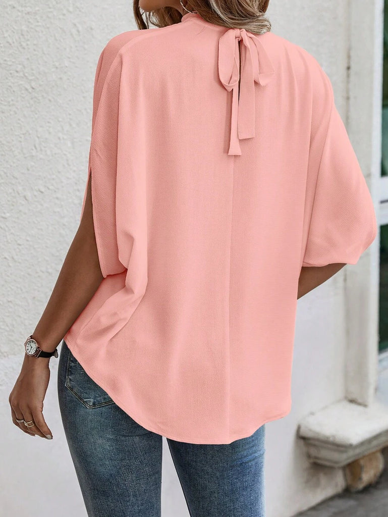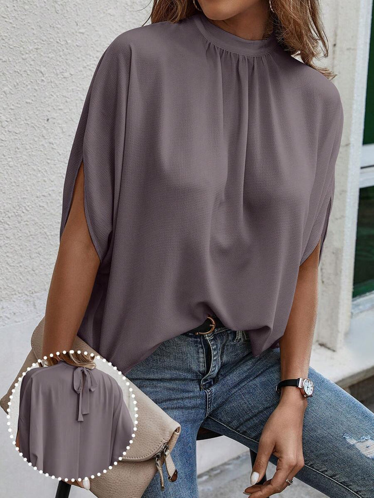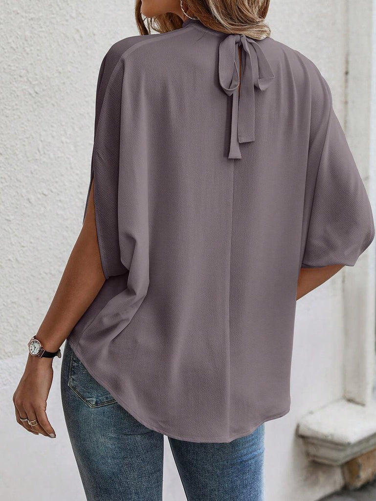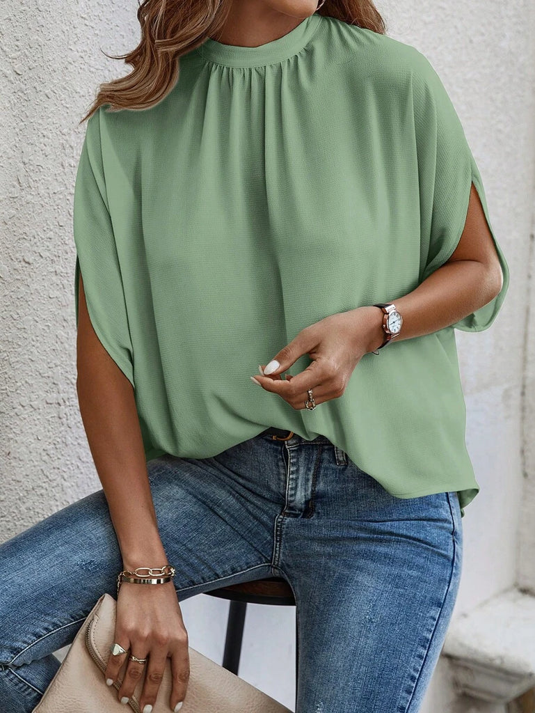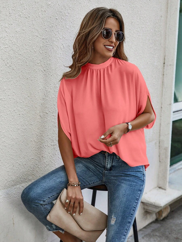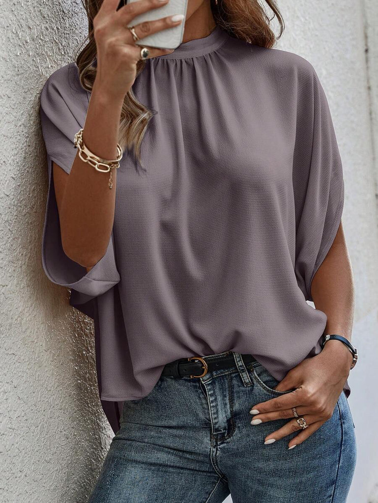 EMERY ROSE Summer Casual Solid Color Stand Collar Mid-Sleeve Shirt