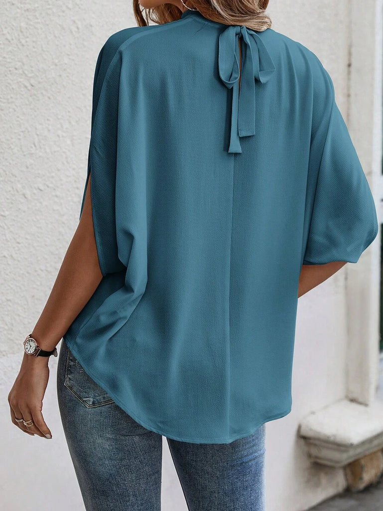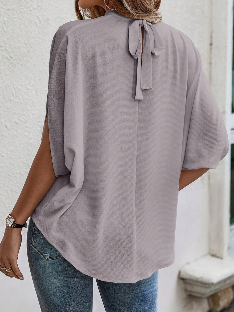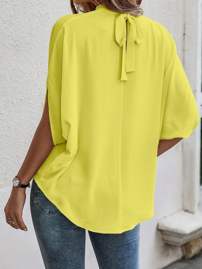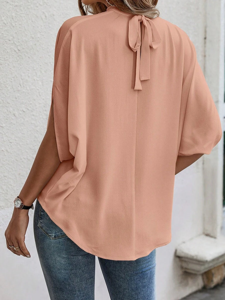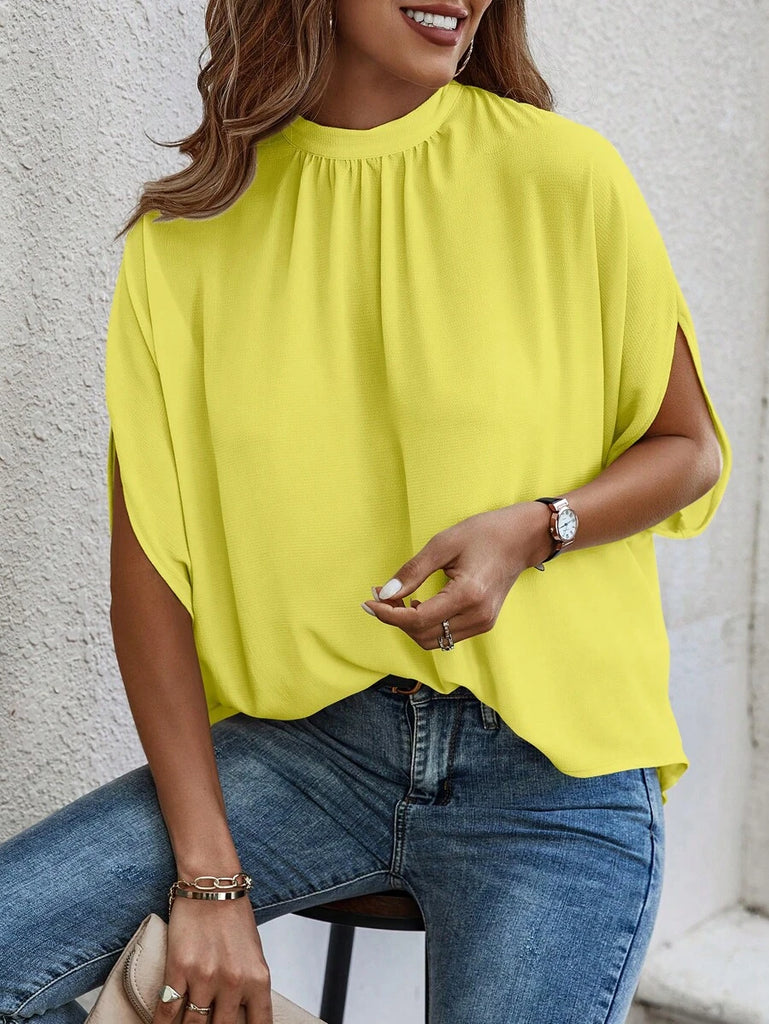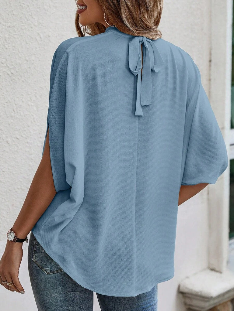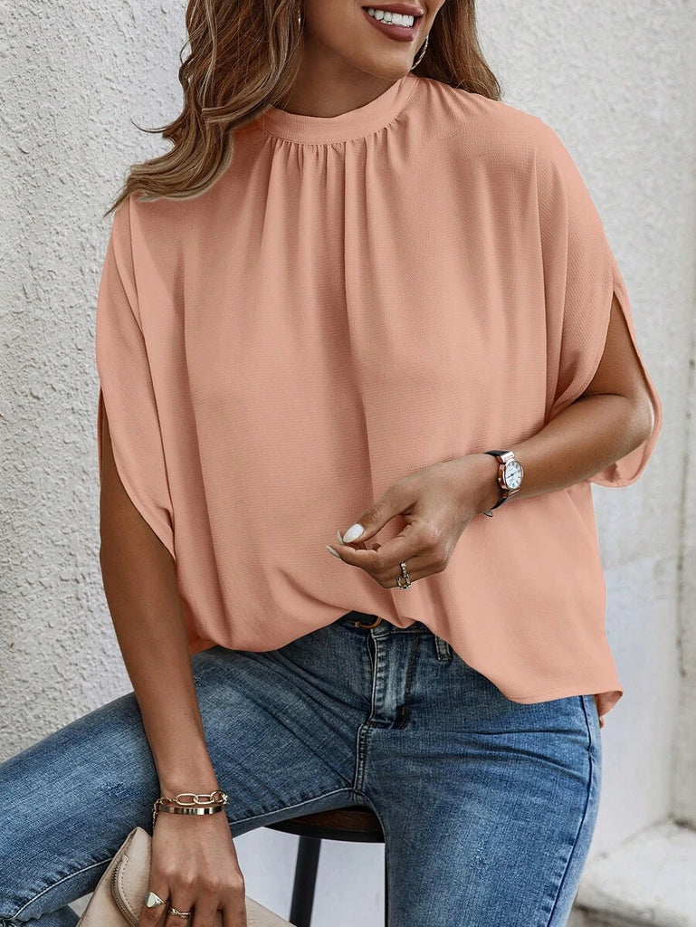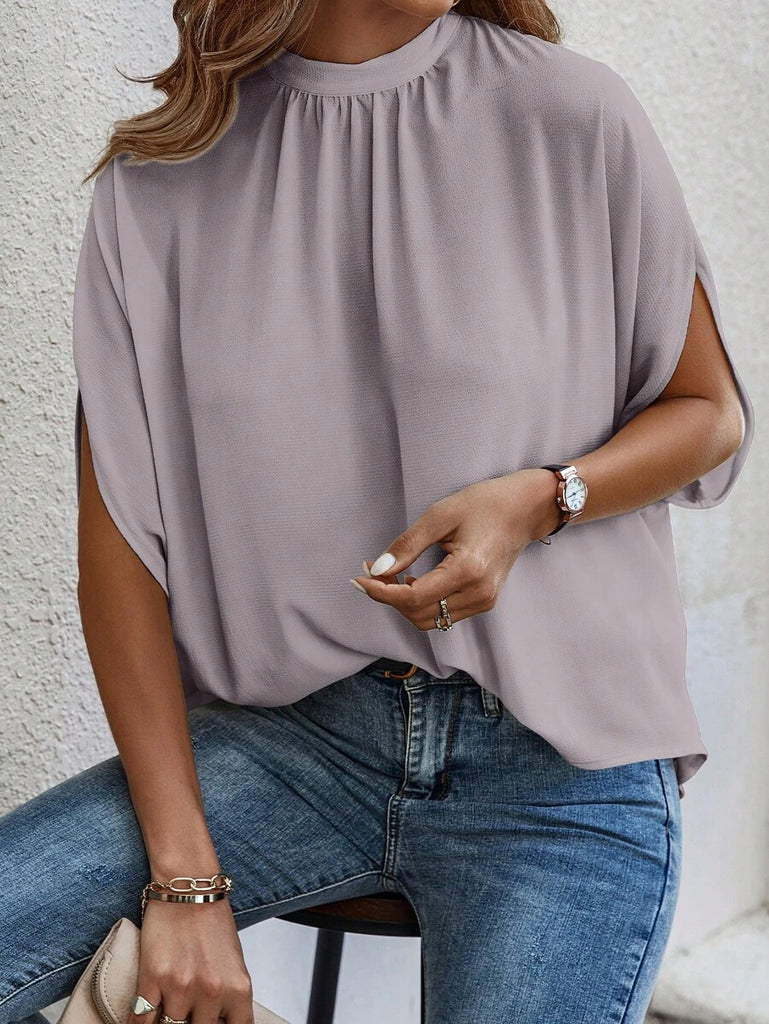 EMERY ROSE Summer Casual Solid Color Stand Collar Mid-Sleeve Shirt