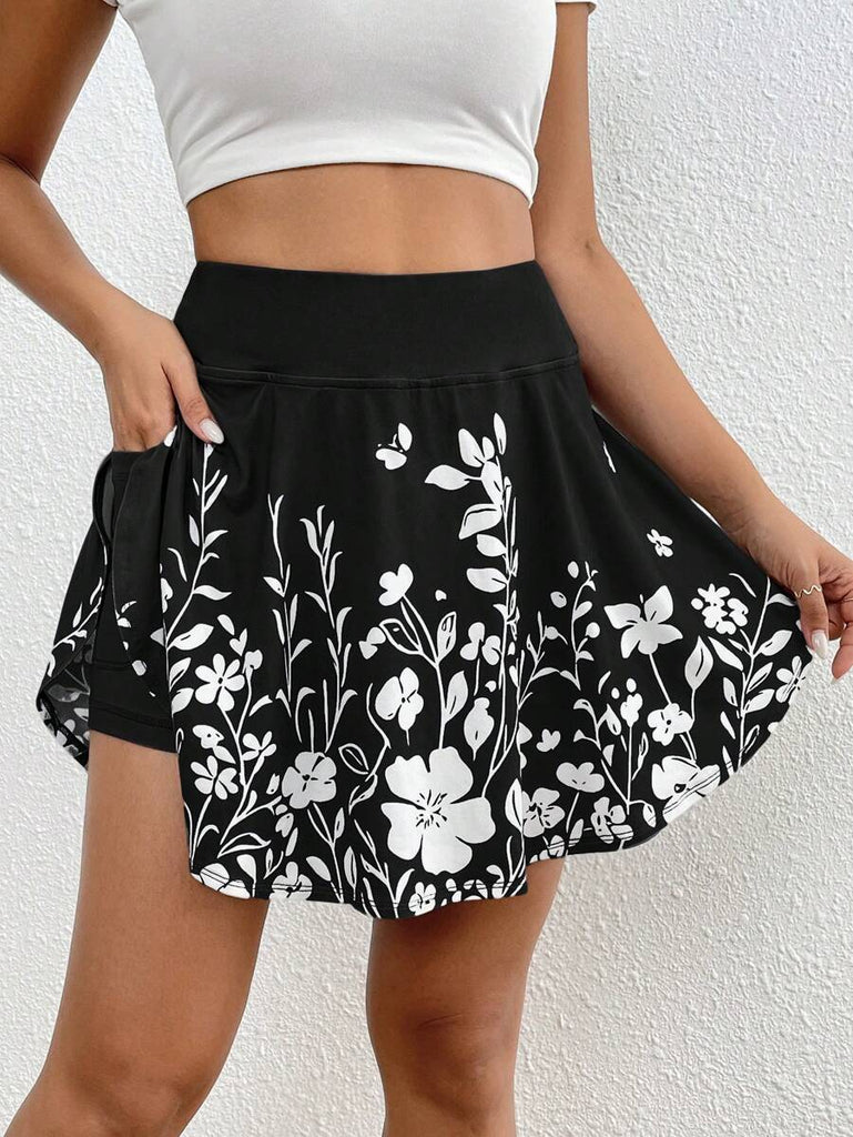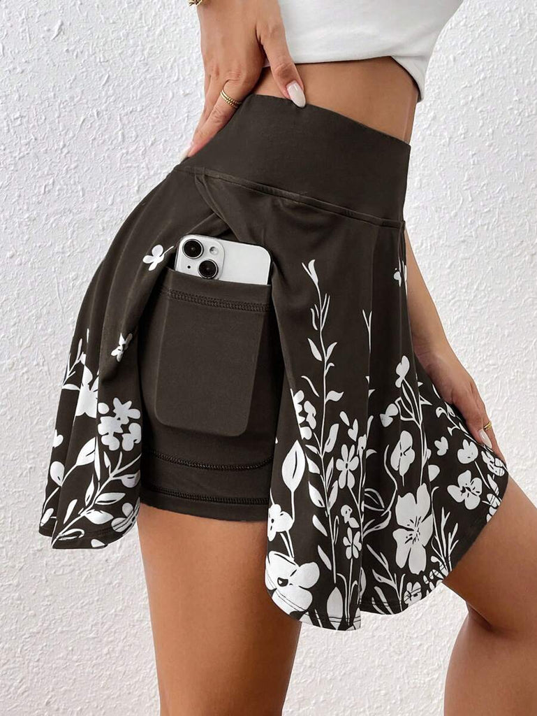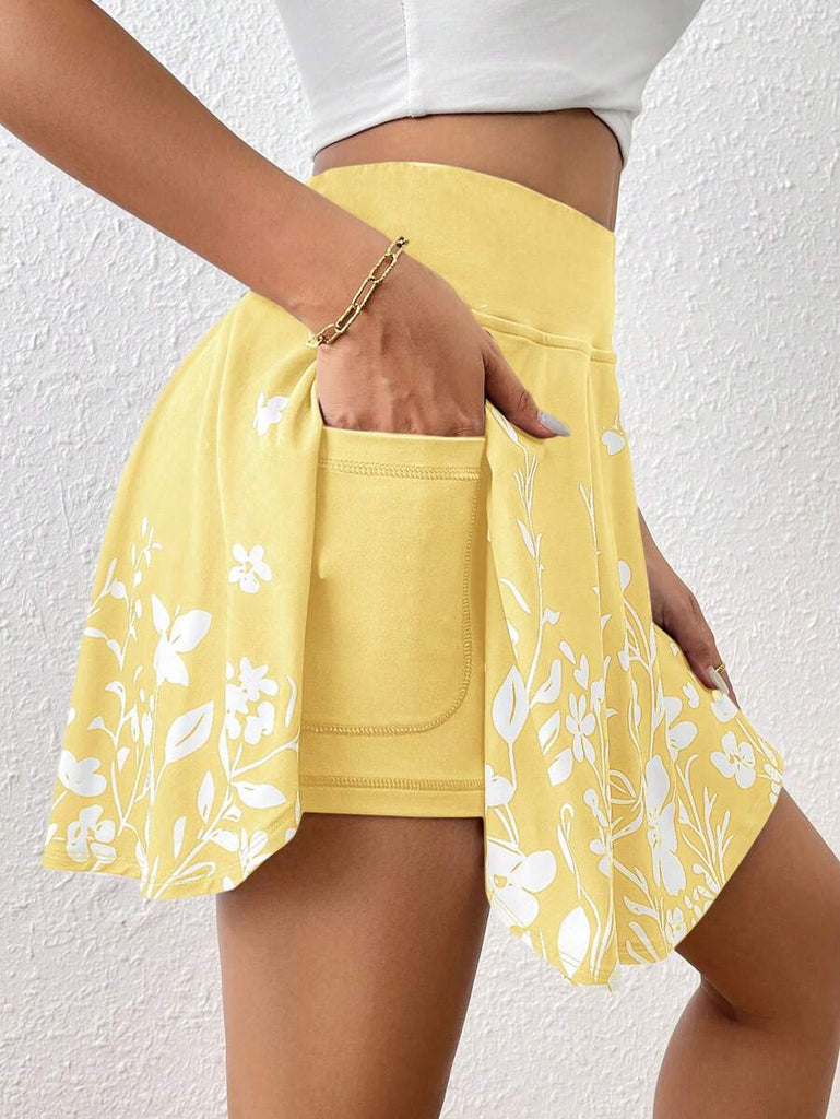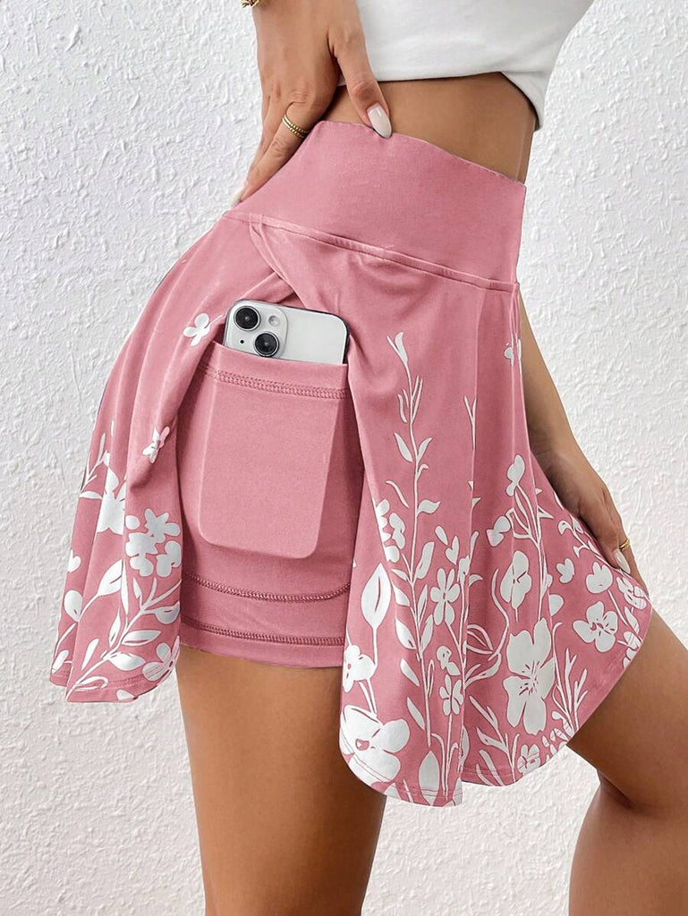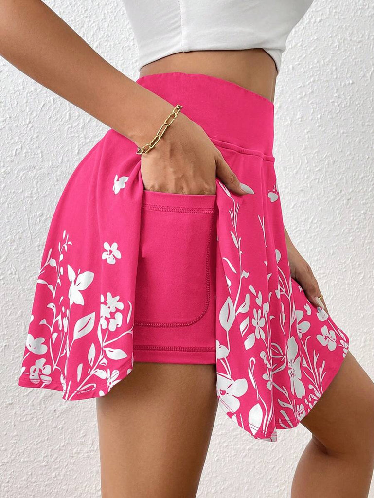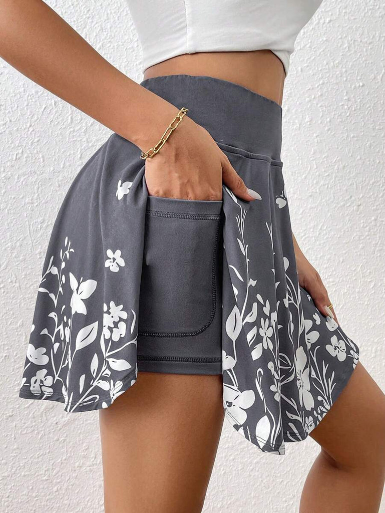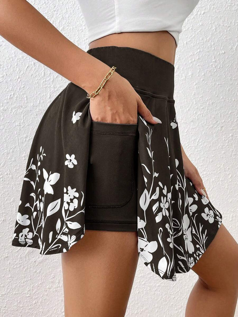 Essnce Women's Summer Summer Outfits Casual Solid High Waist Skort With Phone Pocket Minimalist Flower Printed Shorts With Pockets Shorts Inside Out Back To School Outfits