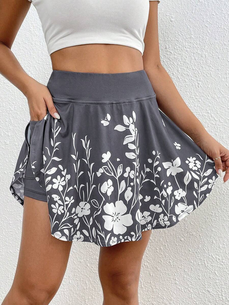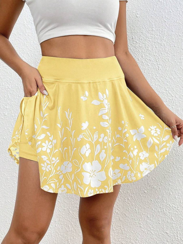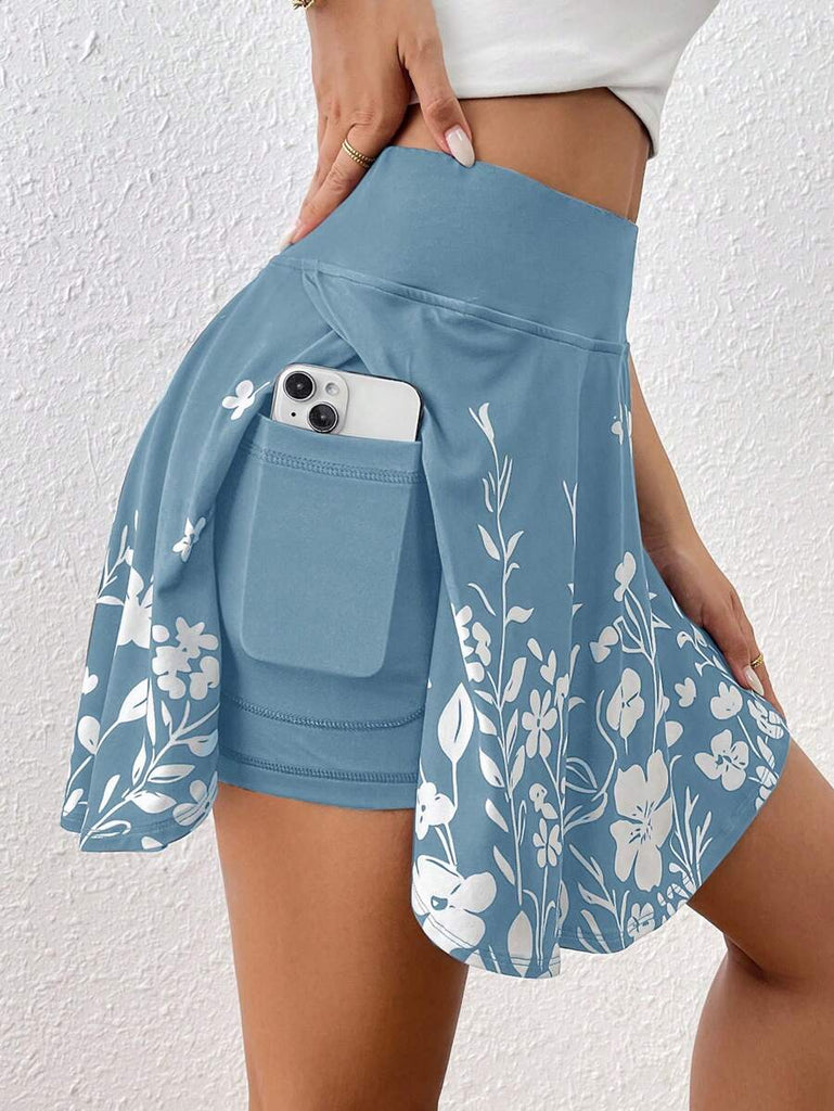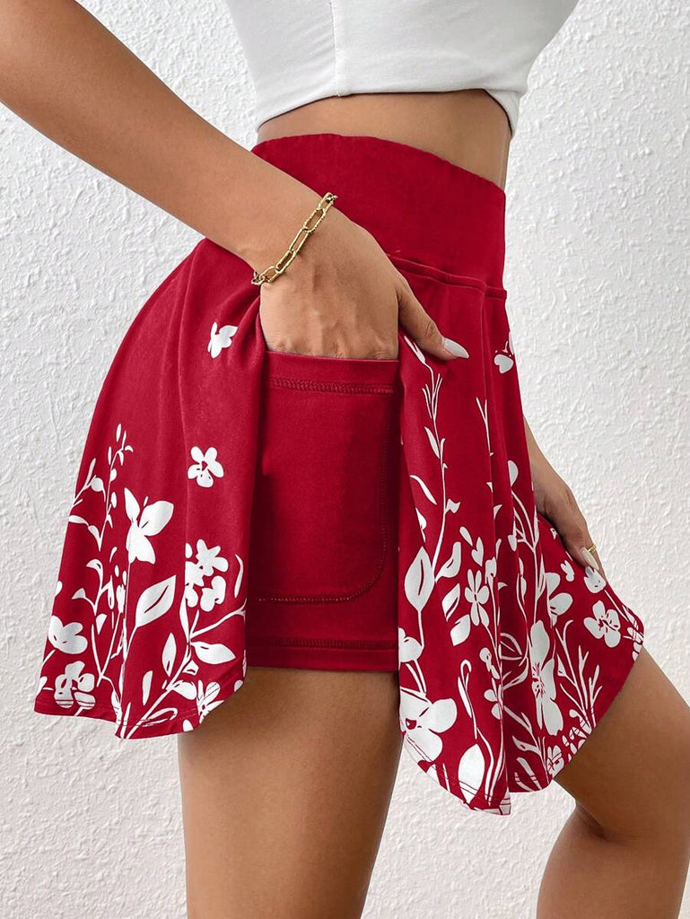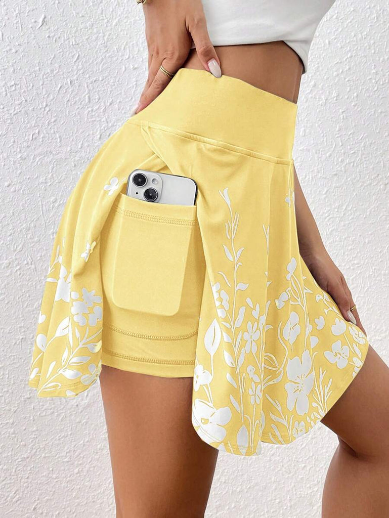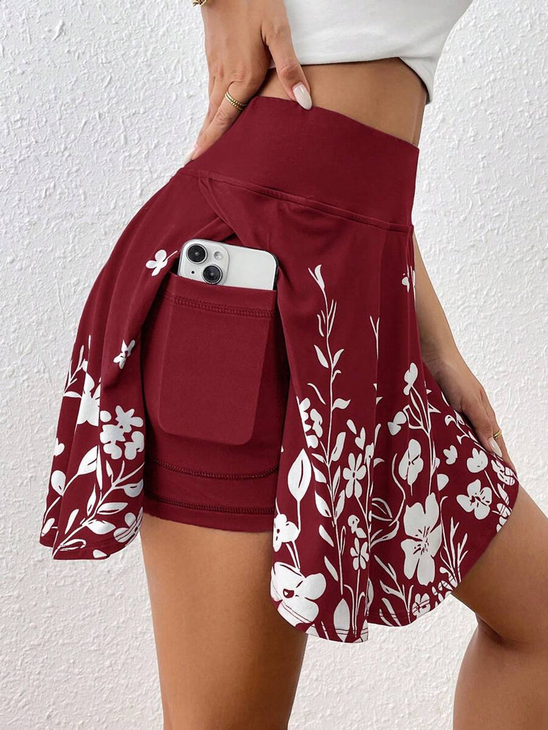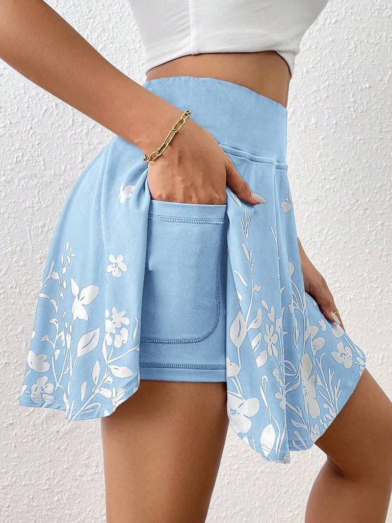 Essnce Women's Summer Summer Outfits Casual Solid High Waist Skort With Phone Pocket Minimalist Flower Printed Shorts With Pockets Shorts Inside Out Back To School Outfits