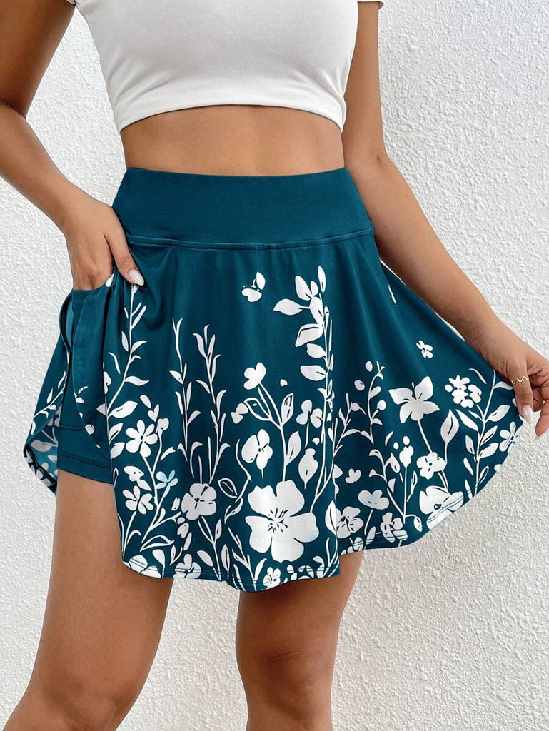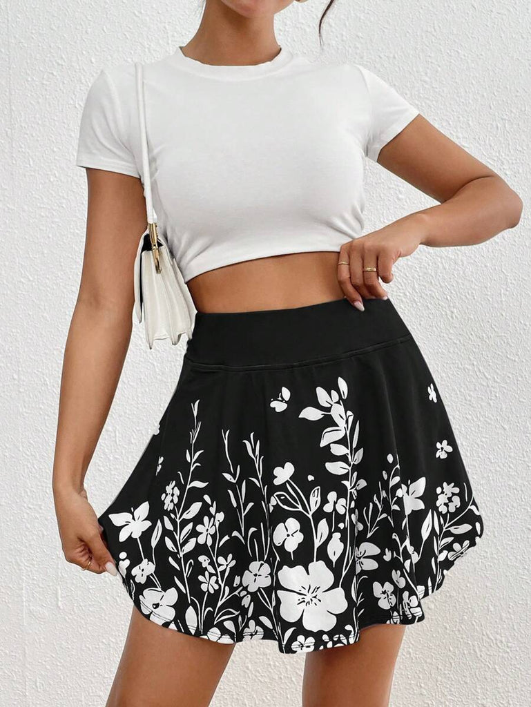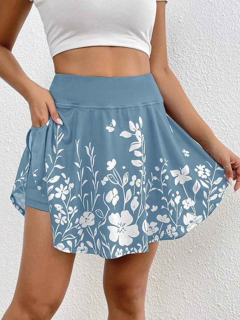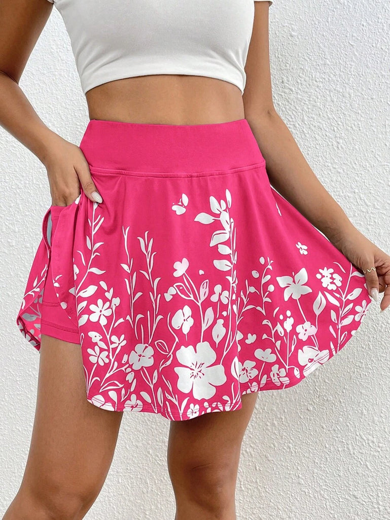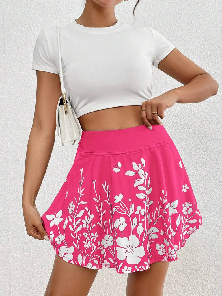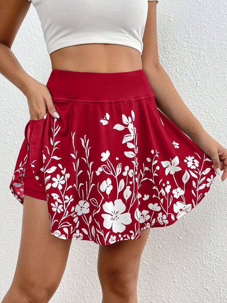 Essnce Women's Summer Summer Outfits Casual Solid High Waist Skort With Phone Pocket Minimalist Flower Printed Shorts With Pockets Shorts Inside Out Back To School Outfits