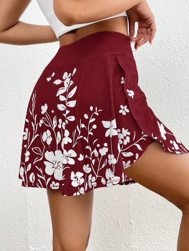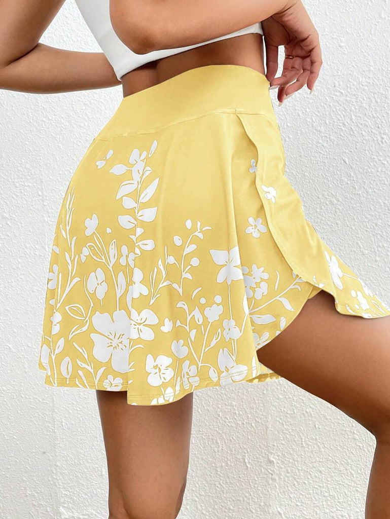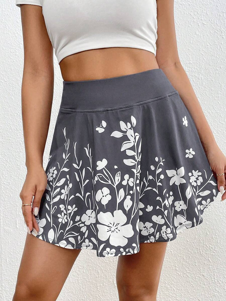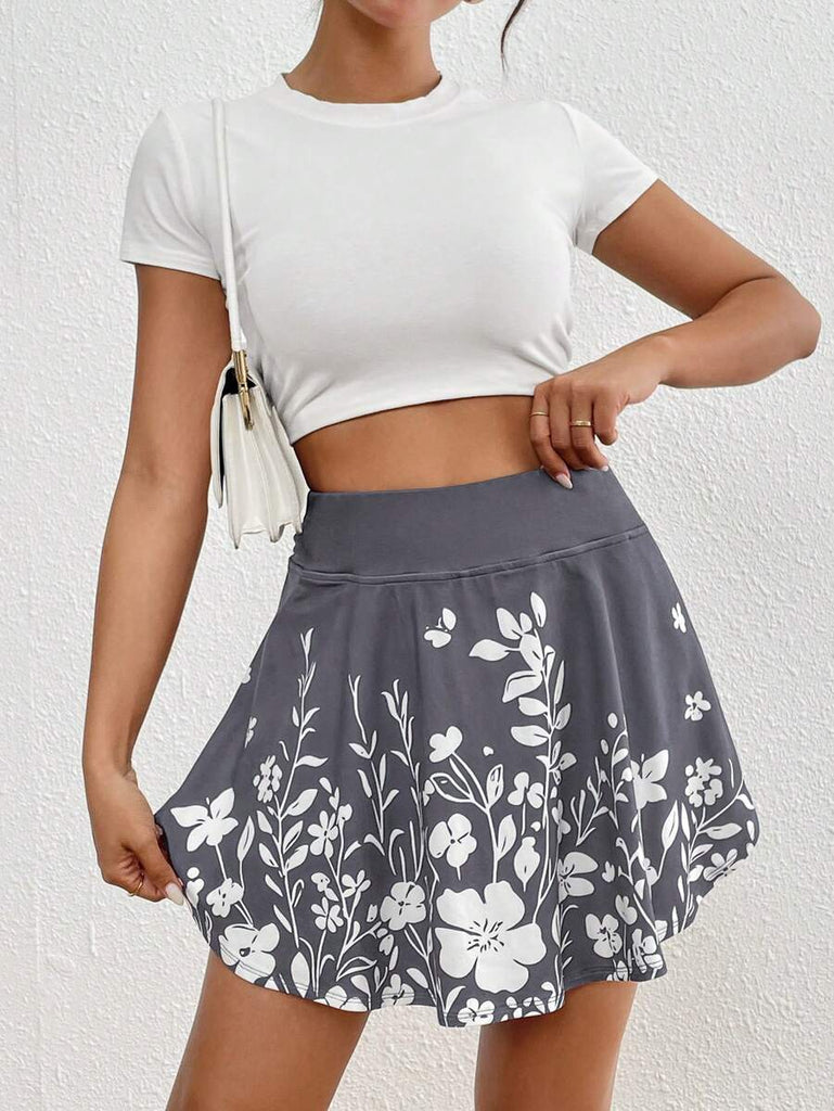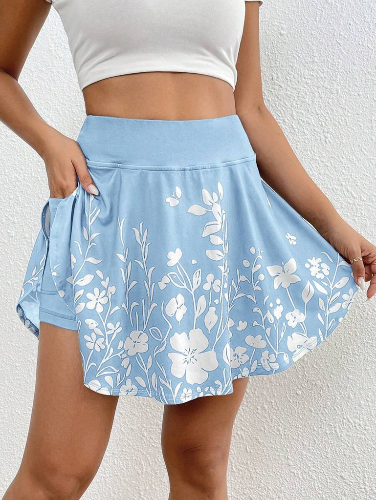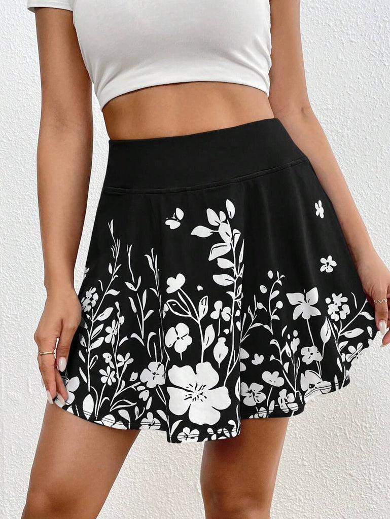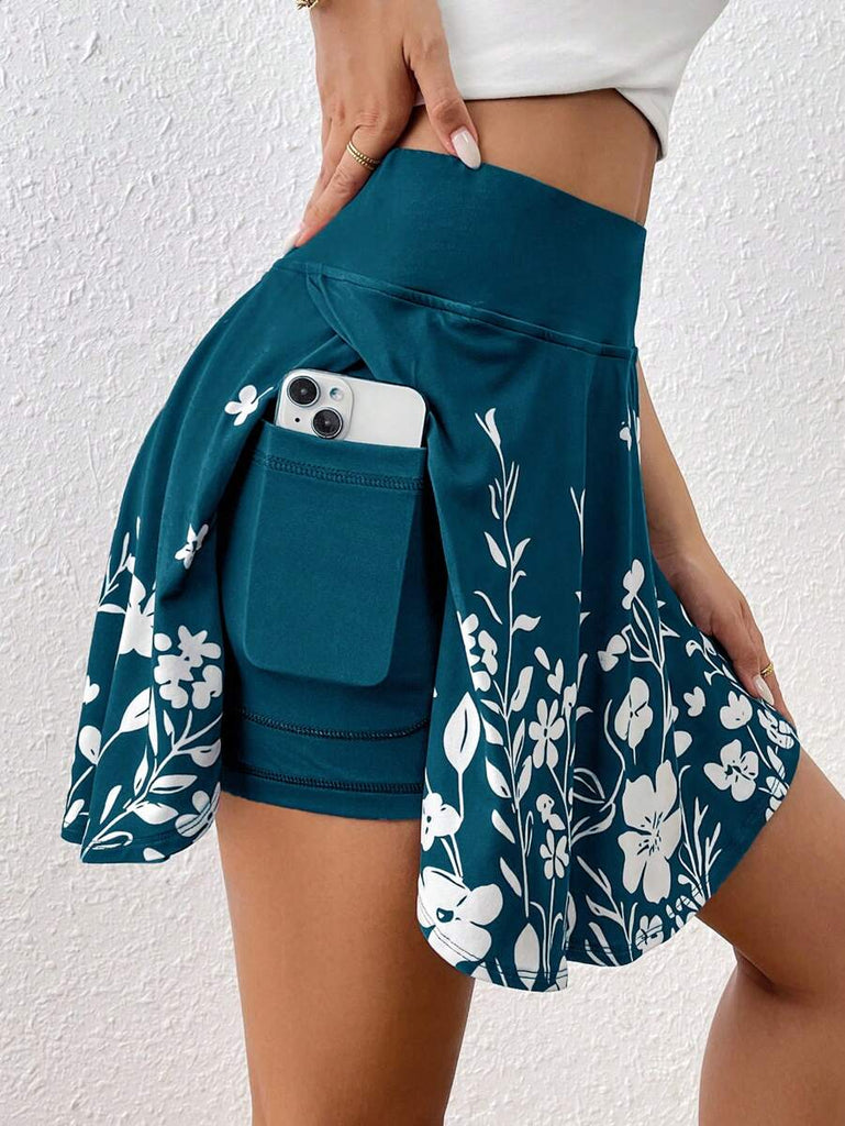 Essnce Women's Summer Summer Outfits Casual Solid High Waist Skort With Phone Pocket Minimalist Flower Printed Shorts With Pockets Shorts Inside Out Back To School Outfits