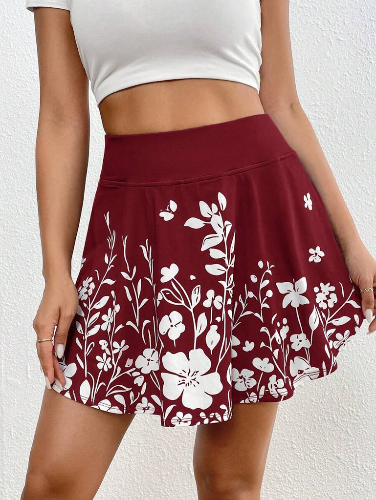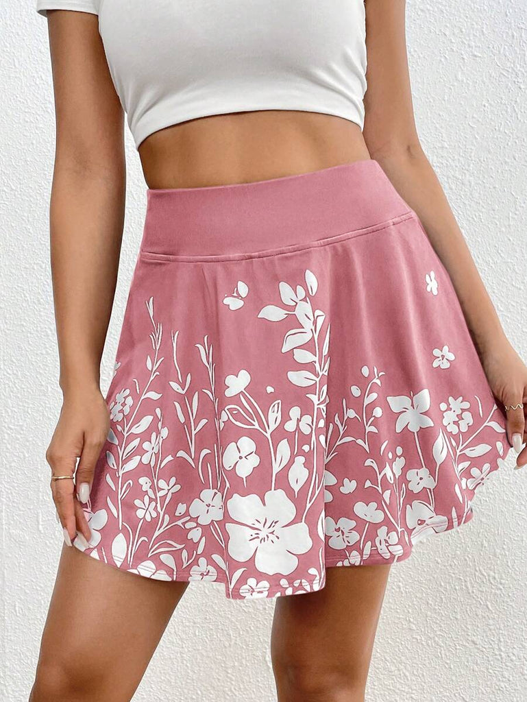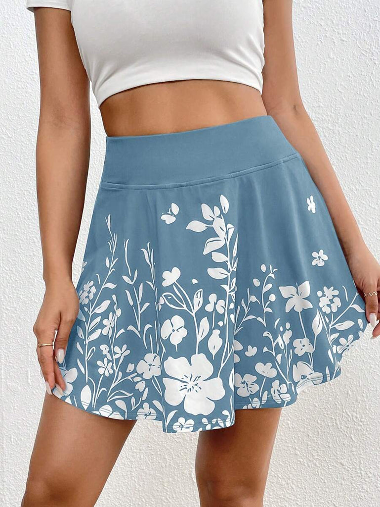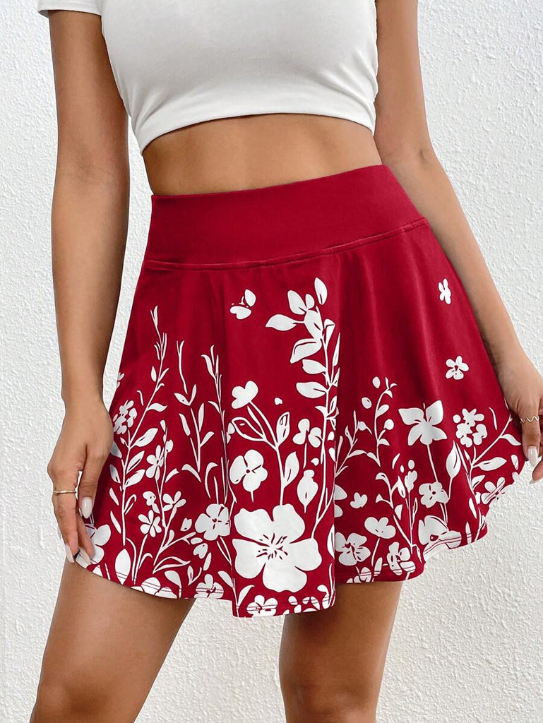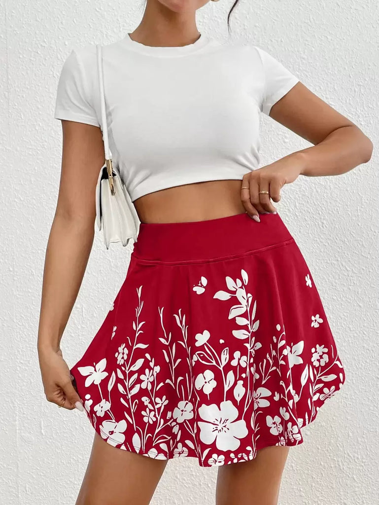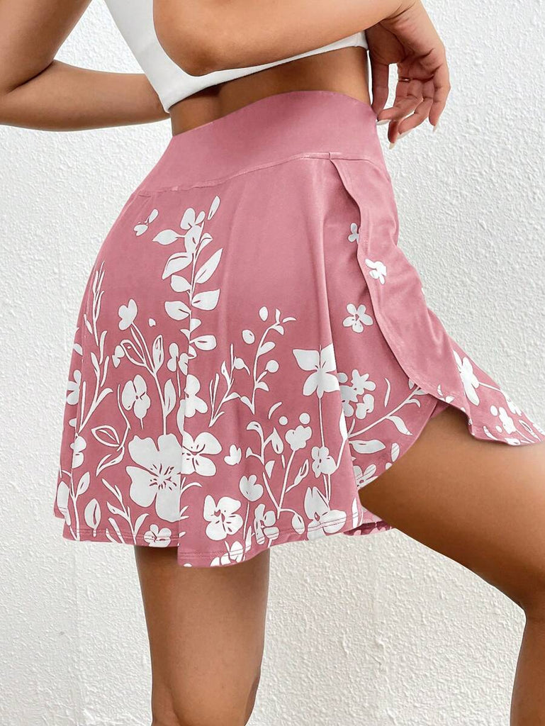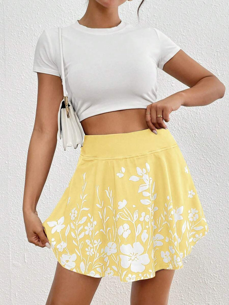 Essnce Women's Summer Summer Outfits Casual Solid High Waist Skort With Phone Pocket Minimalist Flower Printed Shorts With Pockets Shorts Inside Out Back To School Outfits
