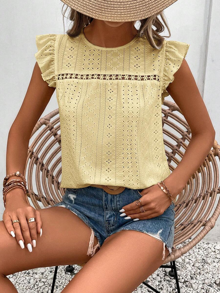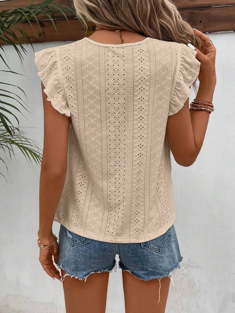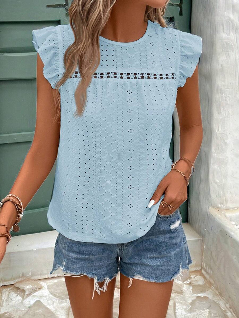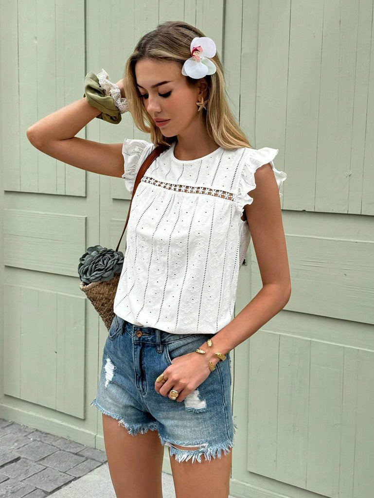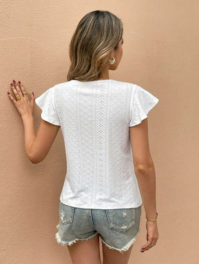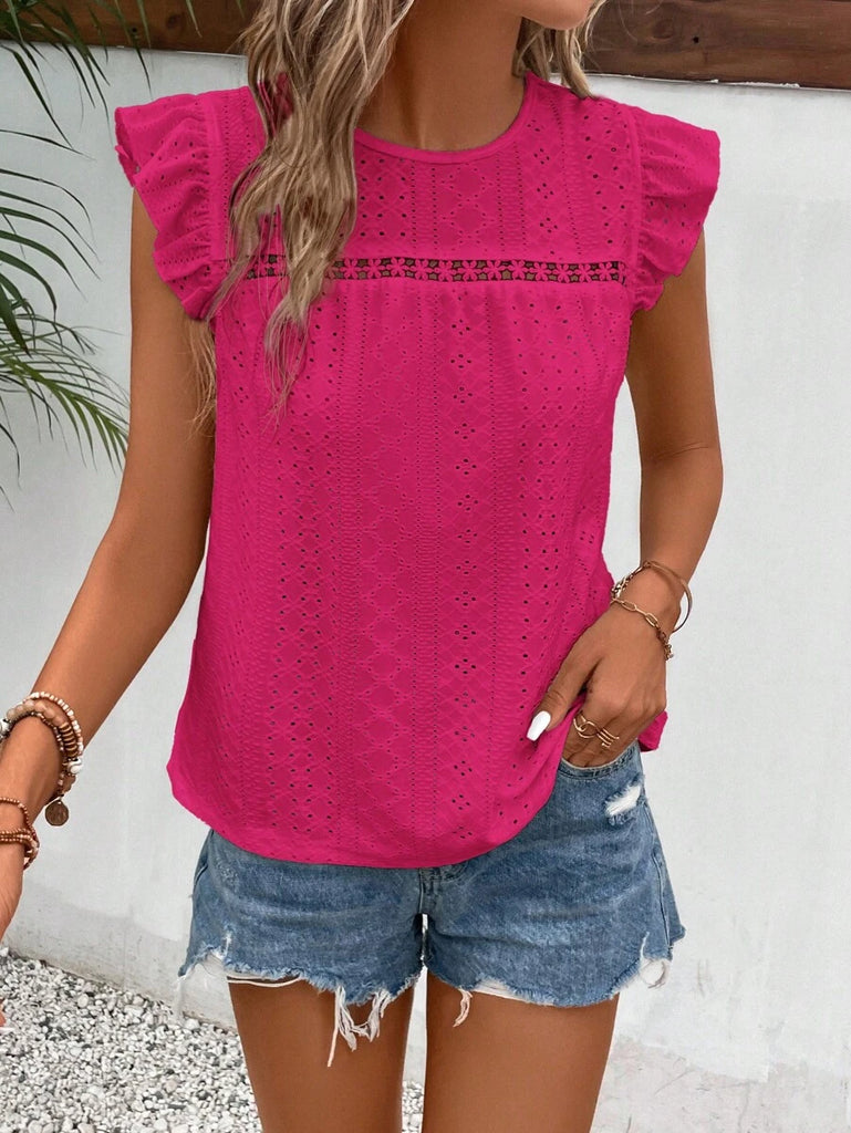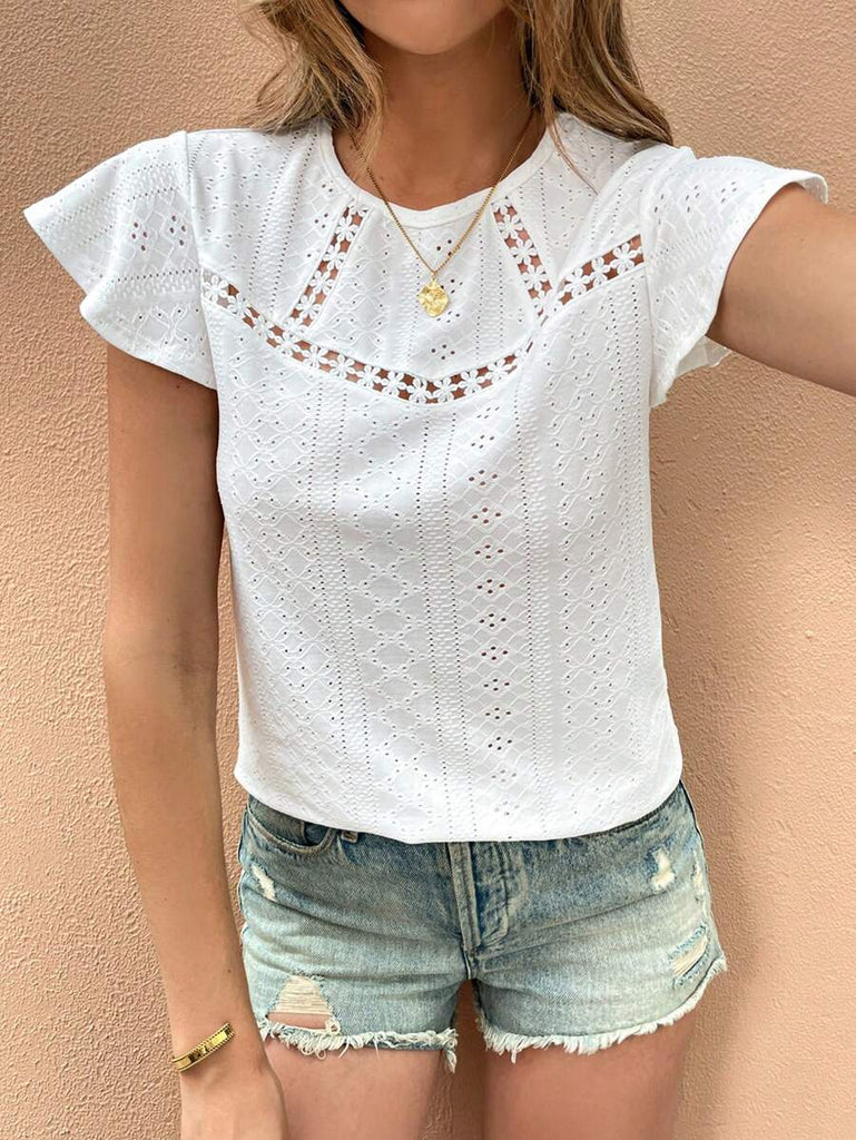 Frenchy Women's Solid Color Round Neck Cap Sleeve Casual T-Shirt For Vacation Old Money Style