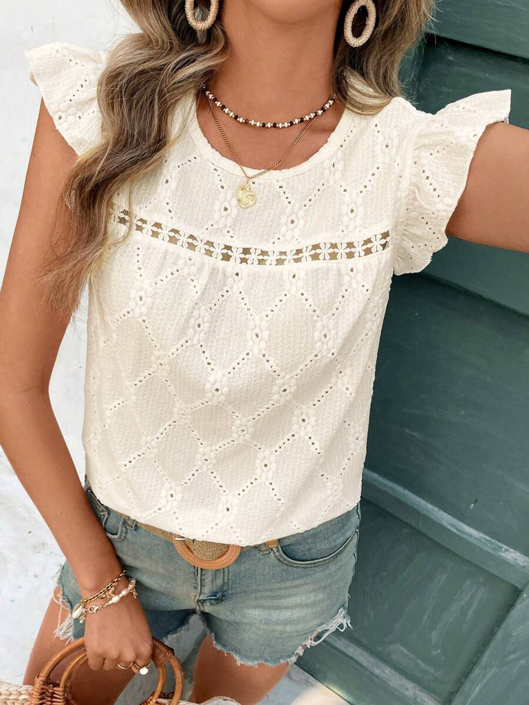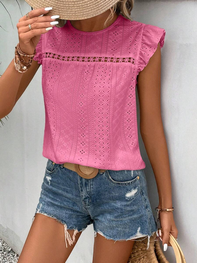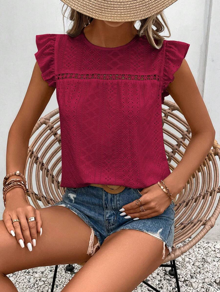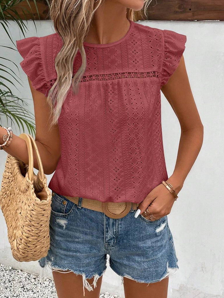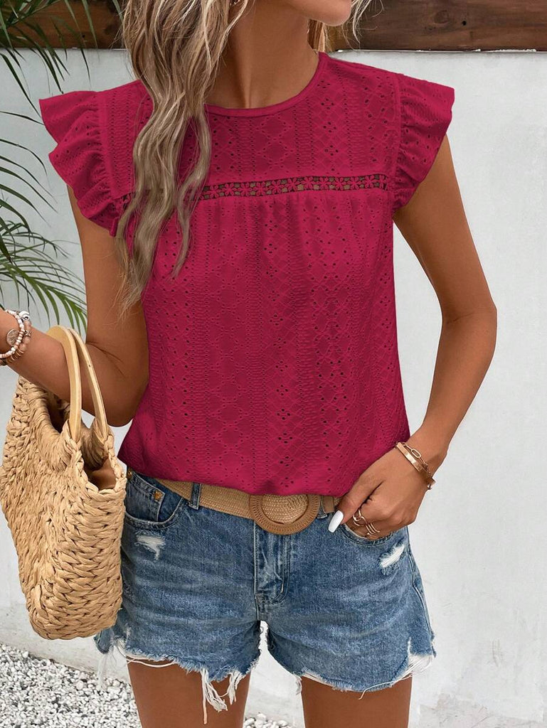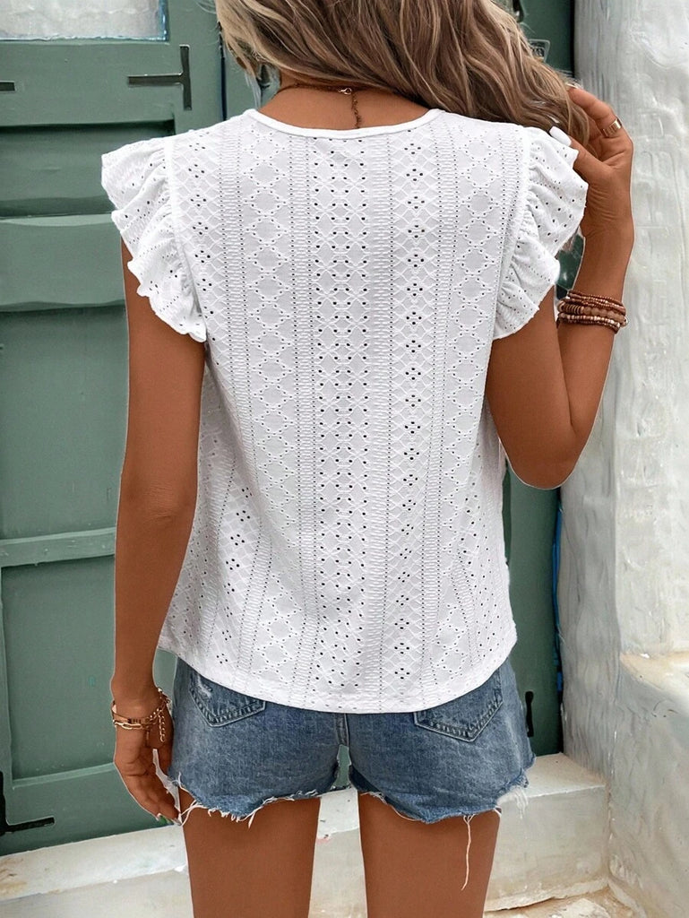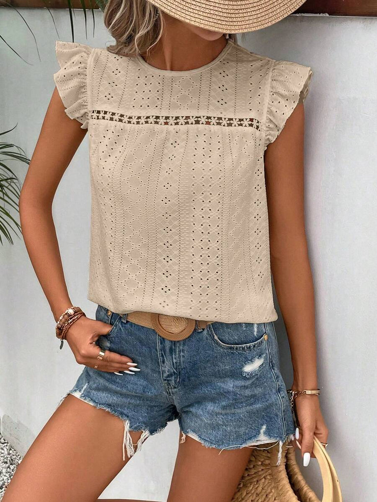 Frenchy Women's Solid Color Round Neck Cap Sleeve Casual T-Shirt For Vacation Old Money Style