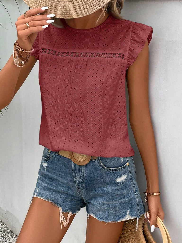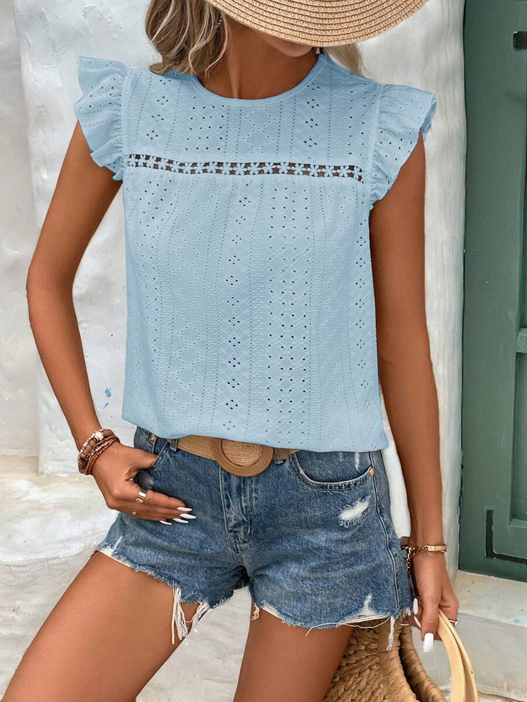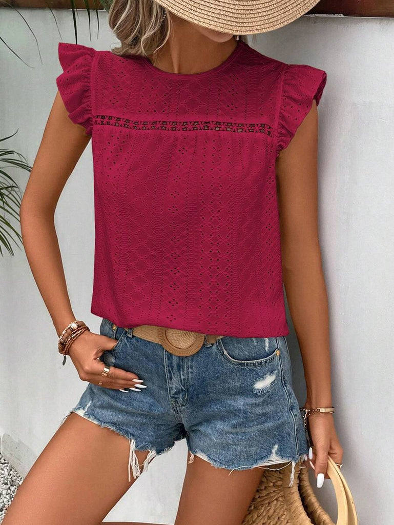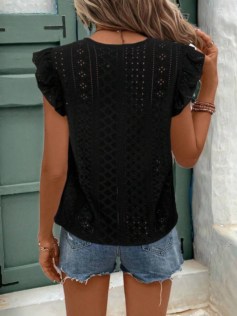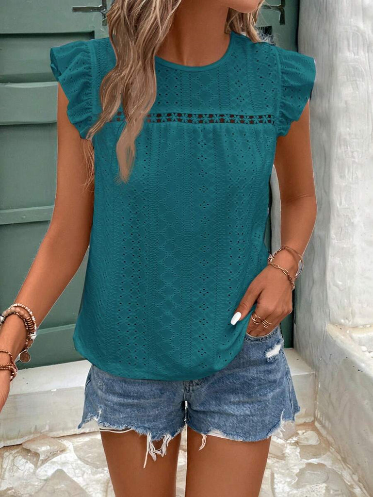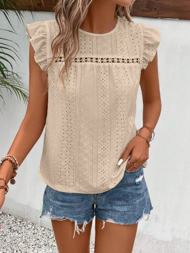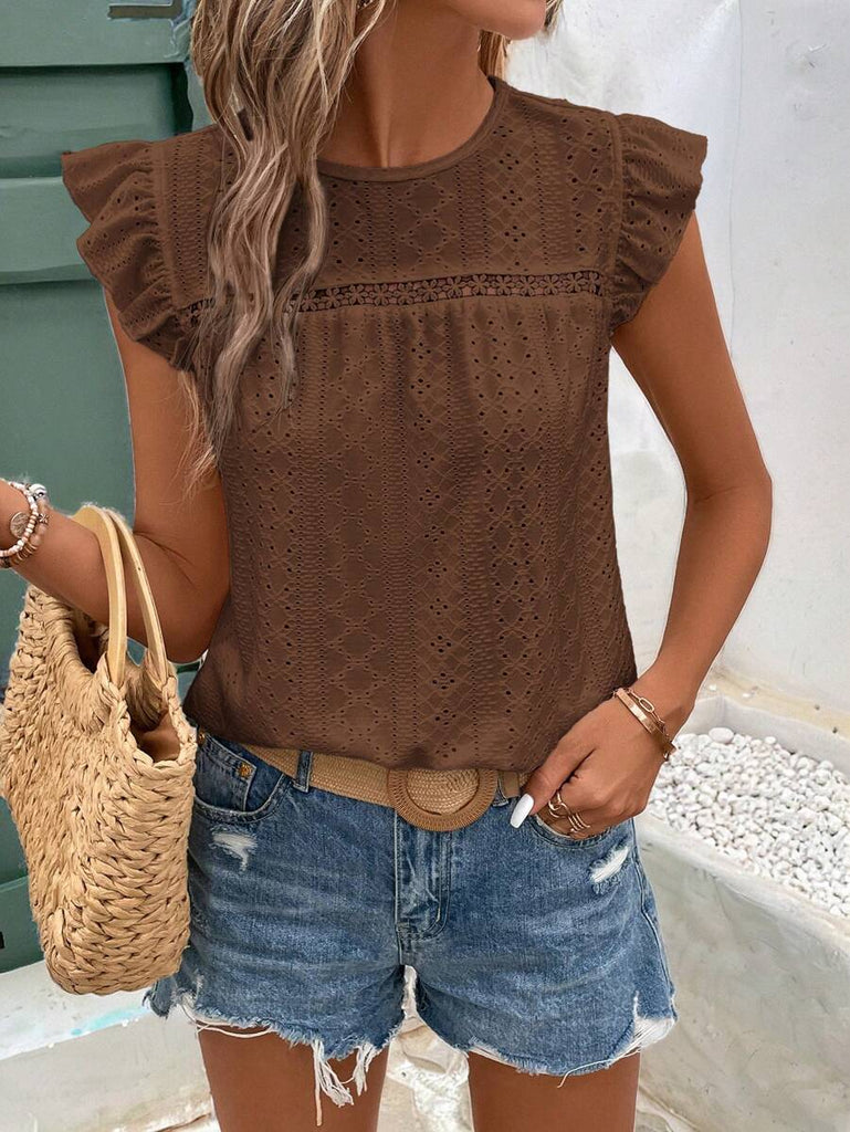 Frenchy Women's Solid Color Round Neck Cap Sleeve Casual T-Shirt For Vacation Old Money Style