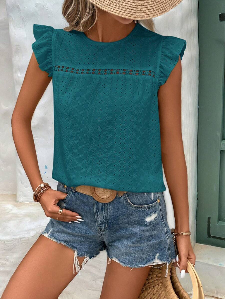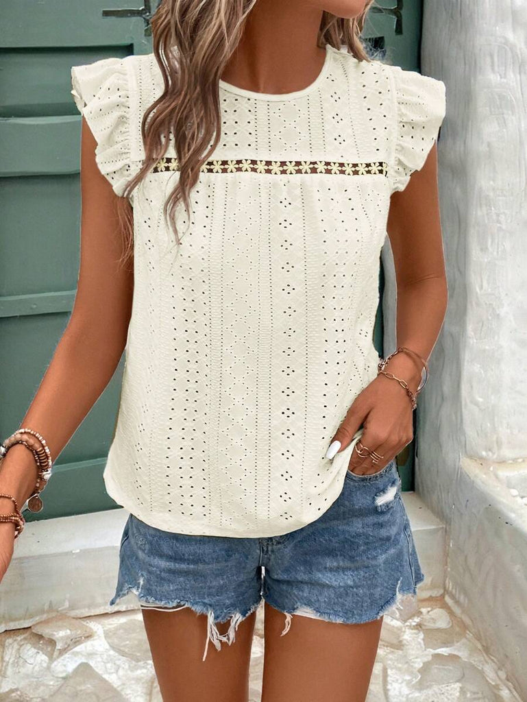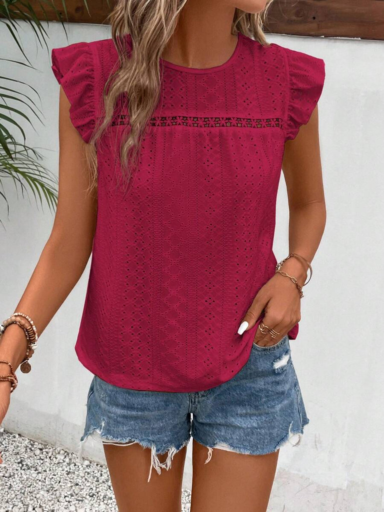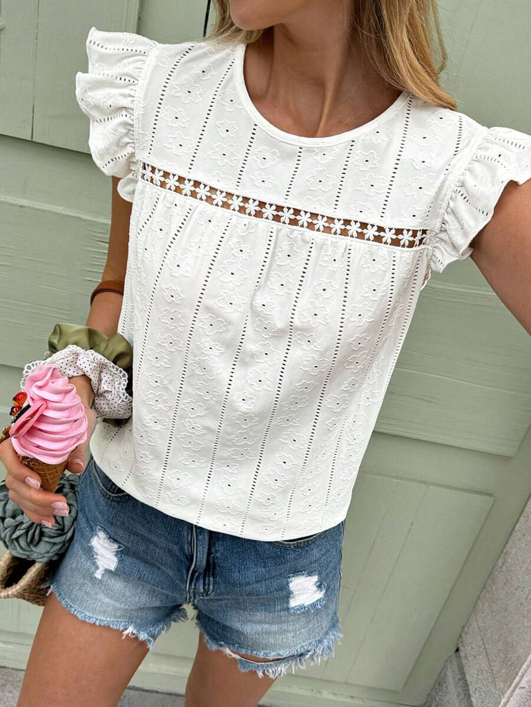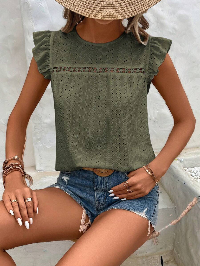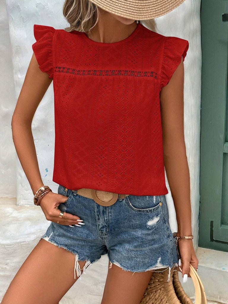 Frenchy Women's Solid Color Round Neck Cap Sleeve Casual T-Shirt For Vacation Old Money Style