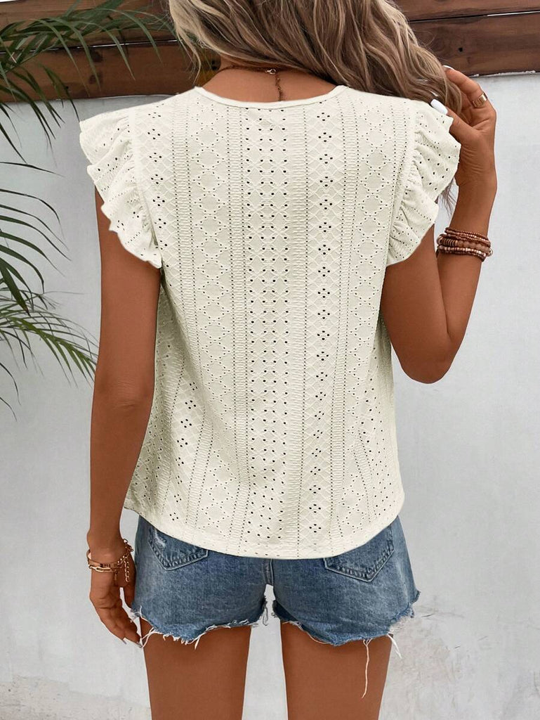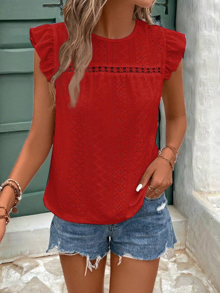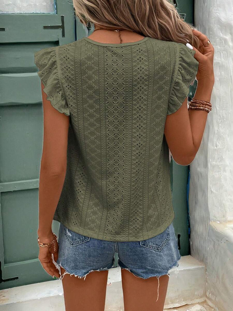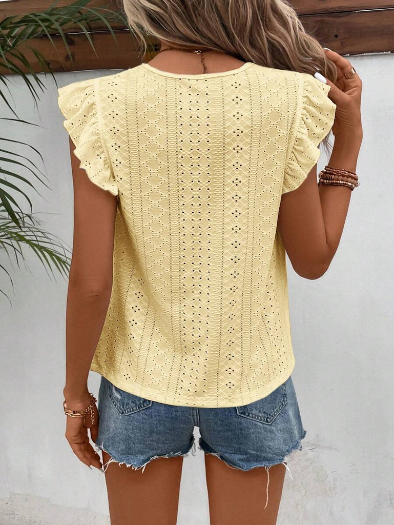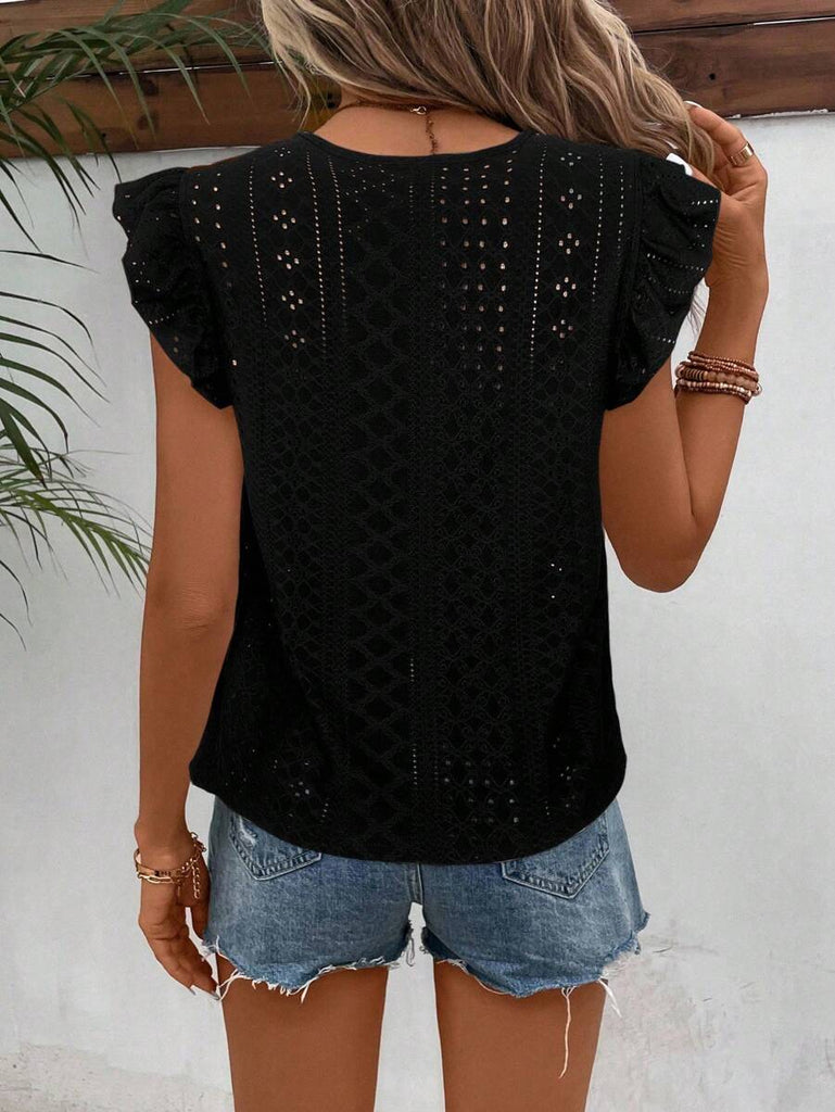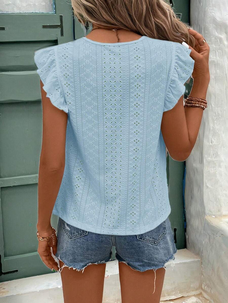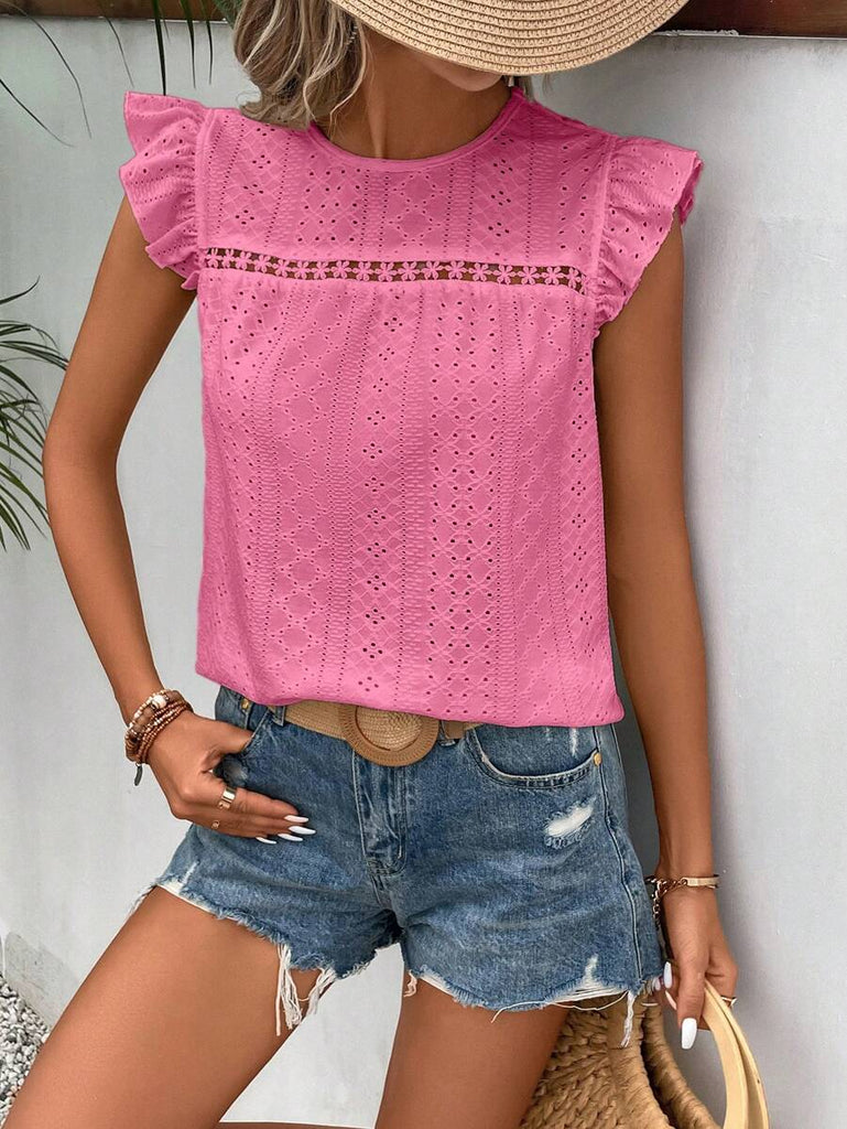Frenchy Women's Solid Color Round Neck Cap Sleeve Casual T-Shirt For Vacation Old Money Style