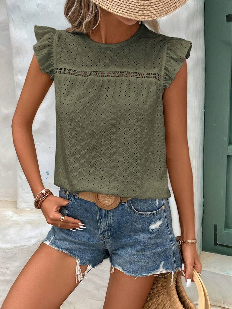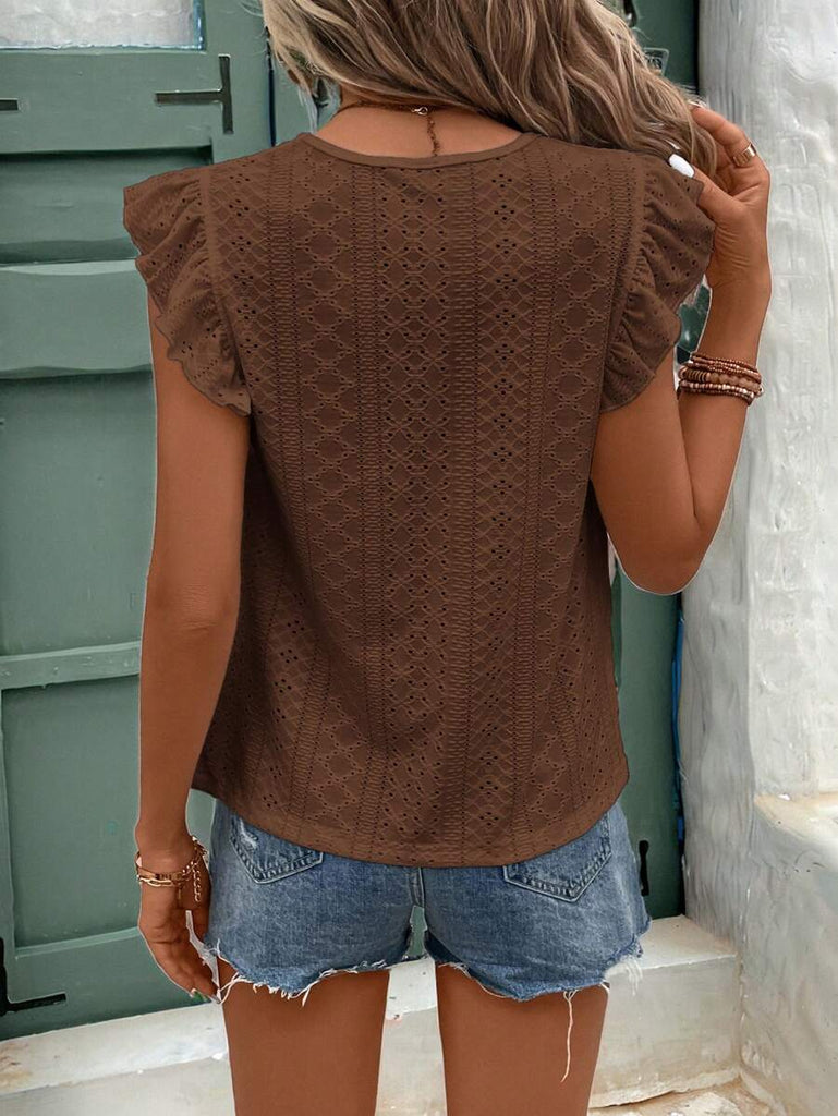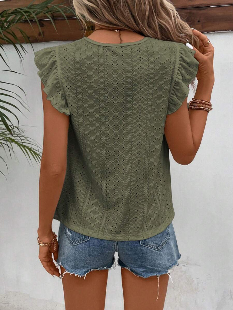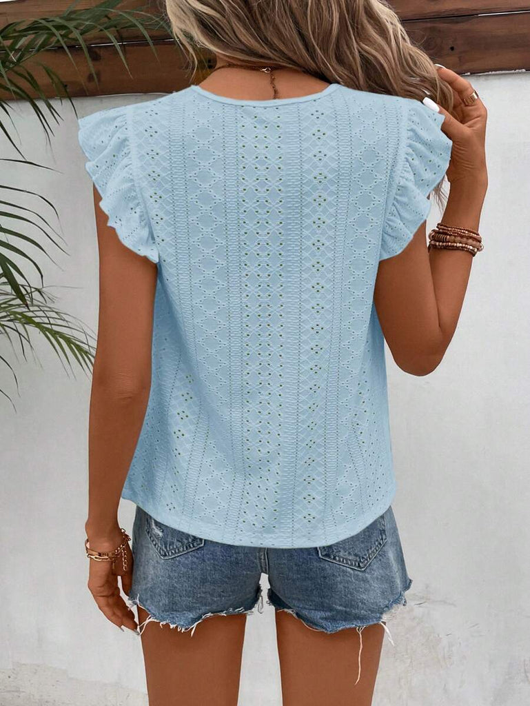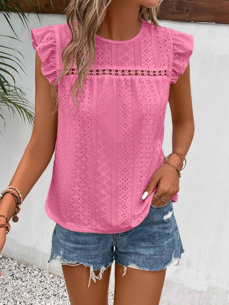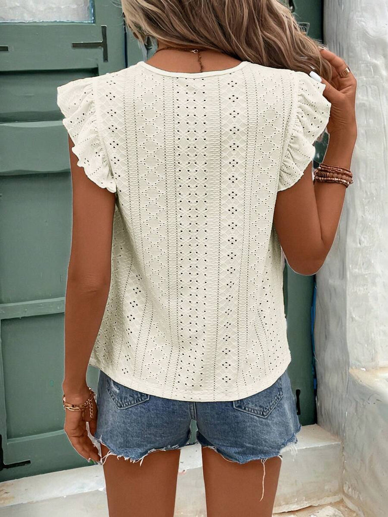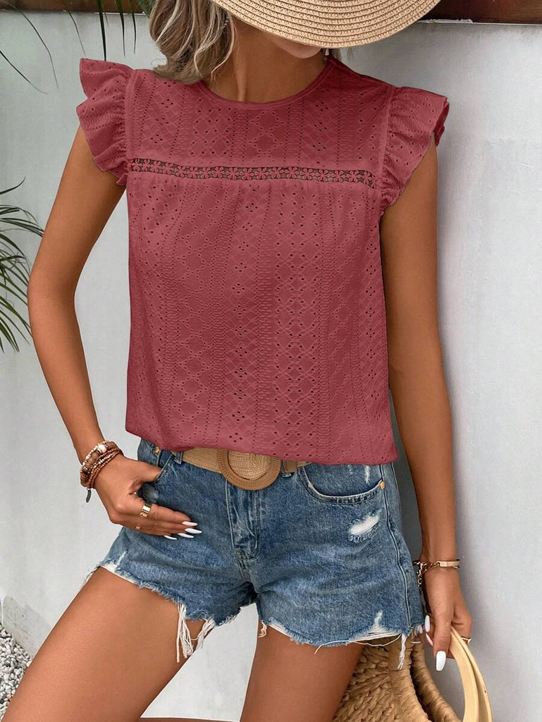 Frenchy Women's Solid Color Round Neck Cap Sleeve Casual T-Shirt For Vacation Old Money Style