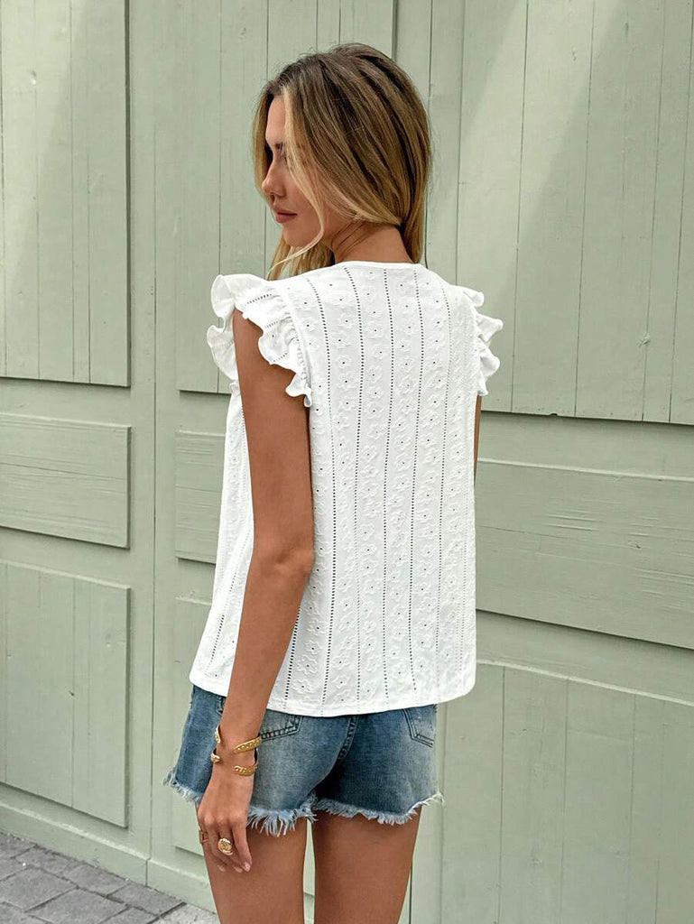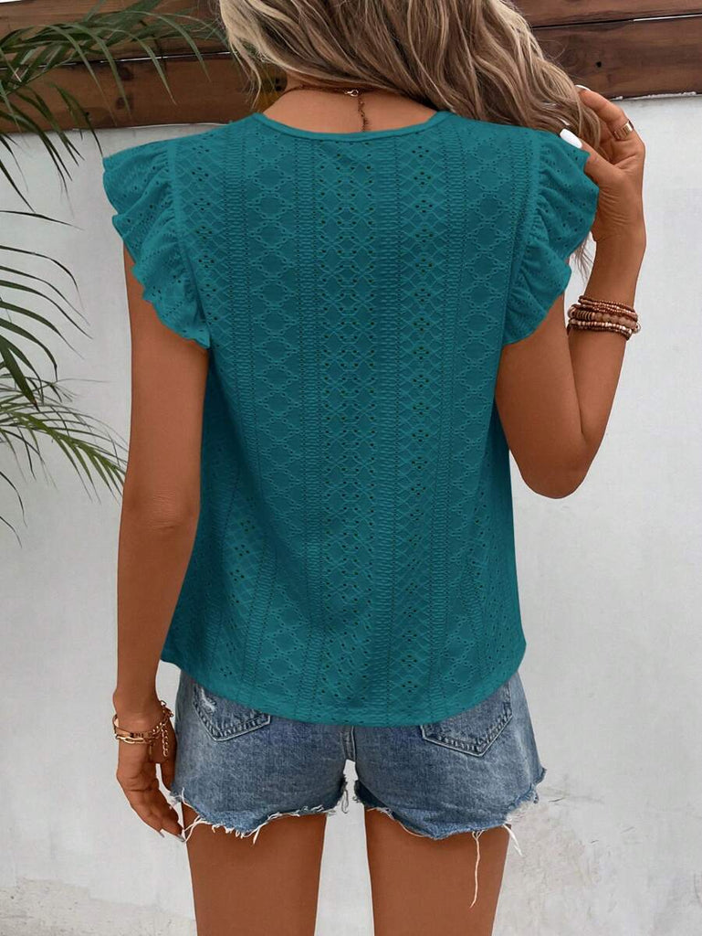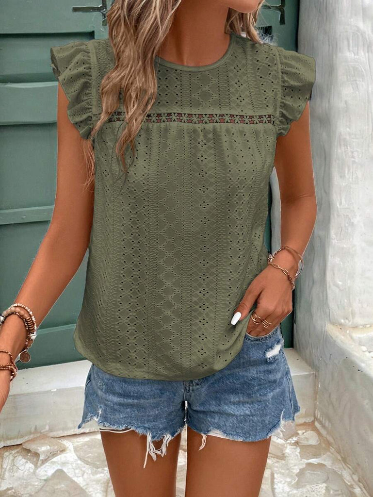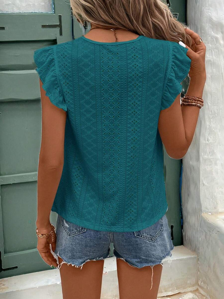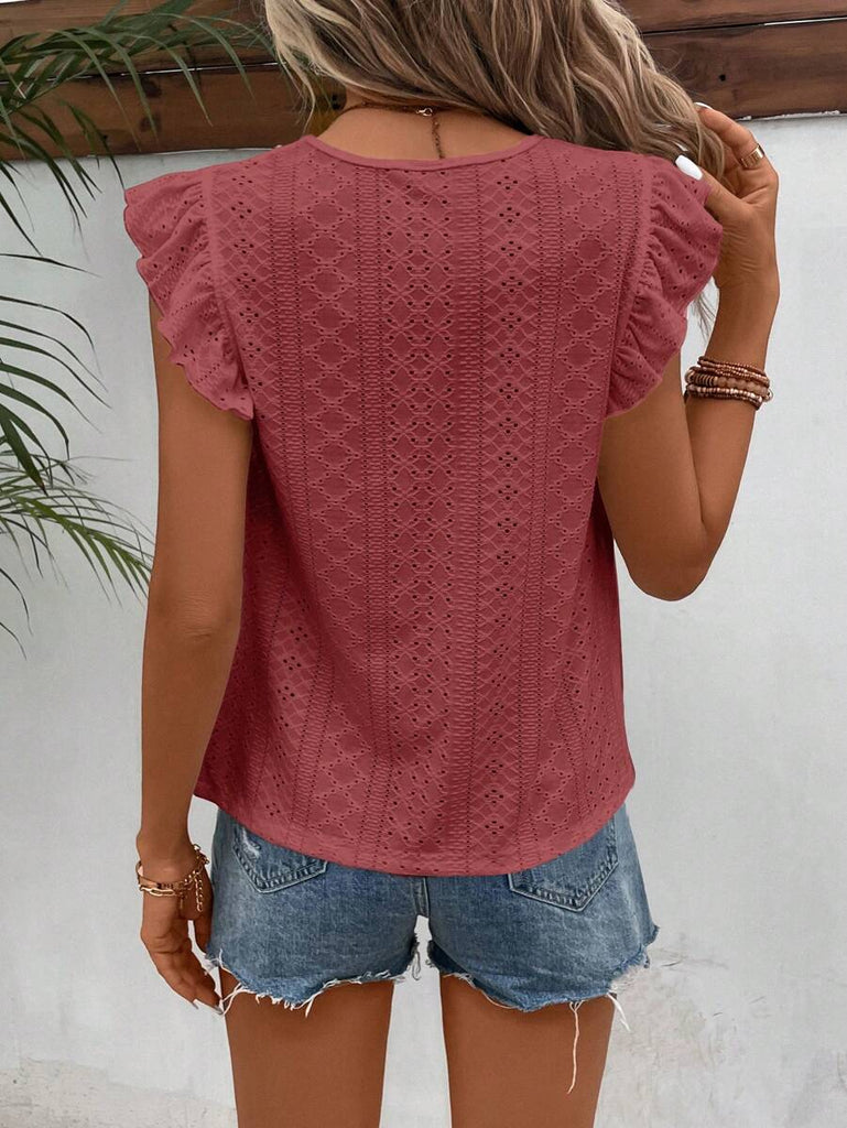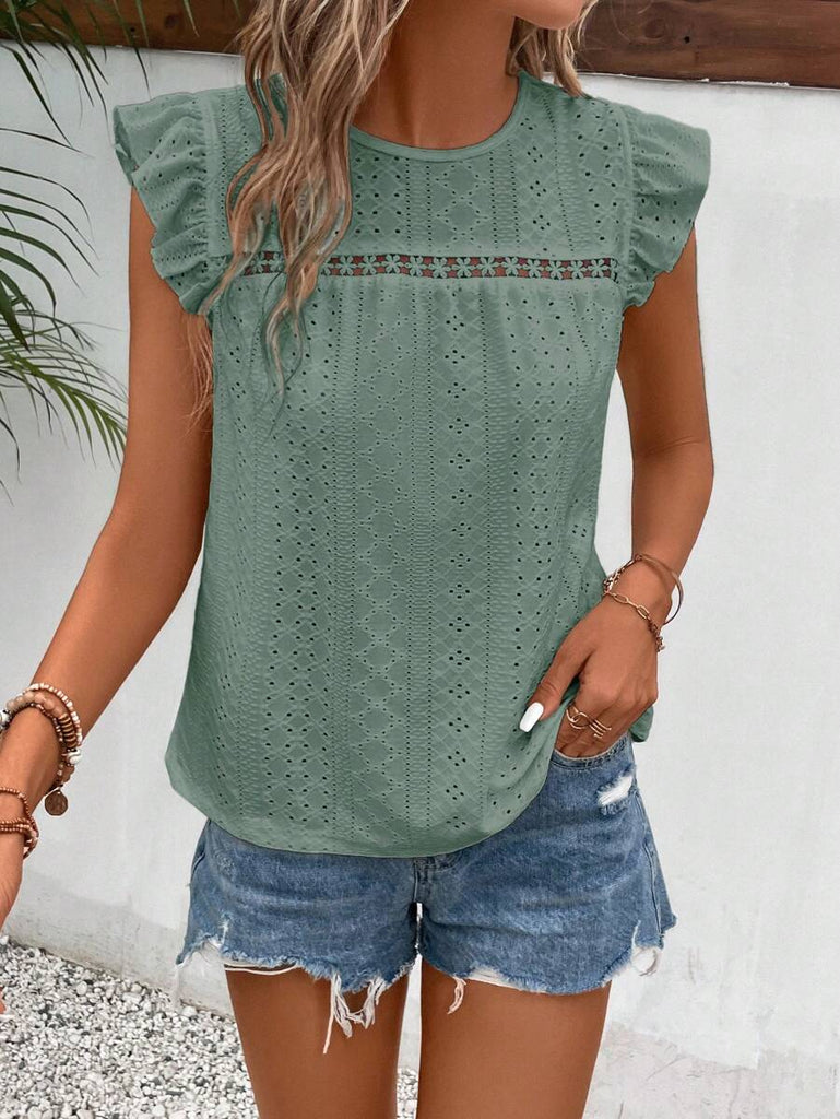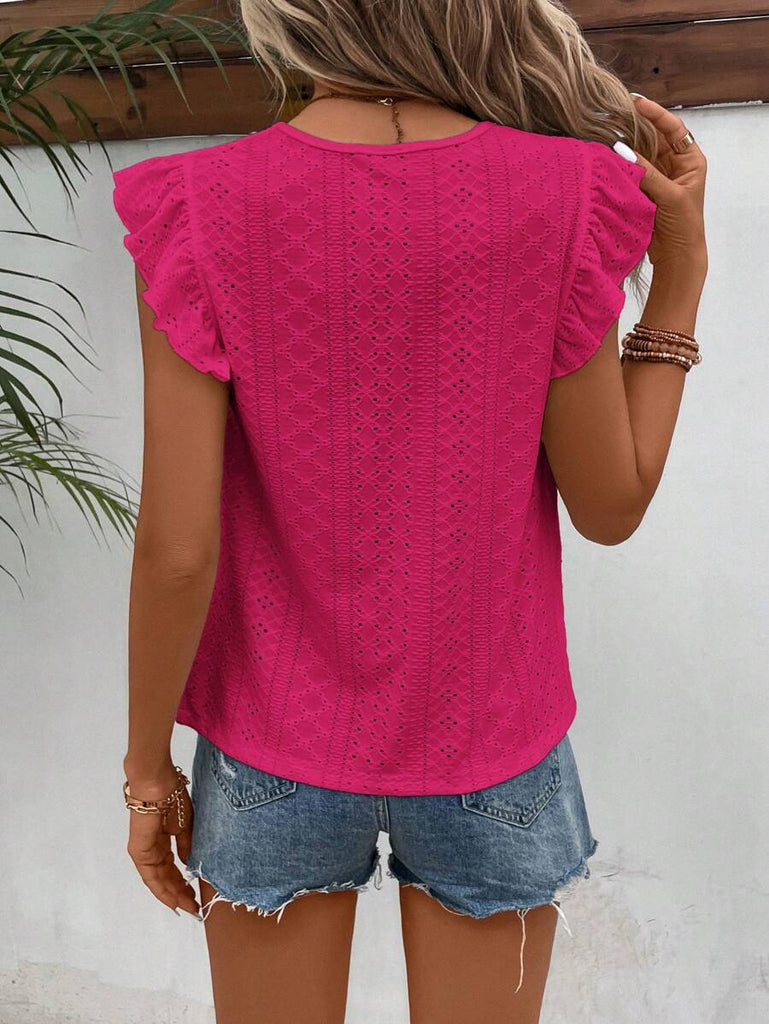 Frenchy Women's Solid Color Round Neck Cap Sleeve Casual T-Shirt For Vacation Old Money Style