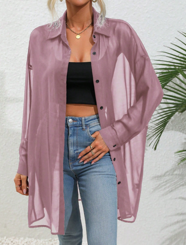 LUNE Women's Solid Color Drop Shoulder Long Sleeve Single Breasted Casual Shirt Fall Cloth For Women