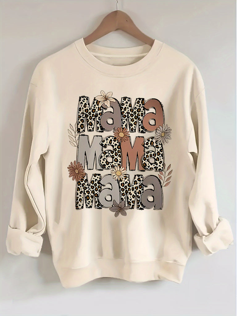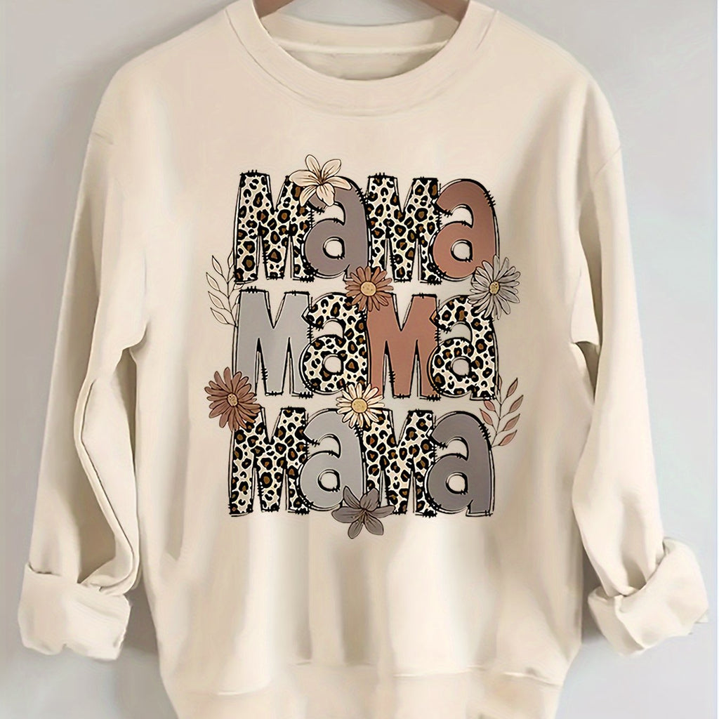 MAMA Print Pullover Sweatshirt, Casual Long Sleeve Crew Neck Sweatshirt For Fall & Winter, Women's Clothing