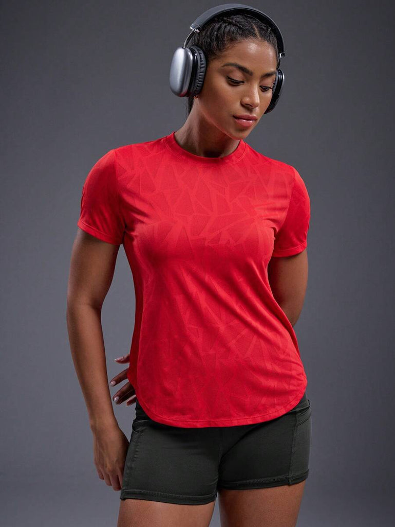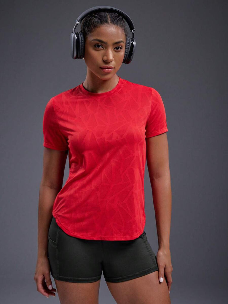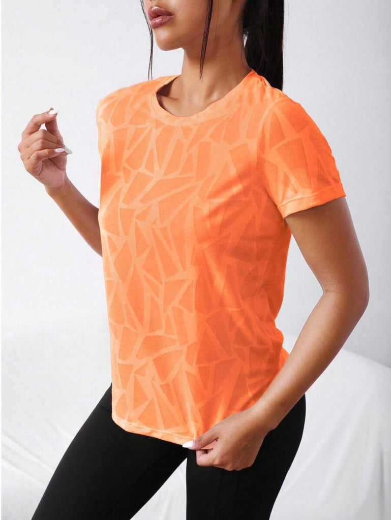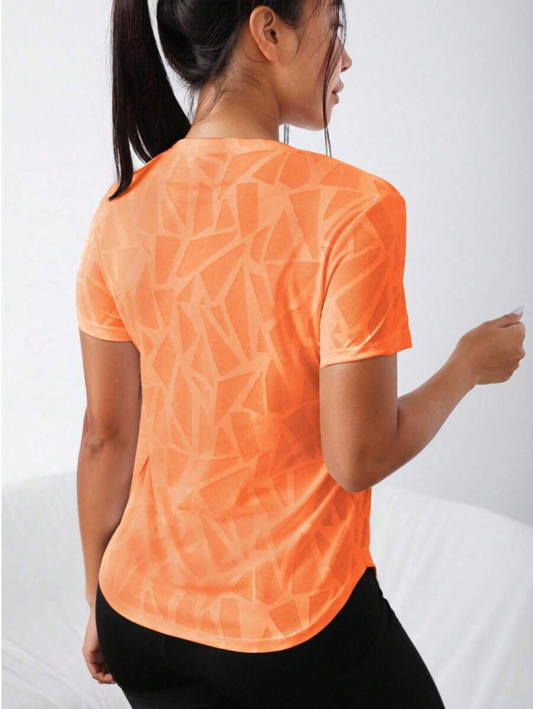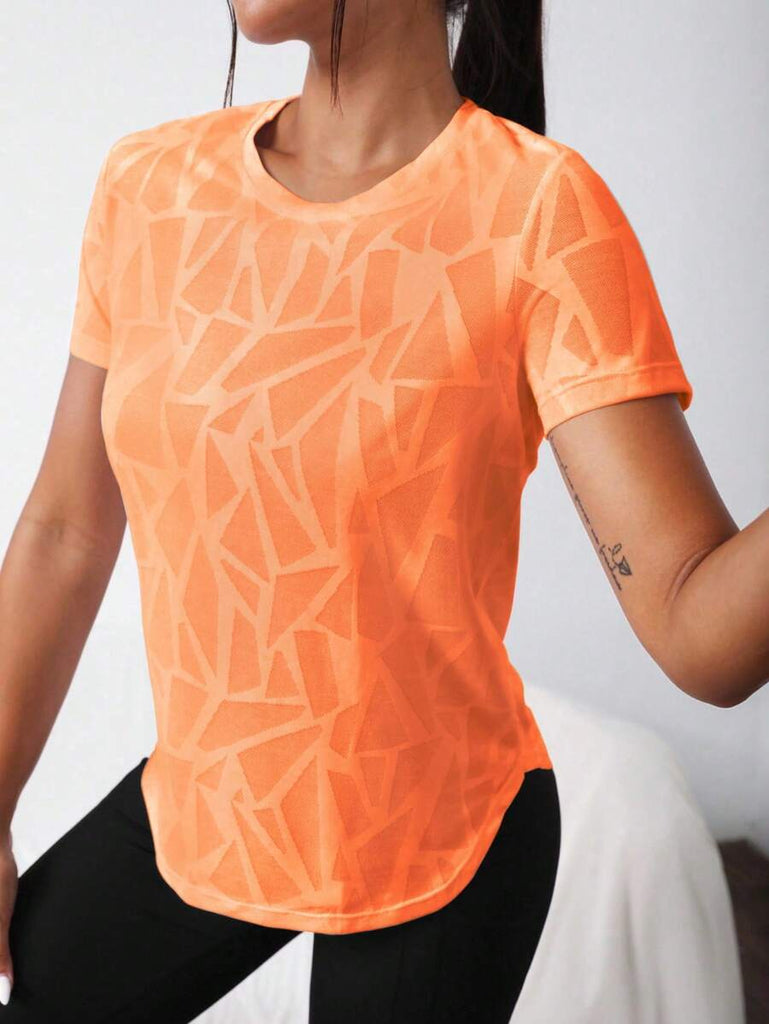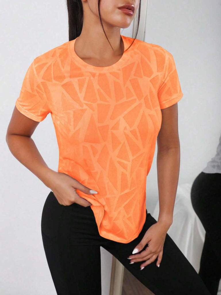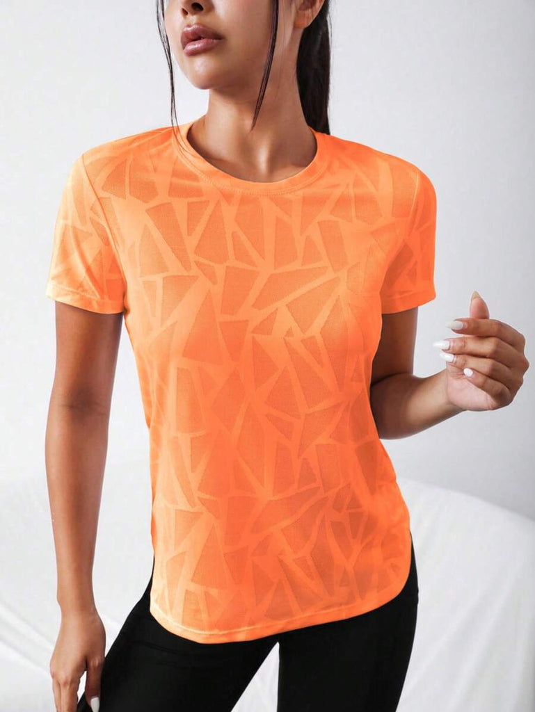 Studio Sport Women's Orange Mesh Round Neck Short Sleeve Activewear T-Shirt Gym Shirts