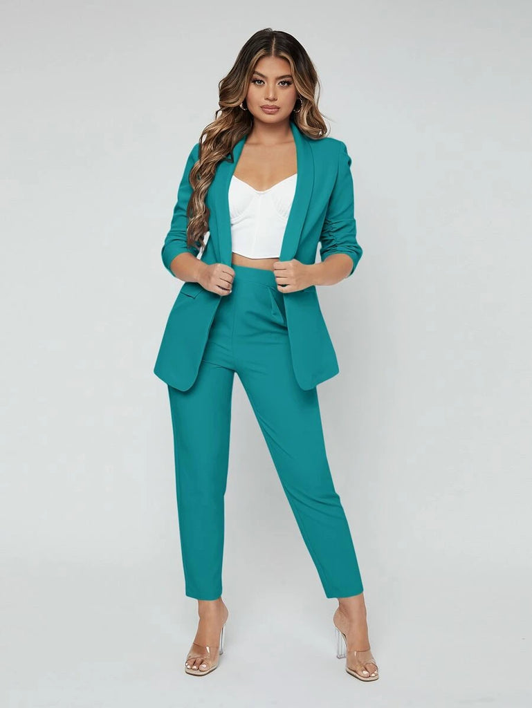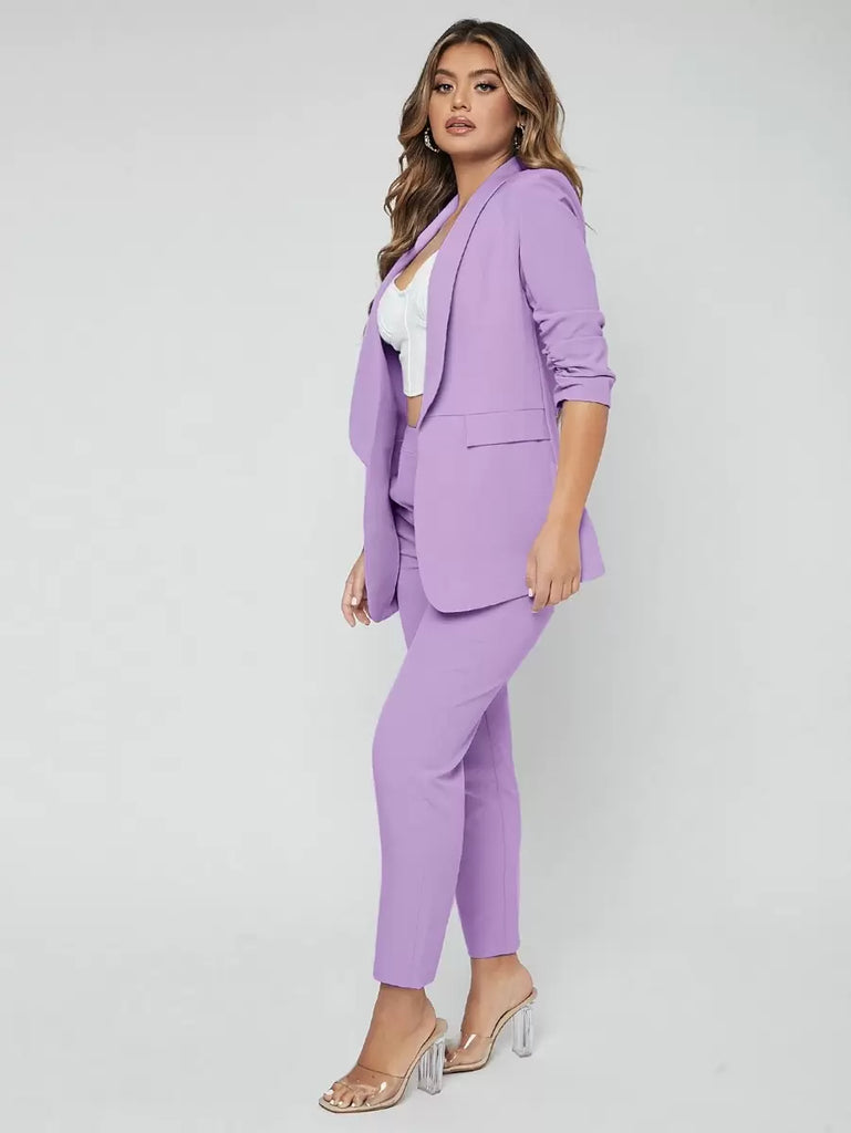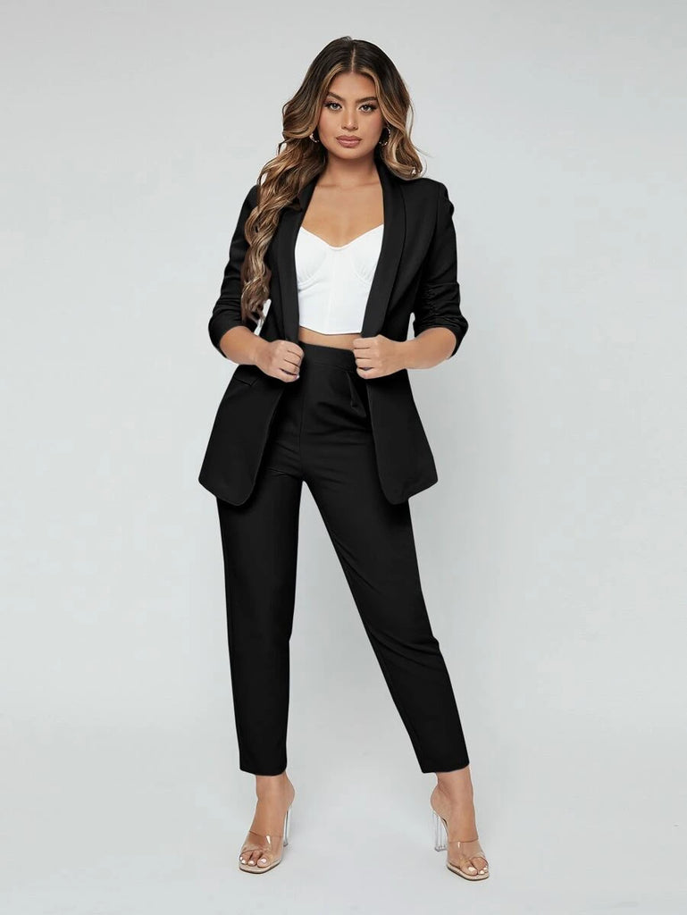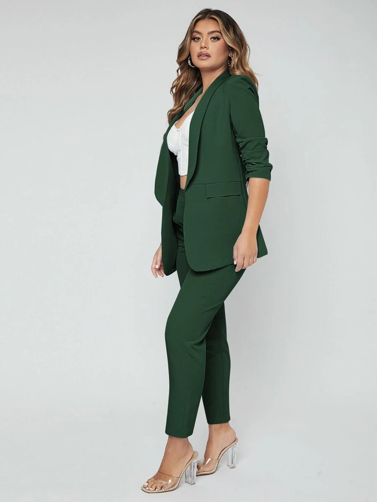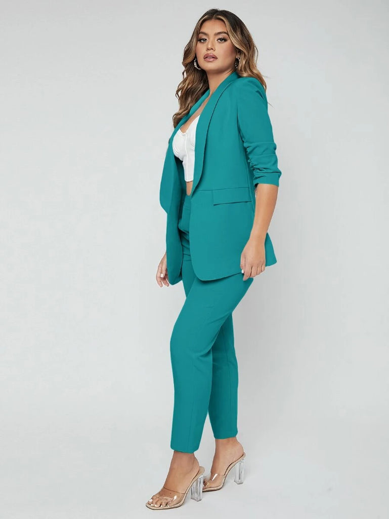 SXY Shawl Neck Open Front Blazer & Pants Suit