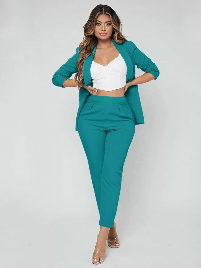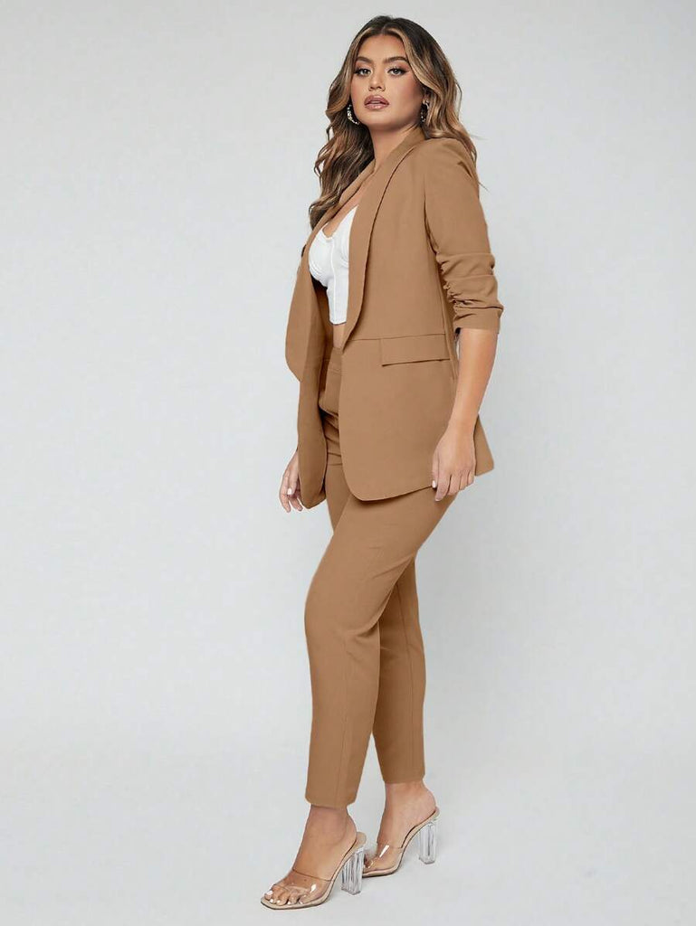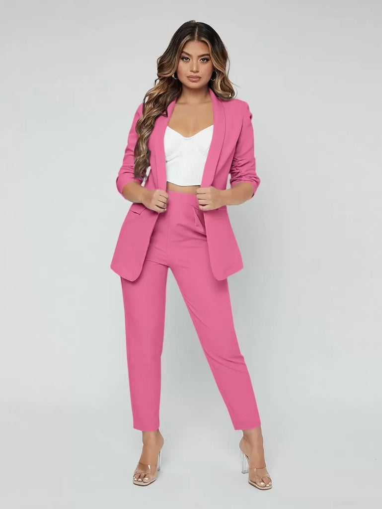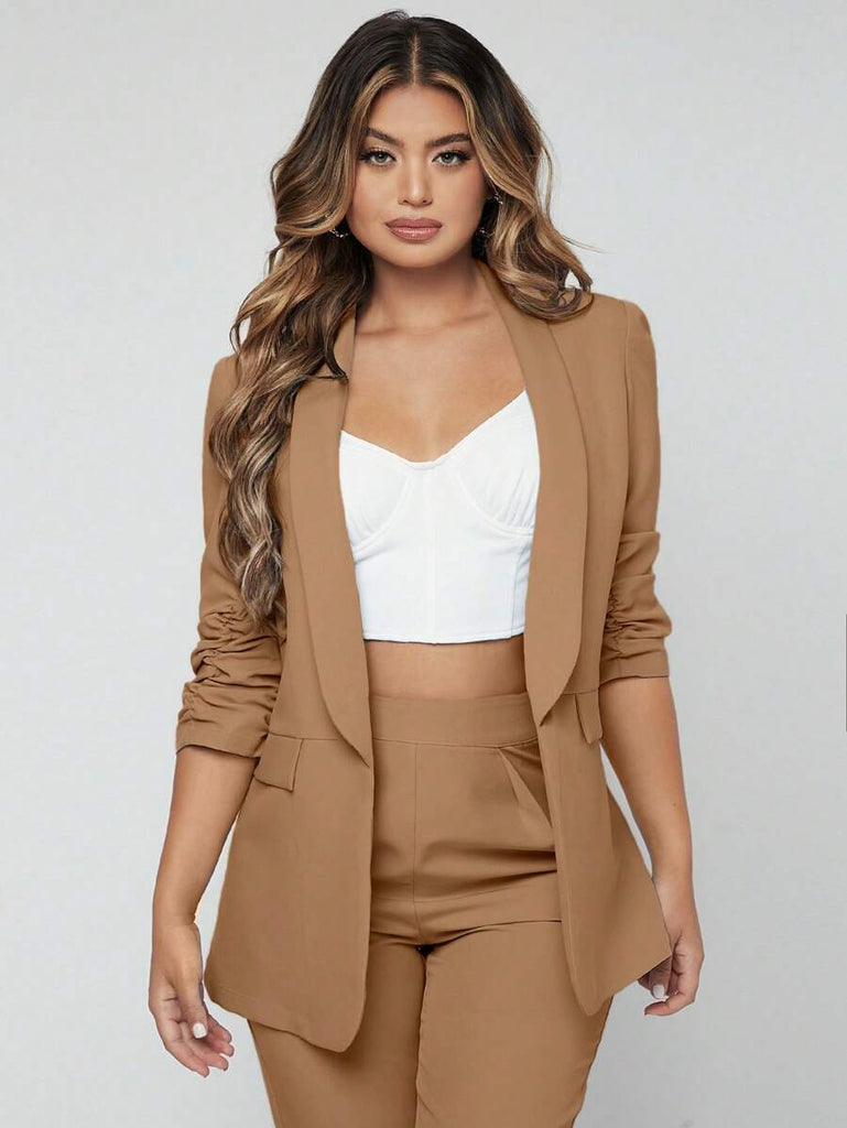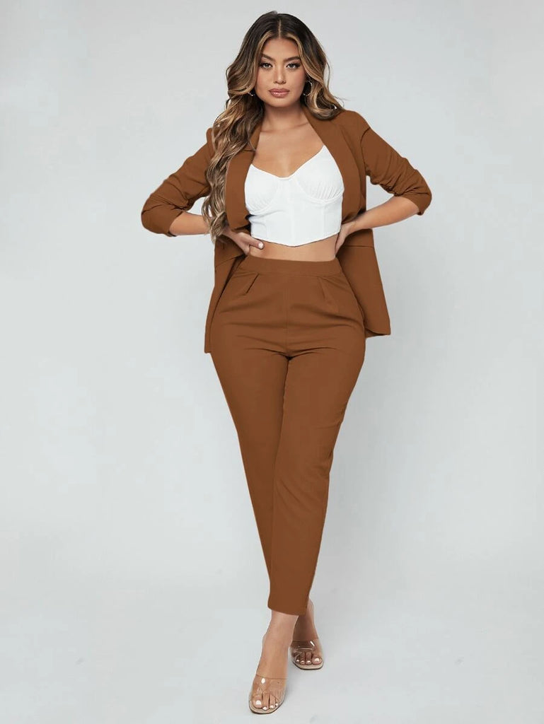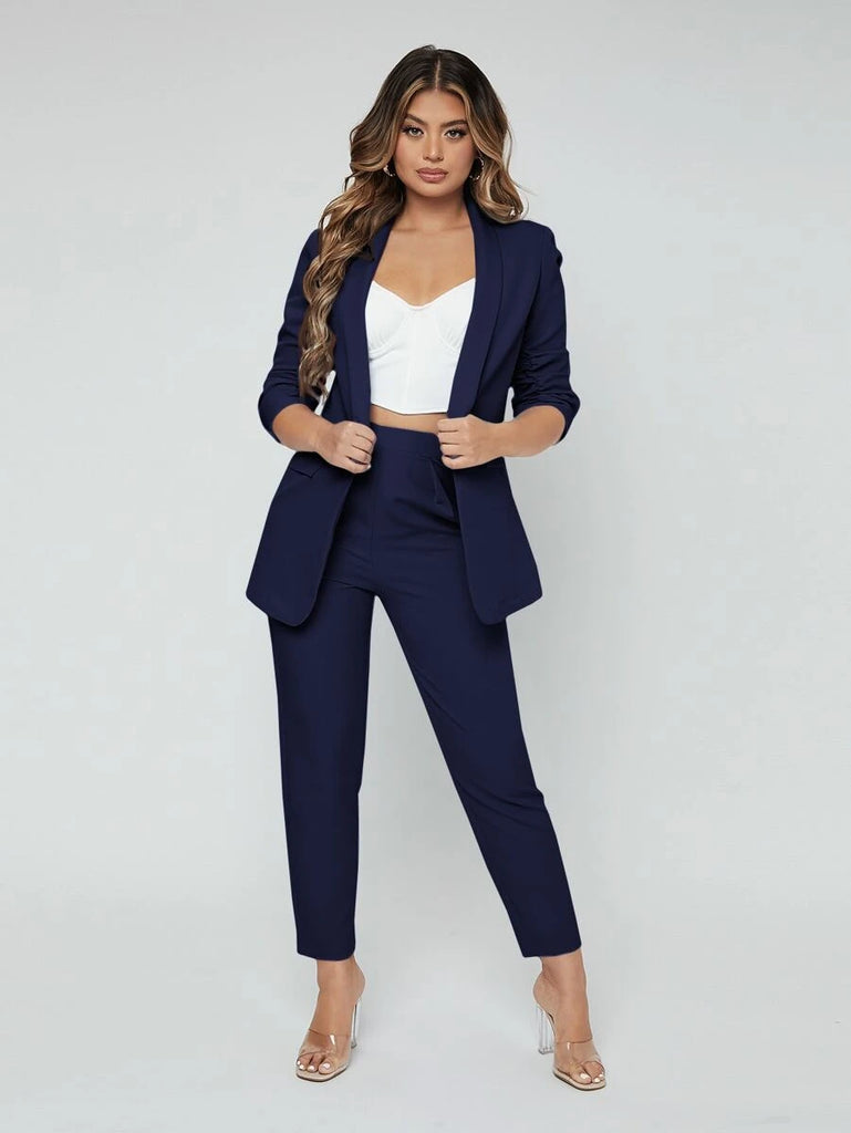 SXY Shawl Neck Open Front Blazer & Pants Suit