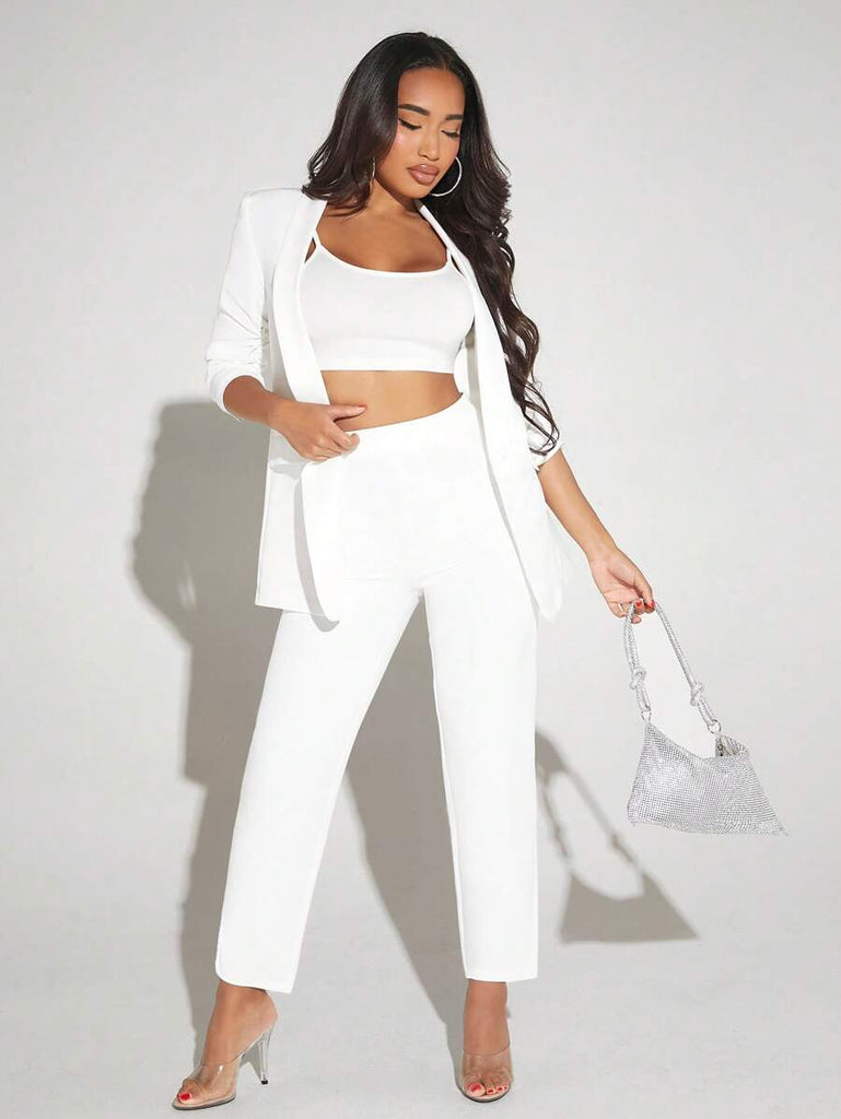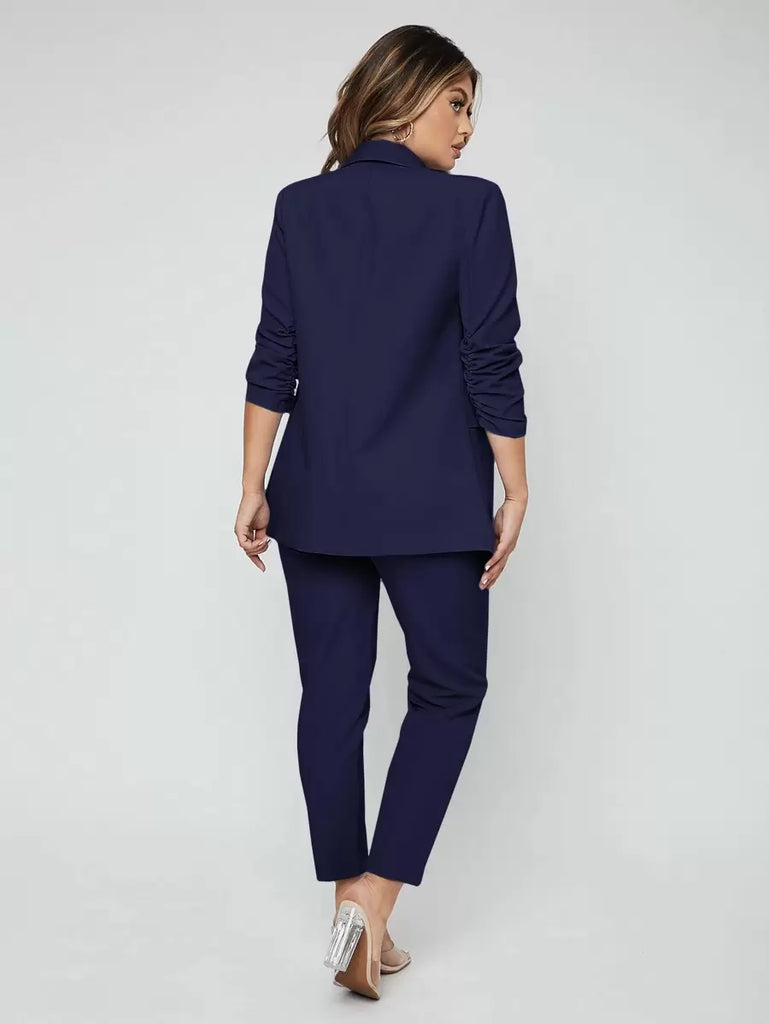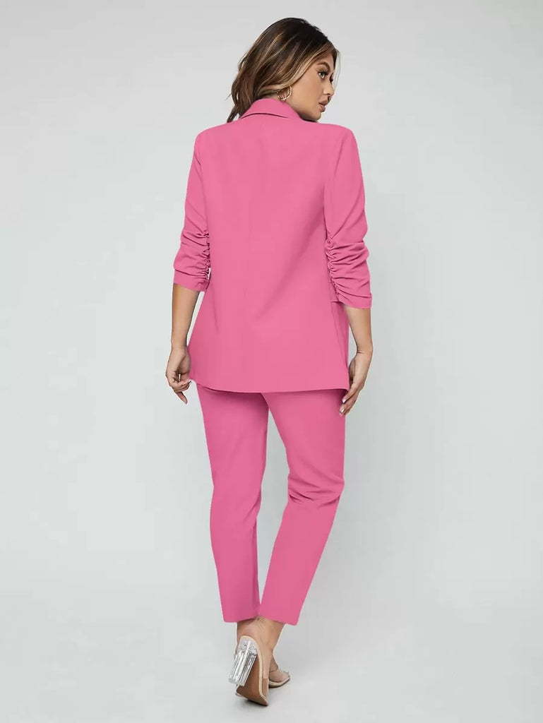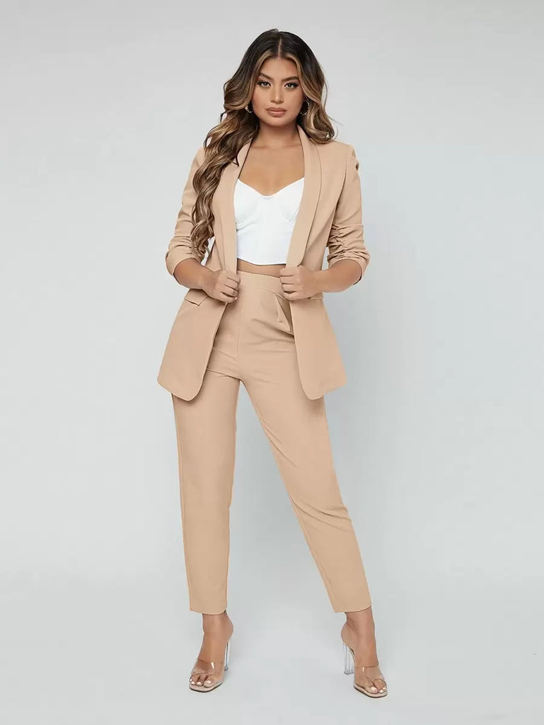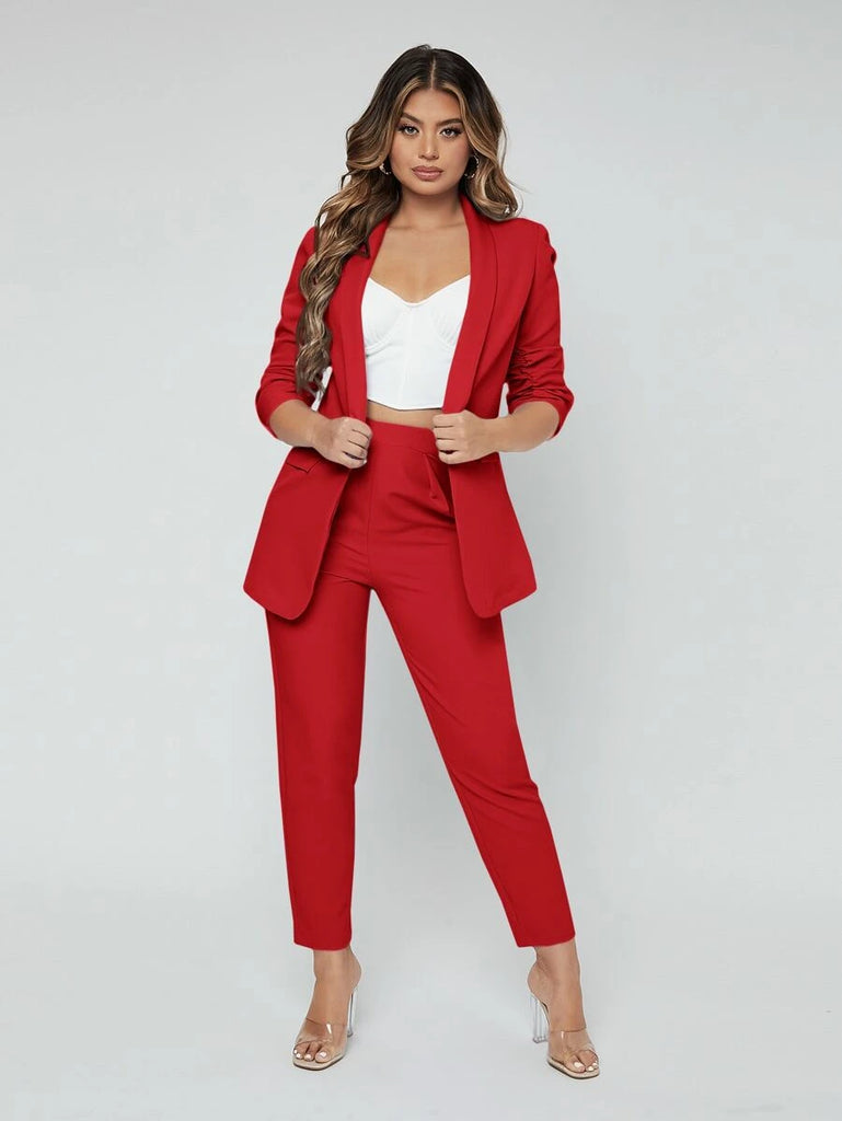 SXY Shawl Neck Open Front Blazer & Pants Suit