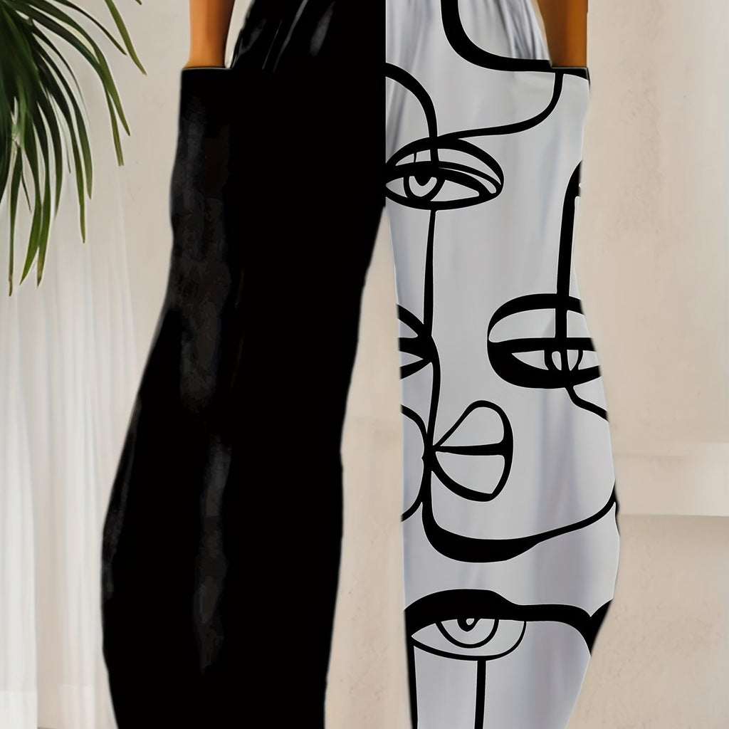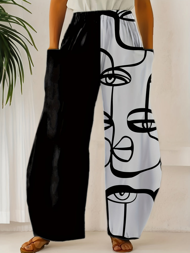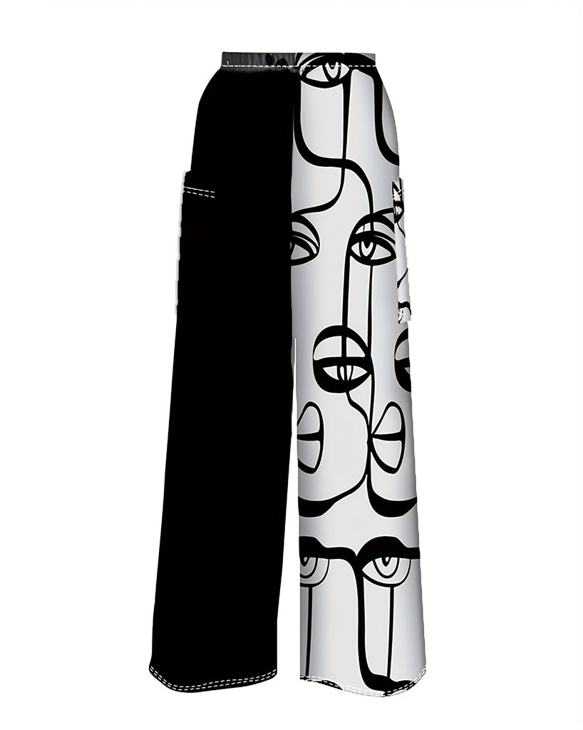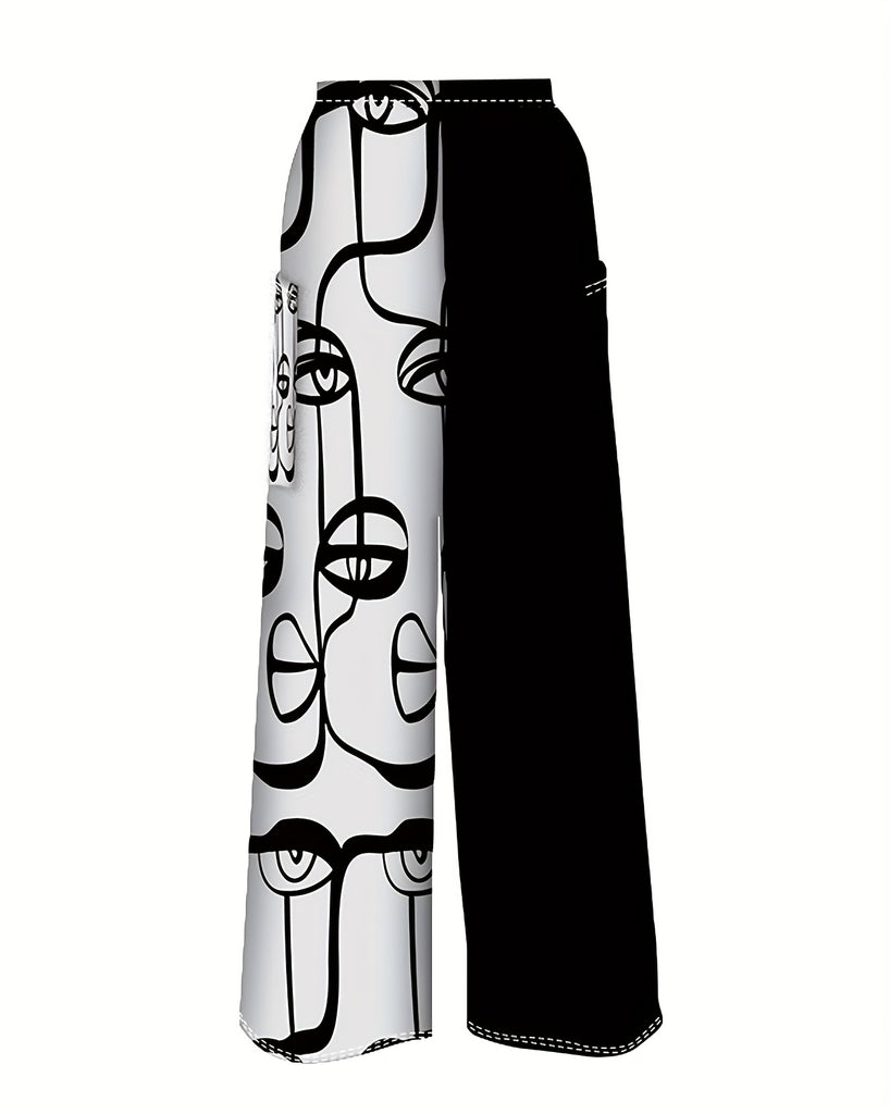 Women'S High-Waist Wide-Leg Pants with Eye Print - Casual, Comfortable, Machine Washable, All-Season Trousers in Black and White, Allseason Trousers|Modern Wideleg Pants|Stretchy Fabric