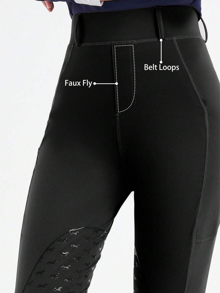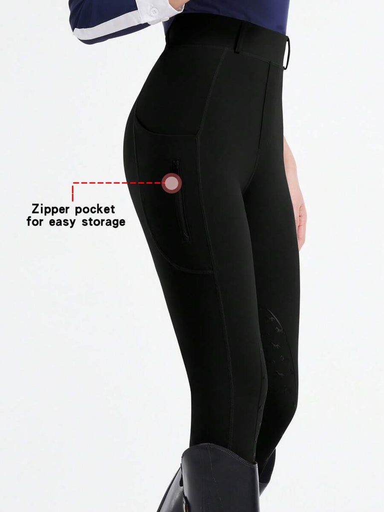 Women's Horseback Riding Leggings, Mid-Waist, Slimming, Pockets On Sides, Friction-Resistant, Elastic, Breathable, Sweat-Wicking, Soft And Comfortable, Suitable For Outdoor Horse Riding Sports