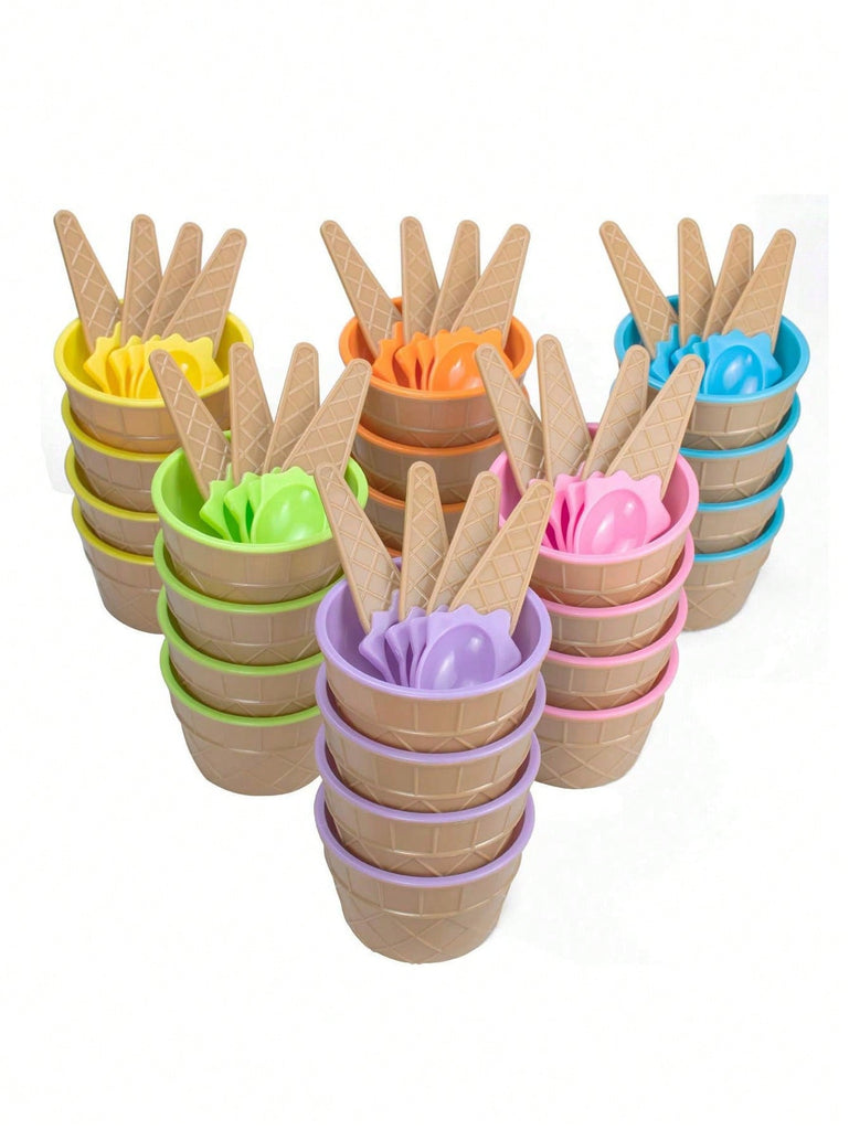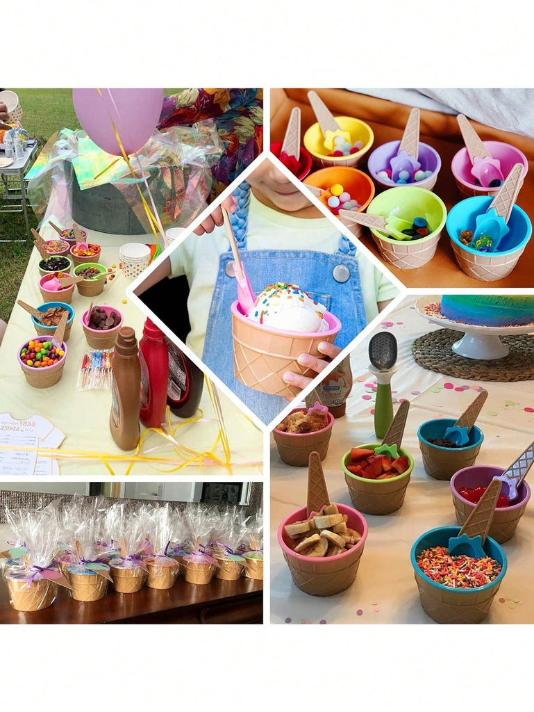 1/2/4set Ice Cream Bowl And Spoon Set, Reusable Ice Cream Cup, Children's Ice Cream Bowl,Random Set Of Ice Cream Birthday Party Decoration,Ice Cube,Party,Travel,Wedding,Birthday,Graduation,Bachelorette Party,Bachelorette,Kitchen,Kitchen Items,Storage,Dec
