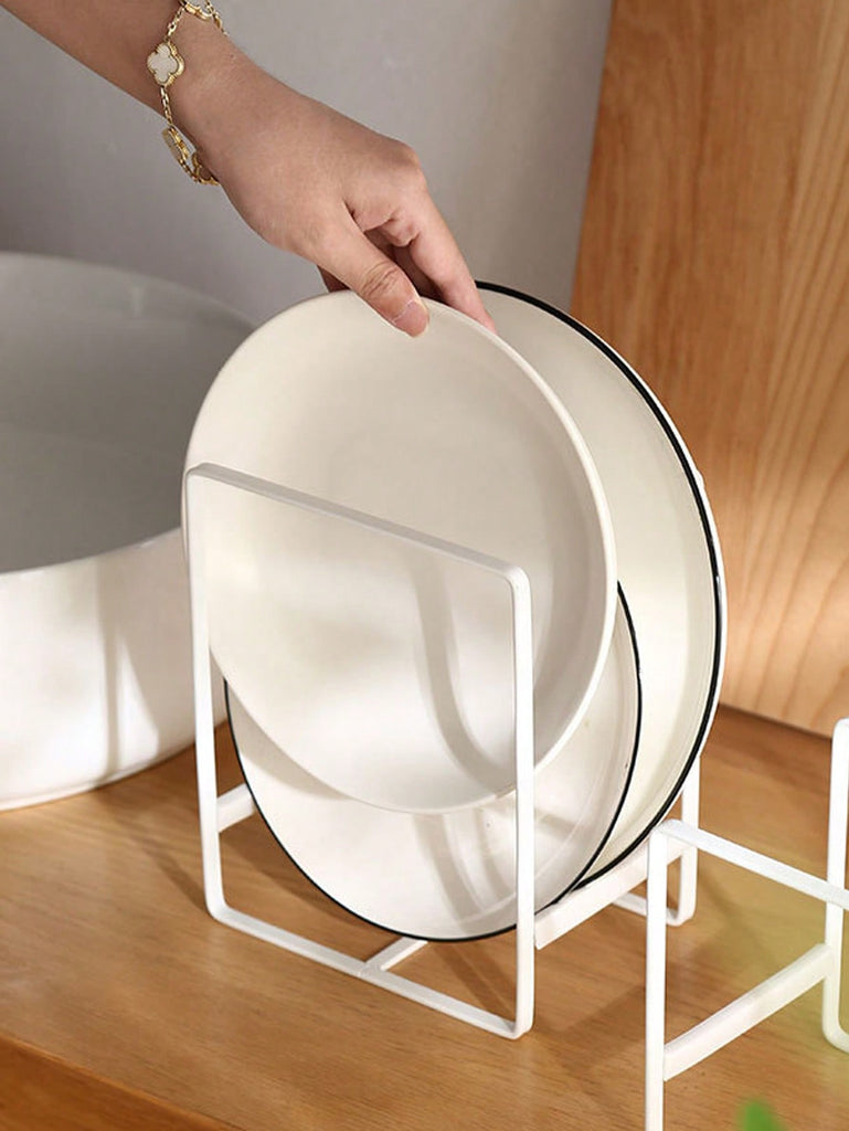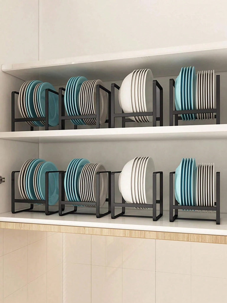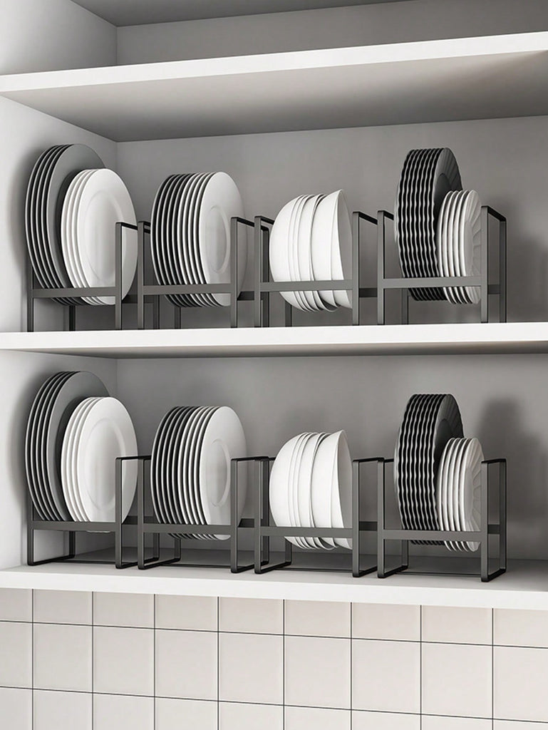 1/2pcs Iron Dish Storage Holder, Minimalist Black Dish Rack For Kitchen, Durable Metal Plate Organizer For Kitchen Counter