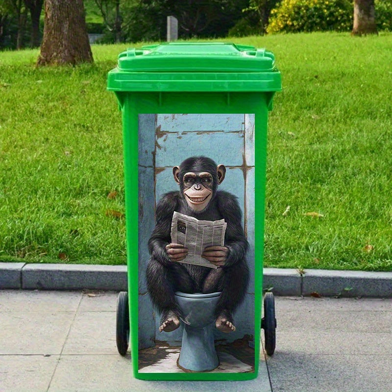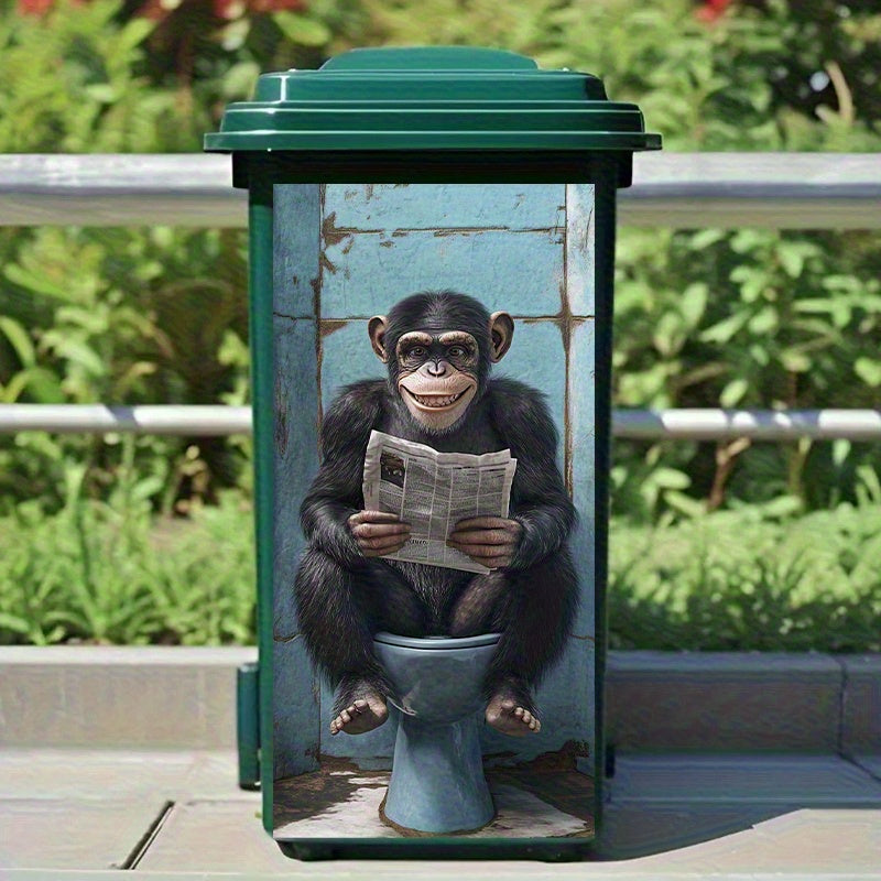 1 Funny Gorilla Reading Newspaper Trash Can Sticker - Humorous Waterproof PVC Decal, 36.83x90.17 cm, Creative Wall and Trash Decor for Kitchen & Home
