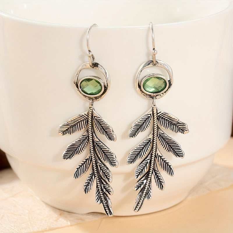1 Pair Bohemian Leaf-Shaped Earrings for Women, Fashionable Vintage Style Long Dangle Ear Accessories