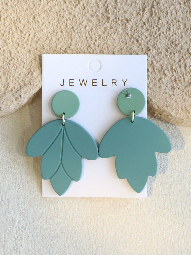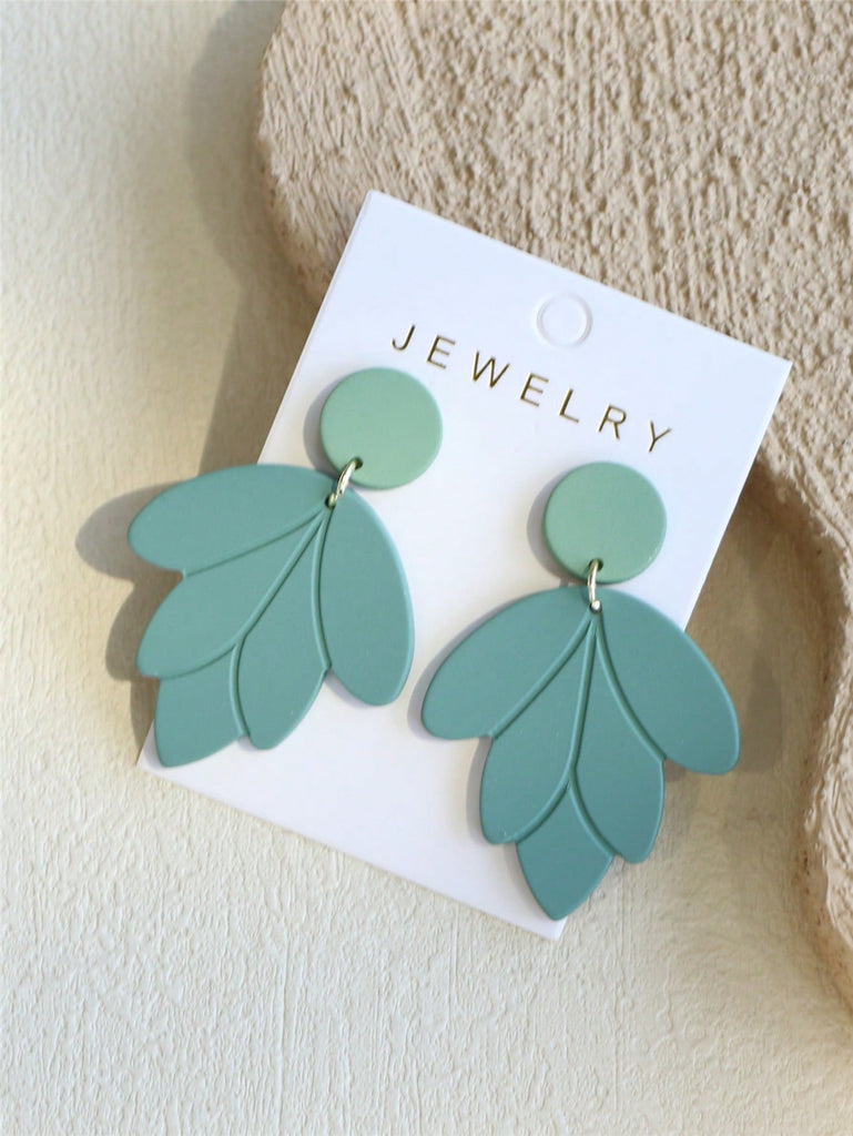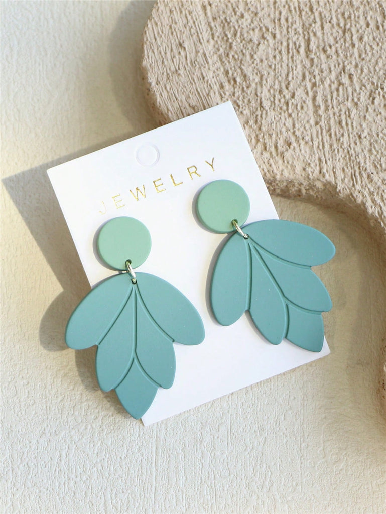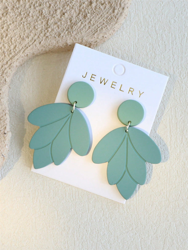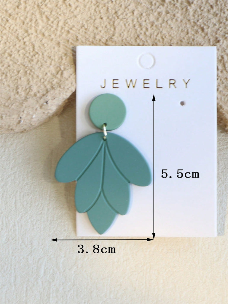1 Pair Elegant Women's Shallow Green Ceramic Texture Leaf Shaped Acrylic Earrings