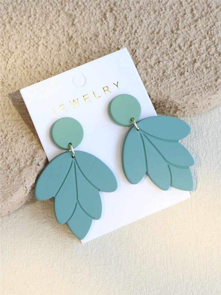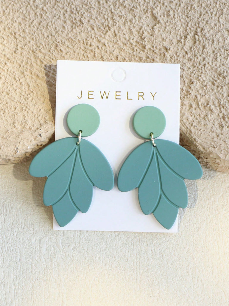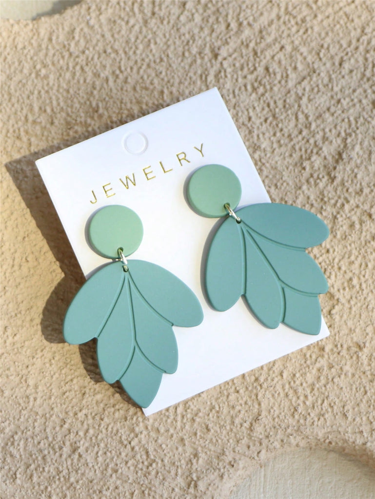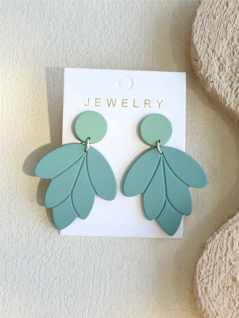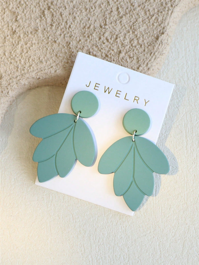 1 Pair Elegant Women's Shallow Green Ceramic Texture Leaf Shaped Acrylic Earrings