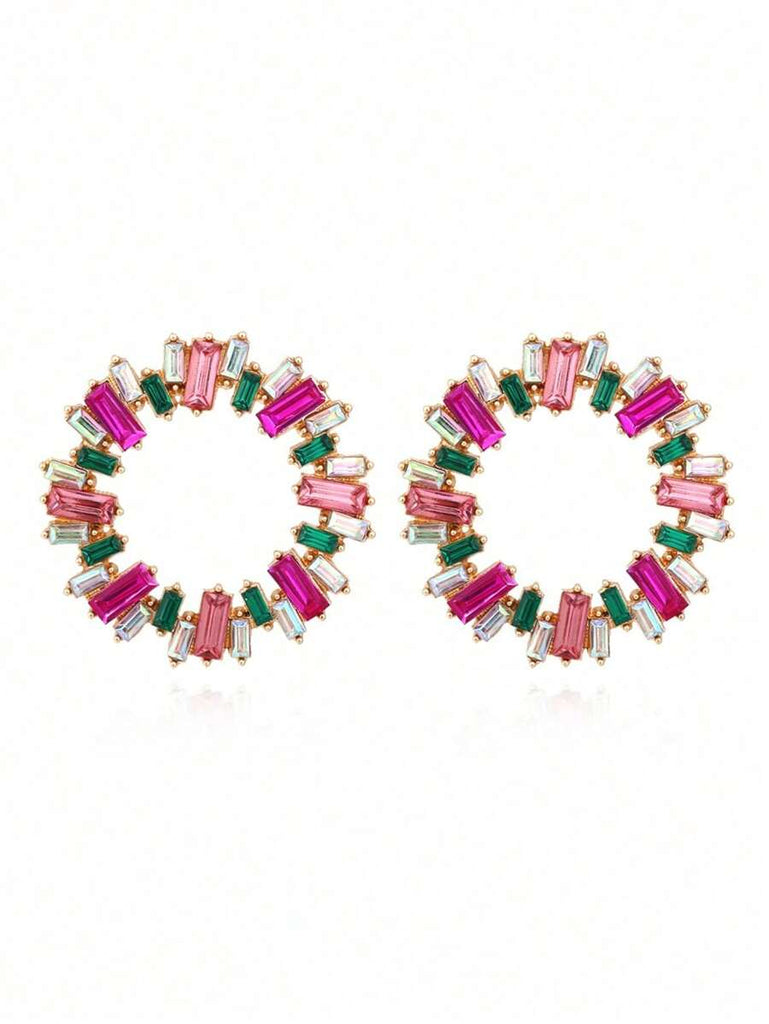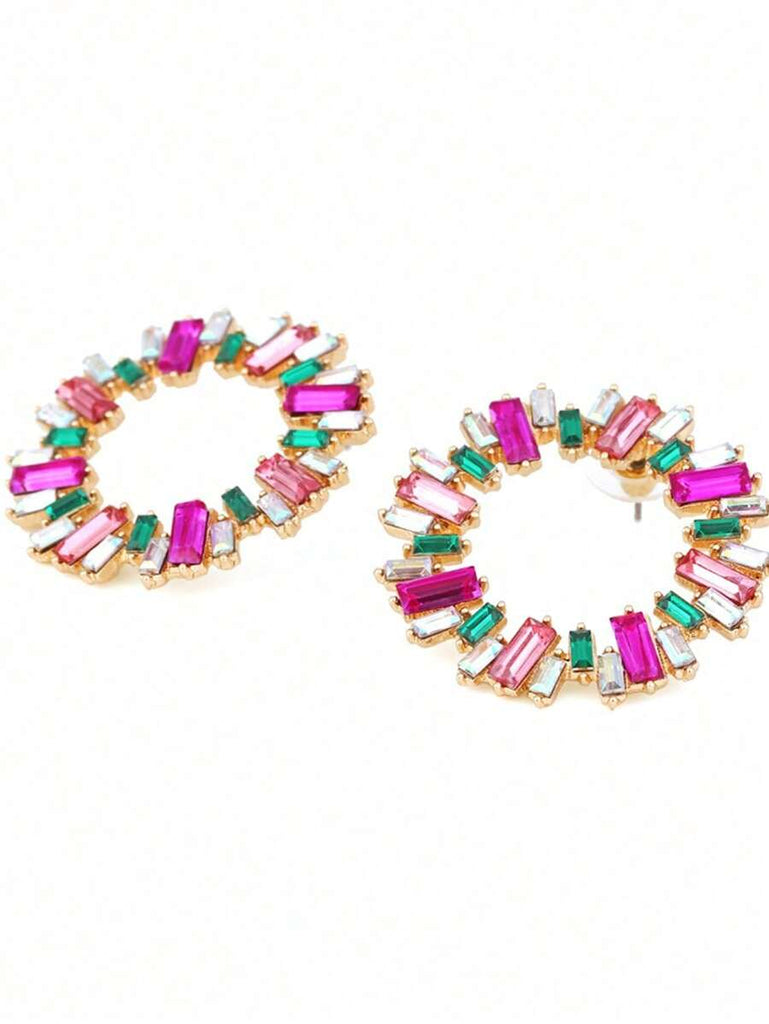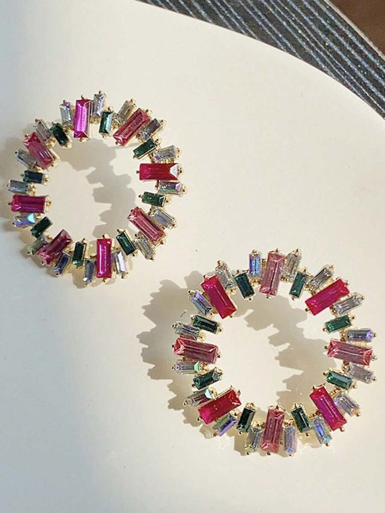 1 Pair Fashion Exaggerated Round Crystal Inlaid Retro Style Hoop Earrings For Women, Versatile For Daily Wear