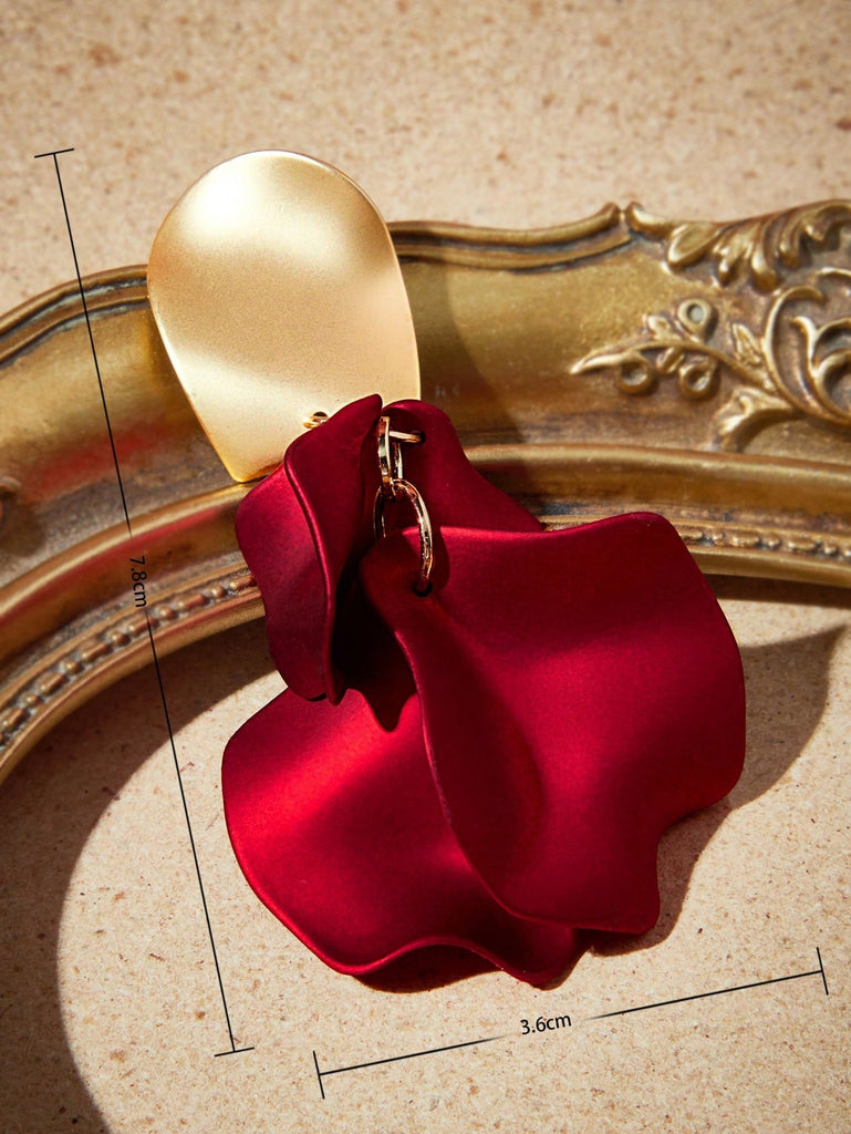 1 Pair Fashionable Red Metal Petal Tassel Earrings For Women