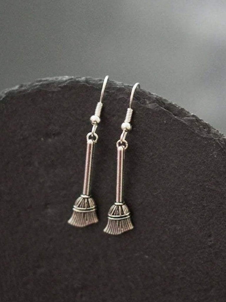 1 Pair Minimalist Punk Broom Earrings, Suitable For Women Everyday, Festival, Party Wear, Halloween Gift