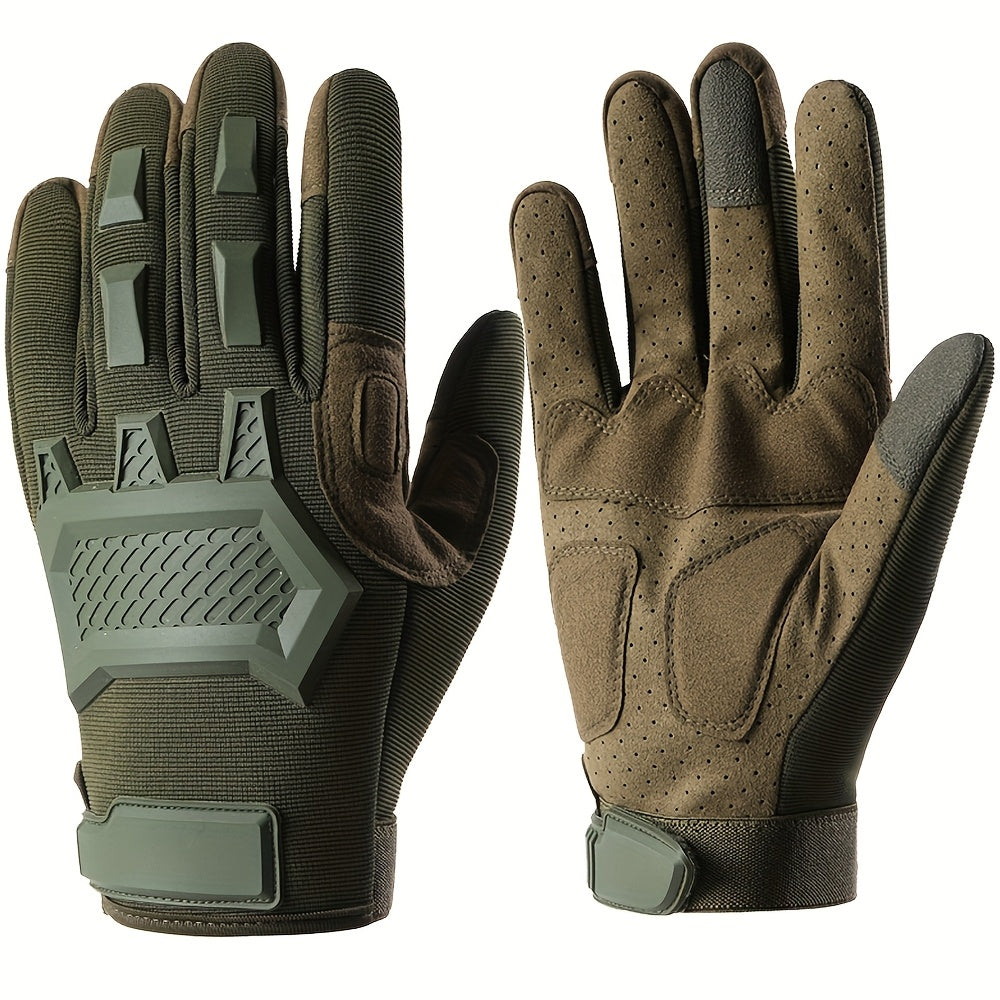 1 Pair of Full-Finger Touchscreen Gloves for Adults - Microfiber, Breathable Perforated Design, Adjustable Hook-and-loop Fastener Strap, Brown, Ideal for Outdoor Activities, Hand Gloves