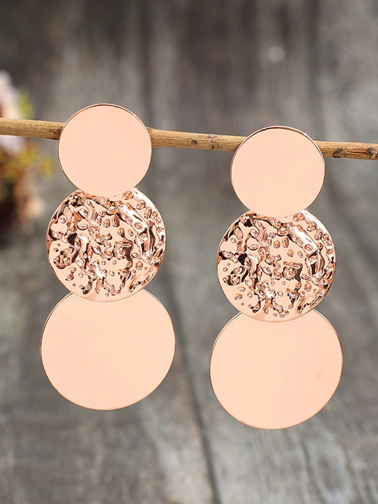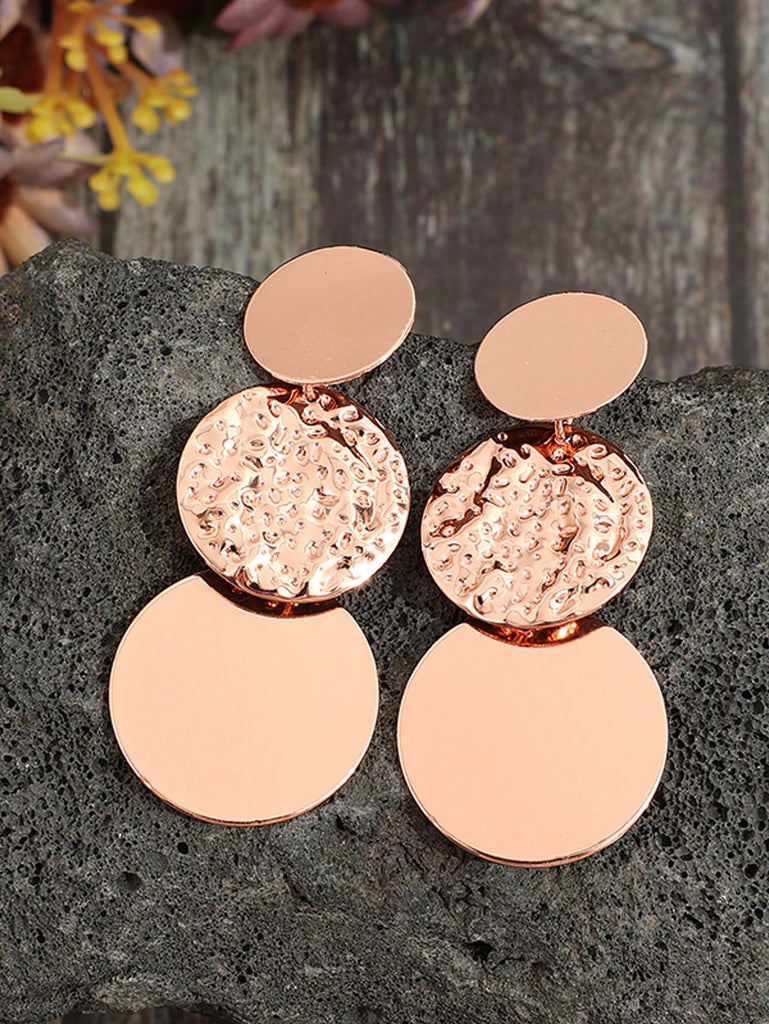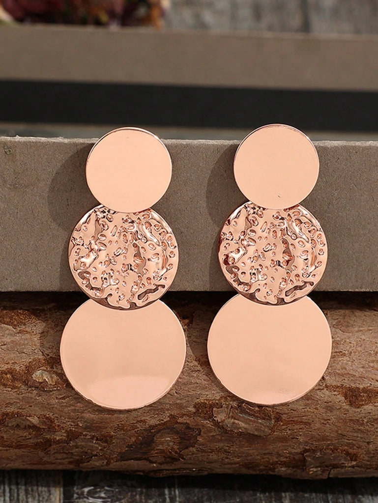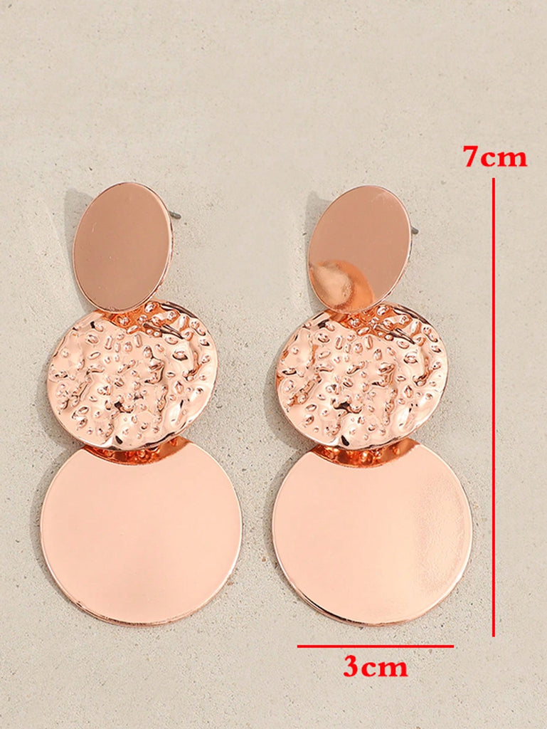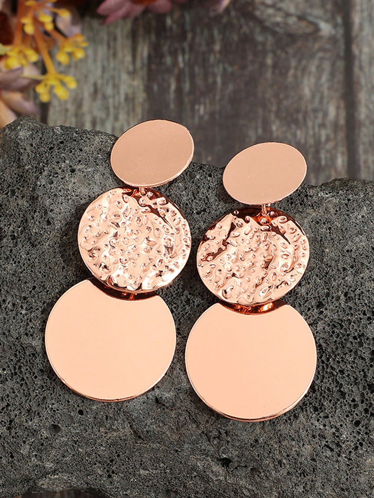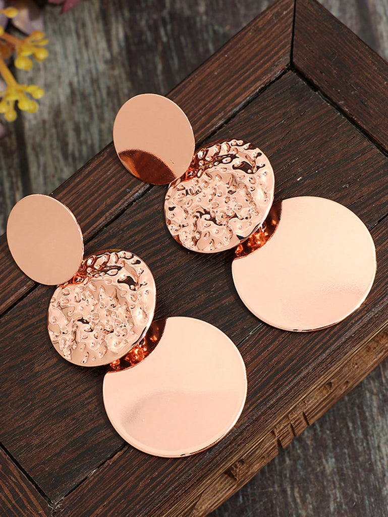 1 Pair Round Hollow Textured Stud Earrings, Suitable For Daily Wear