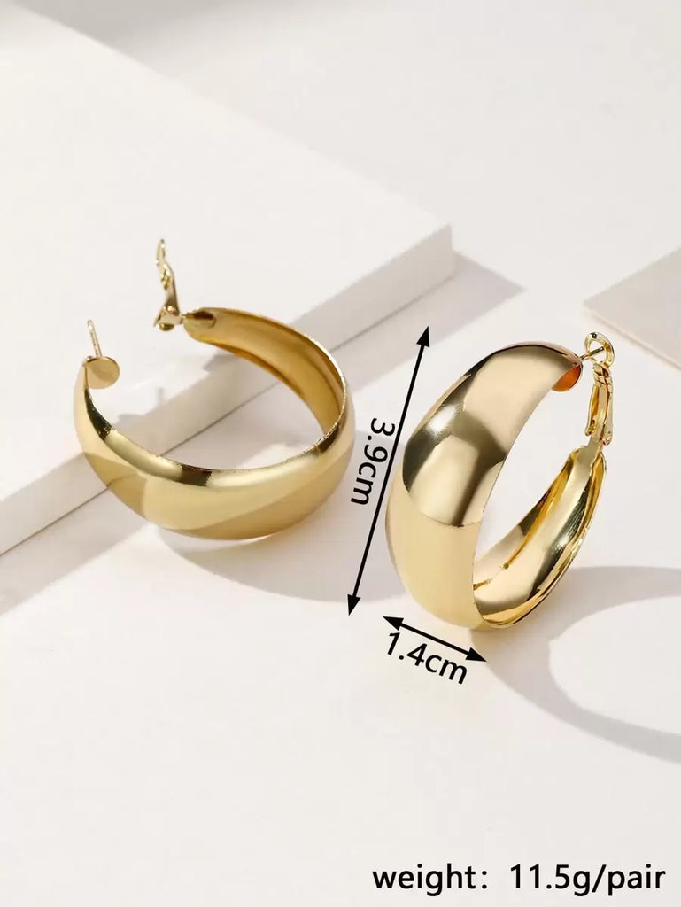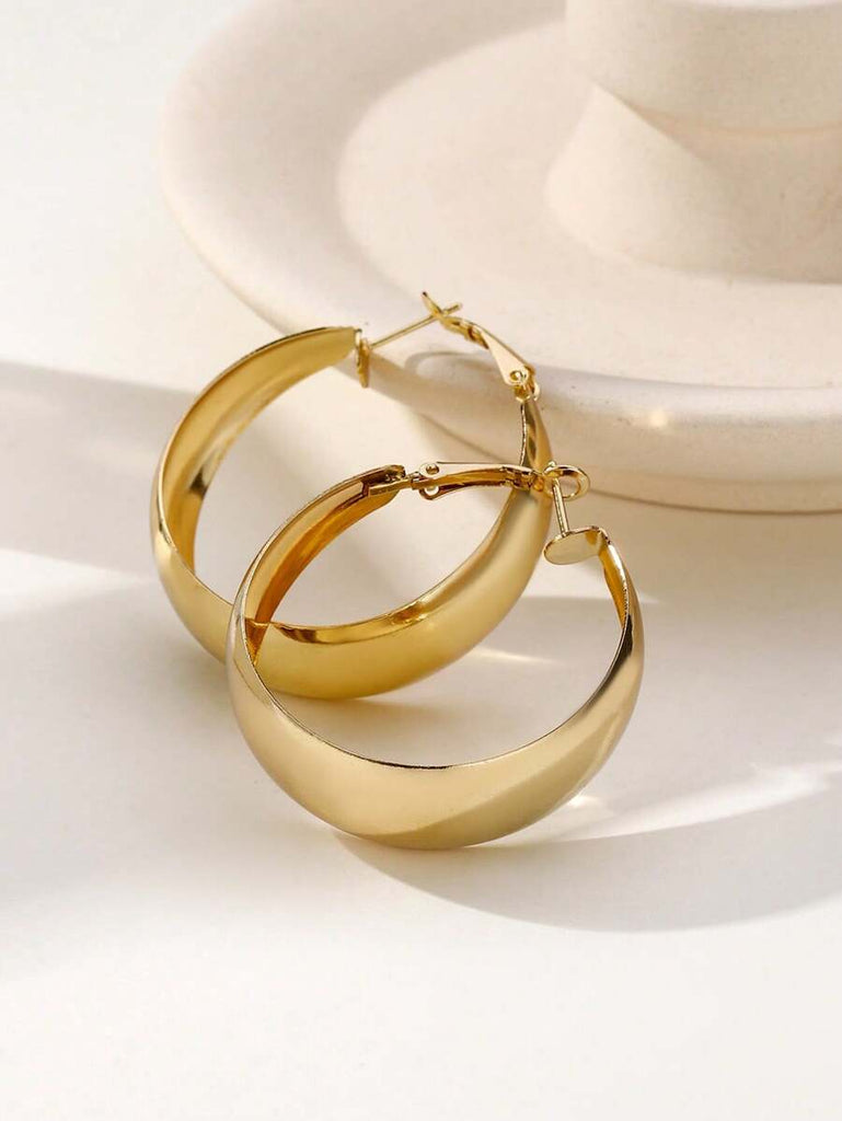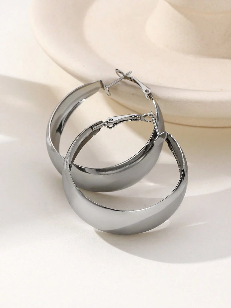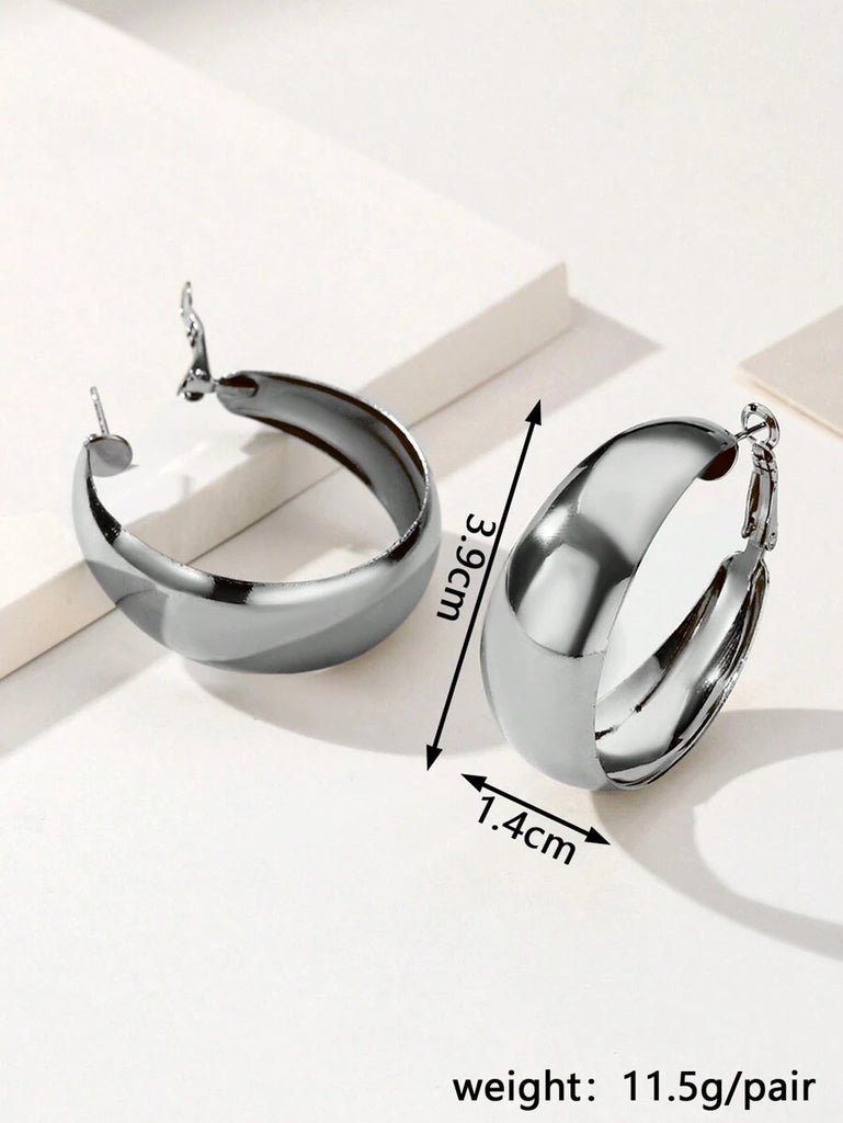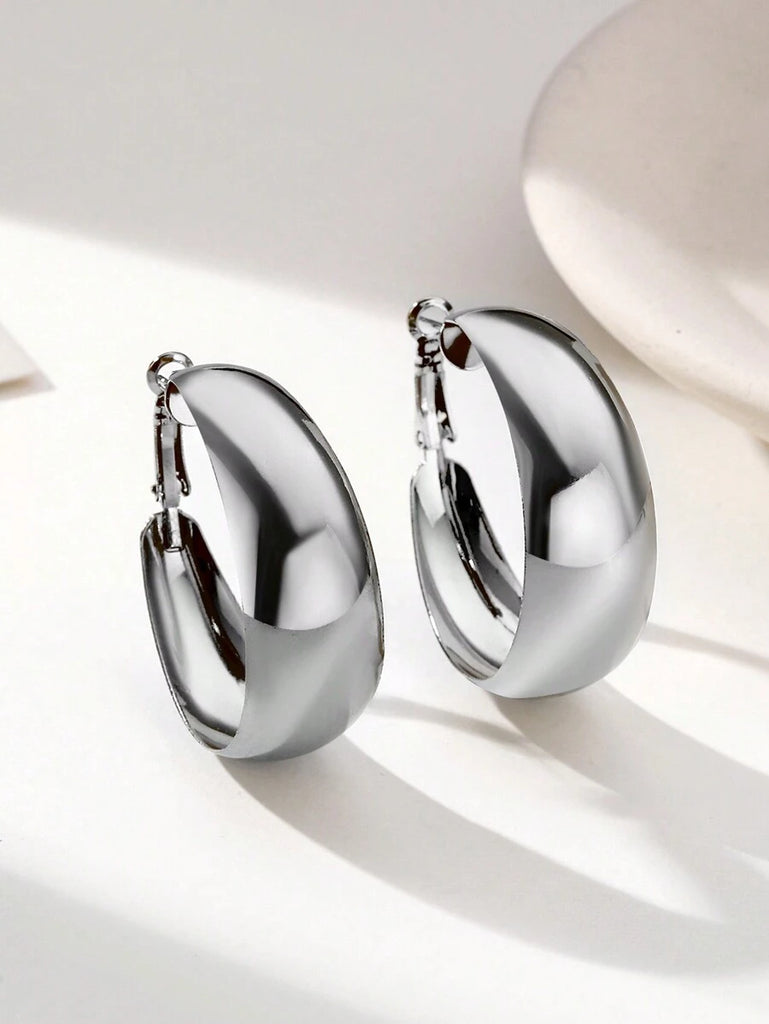 1 Pair Stainless Steel Curved High Polished C-Shaped Hoop Earrings For Women, Fashionable & Versatile