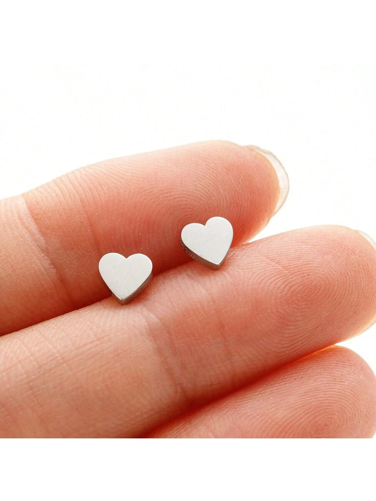 1 Pair Stainless Steel Earrings Korean Sweet Heart Fashion Stud Earrings For Women Jewelry Party Friends Wedding Gifts NEW