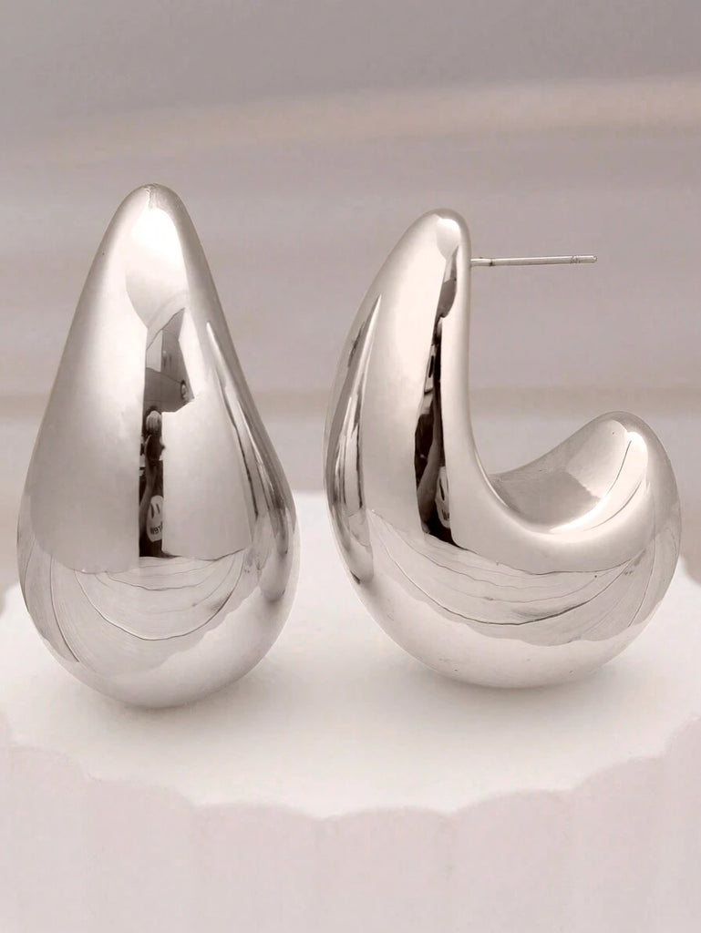 1 Pair Stainless Steel Oversized Water Drop Earrings For Women, Suitable For Party, Gathering And Daily Wear