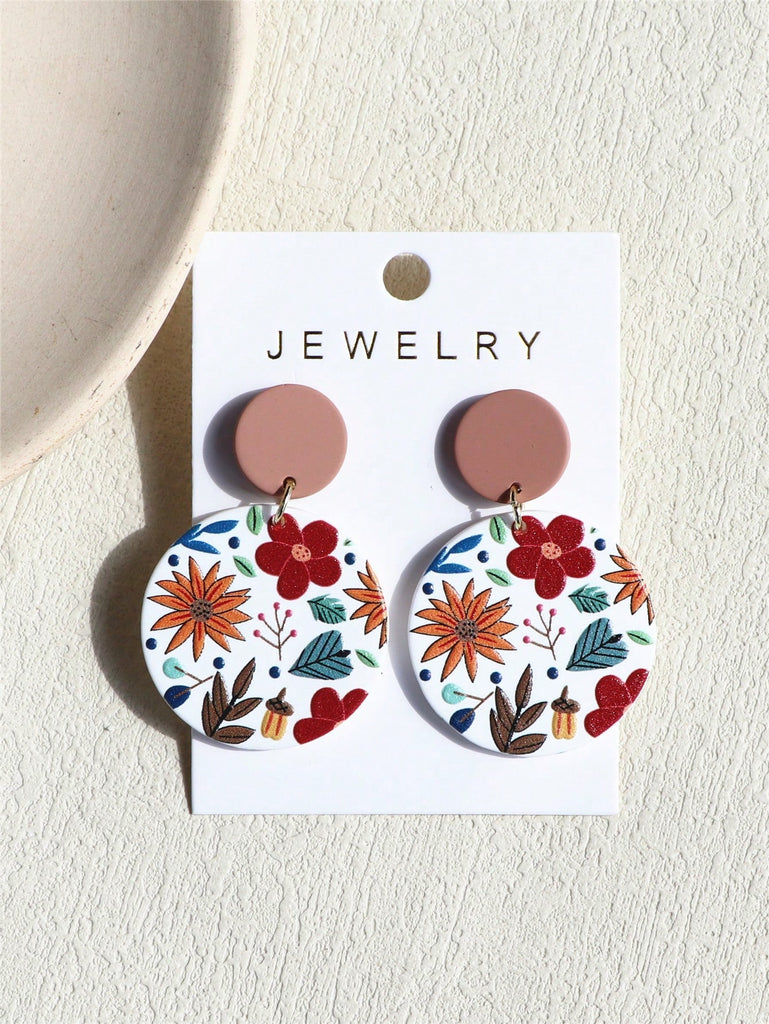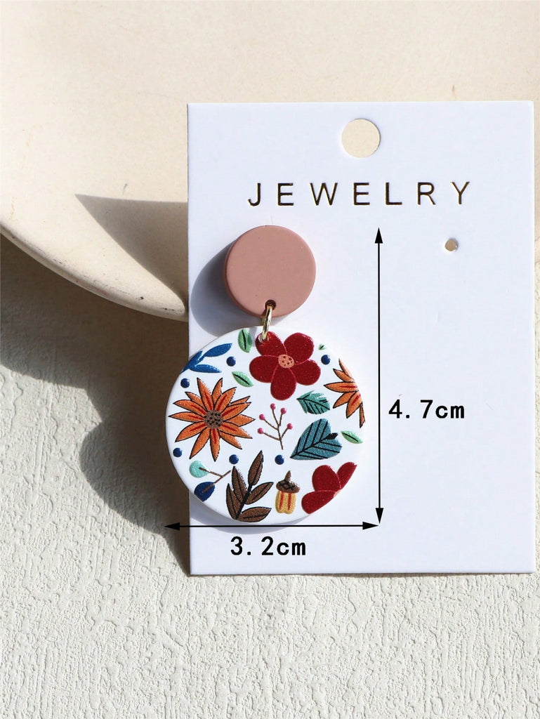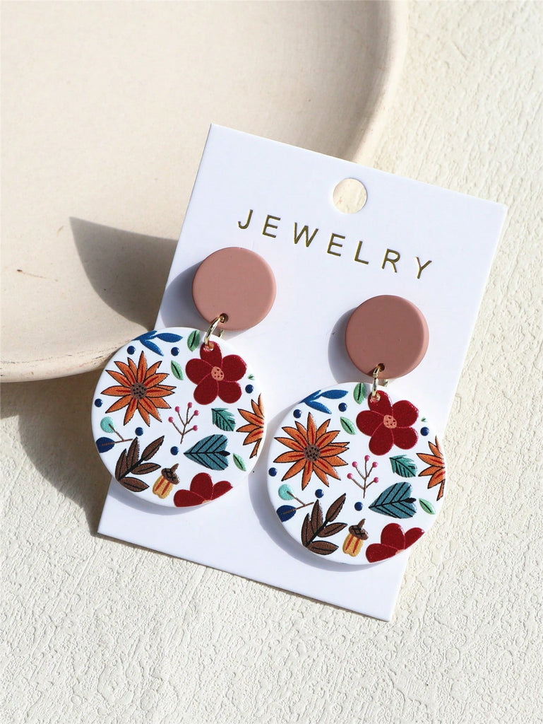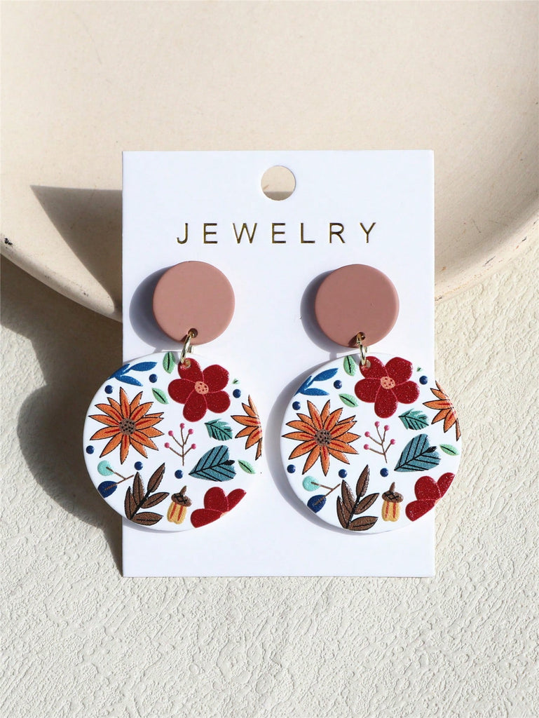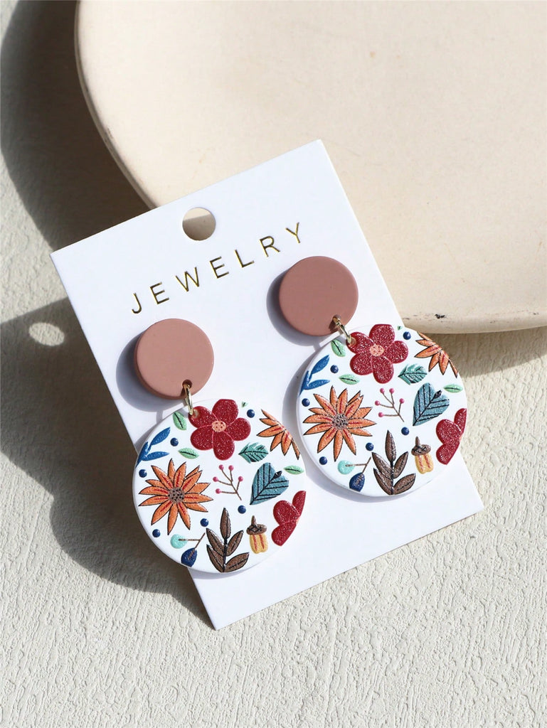 1 Pair Women Daisy Flower Printed Clay Texture Cute Elegant Acrylic Round Earrings