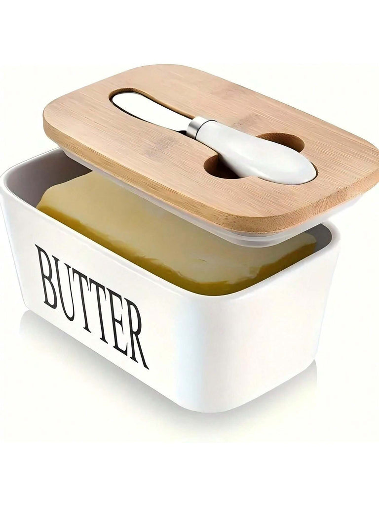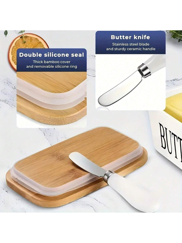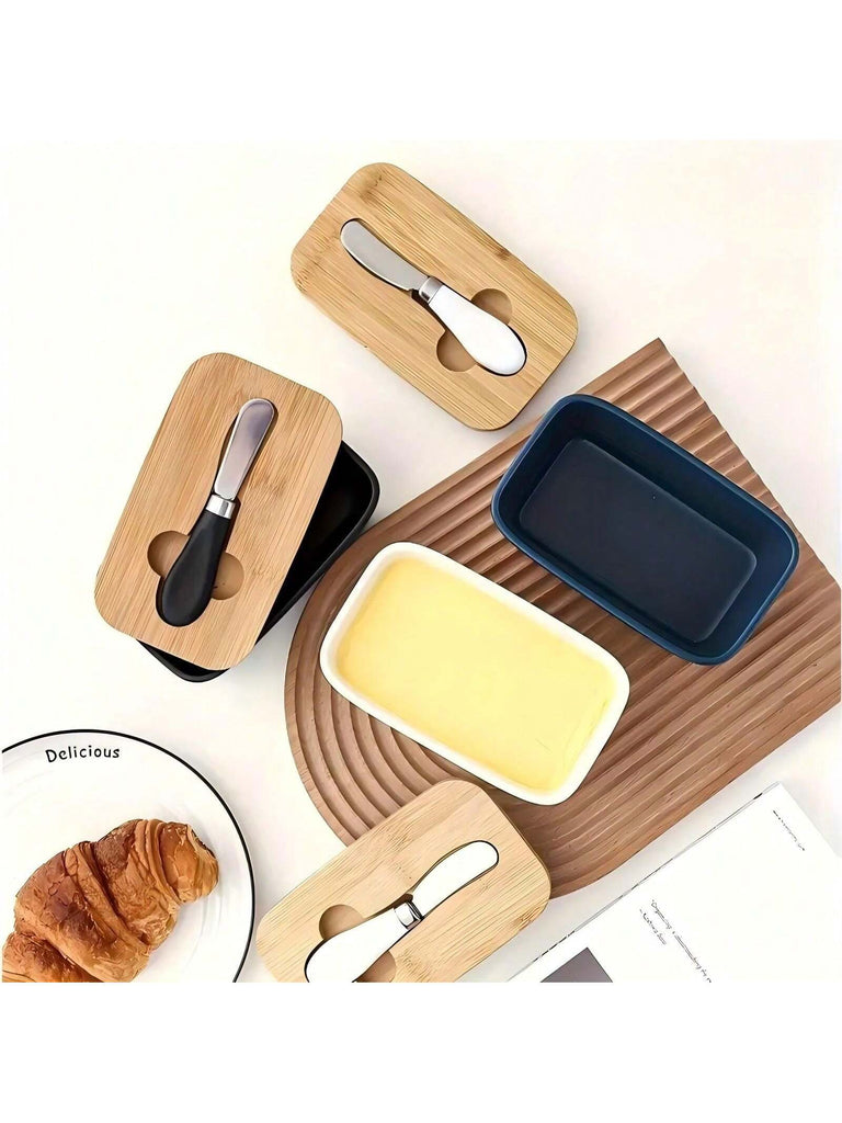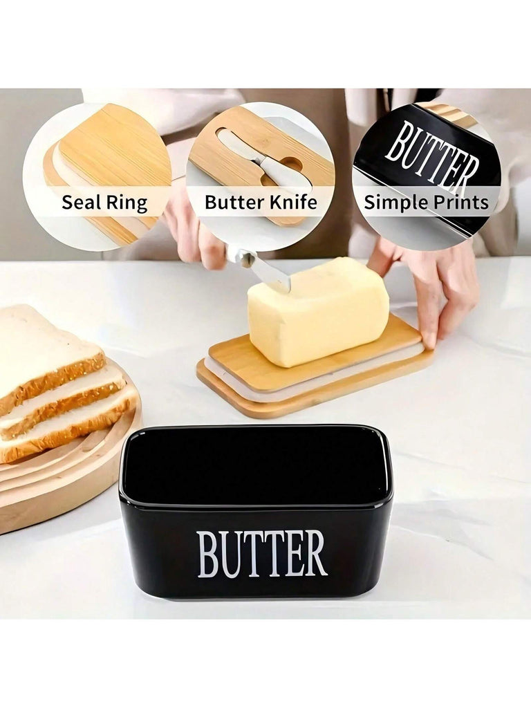 1 Piece 350 Ml / 11.83 Oz With Lid Ceramic Butter Plate And Knife, Available In White / Green / Black/Dark Blue, High-Sealing Cheese / Ceramic Butter Container, Elegant Ceramic Butter Jar, Table Butter Storage Box, With Double Silicone Sealing Ring