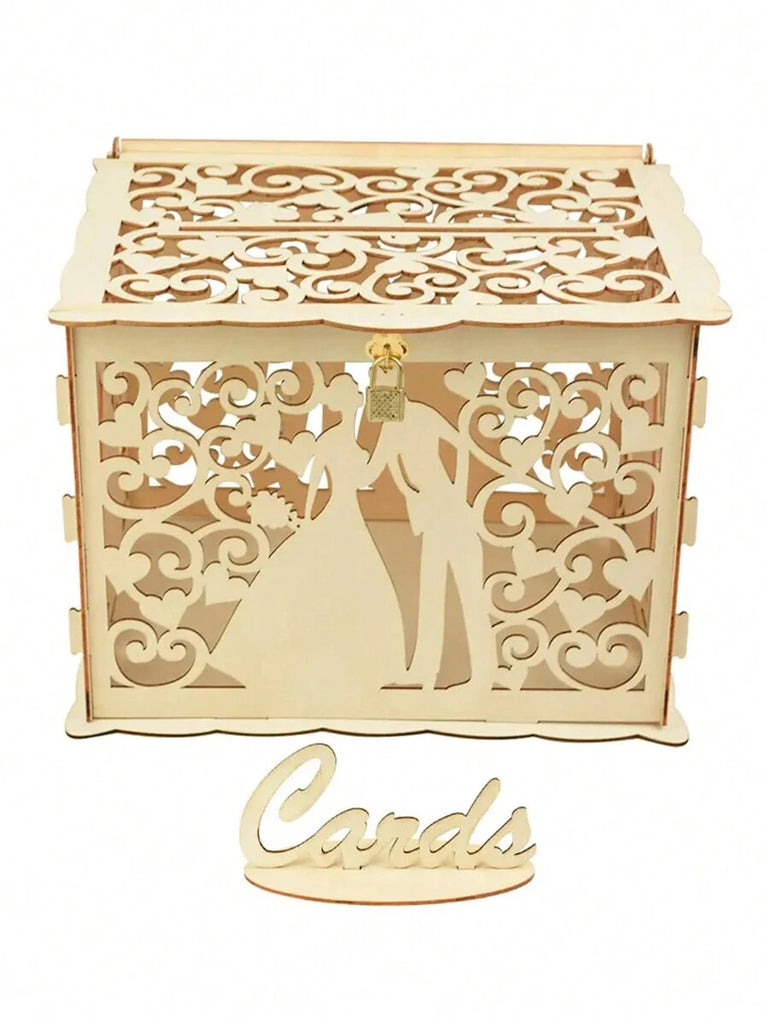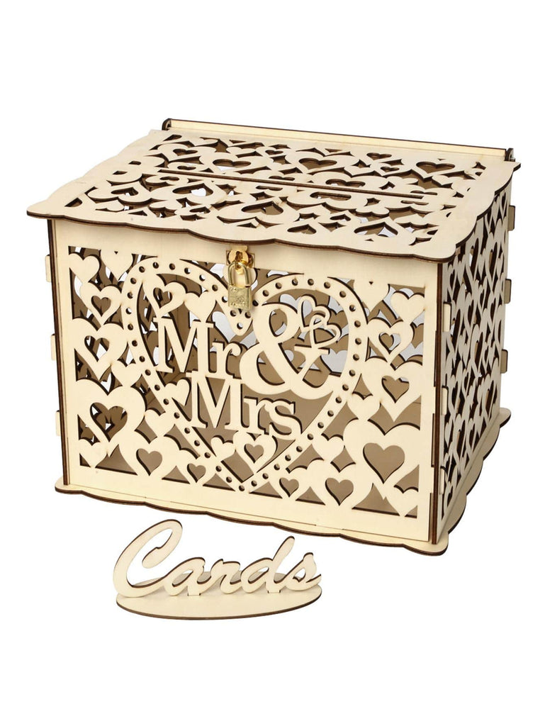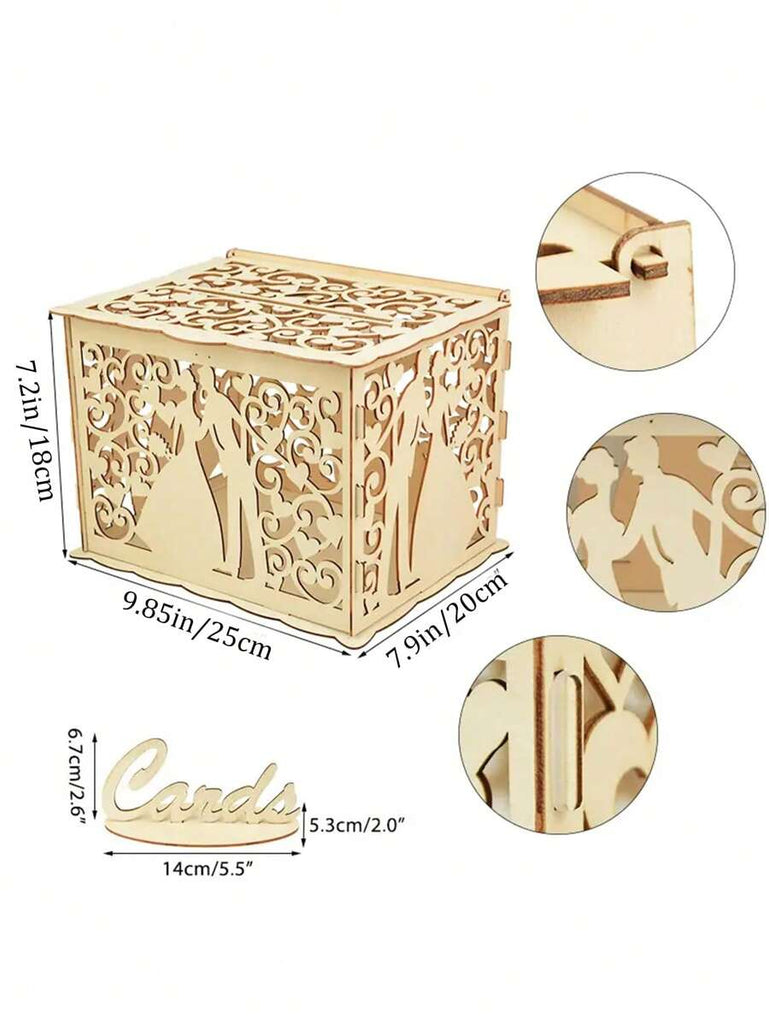 1 Set Wood Wedding Card Box With Lock And Cards Sign, Card Box For Wedding, Rustic Wedding Box For Cards And Money, Wedding Gift Box For Reception, Anniversary, Bridal Shower, Party