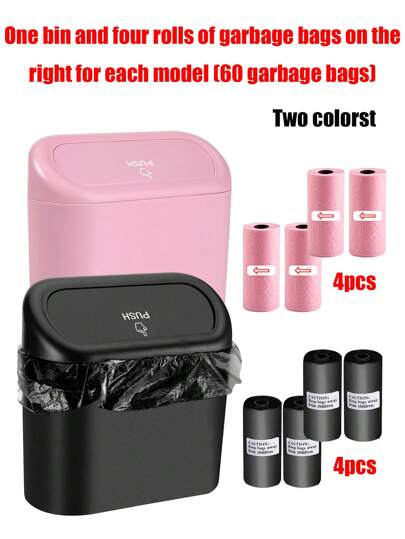 1 Trash Can And 4 Rolls Of Garbage Bags (15 Per Roll, 60 Garbage Bags In Total), Two Colors, Super Cute And Super Practical Car Trash Can And Garbage Bag