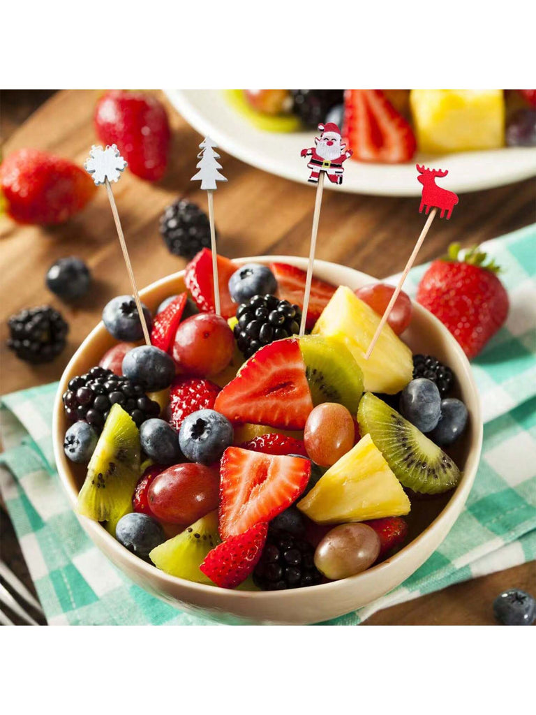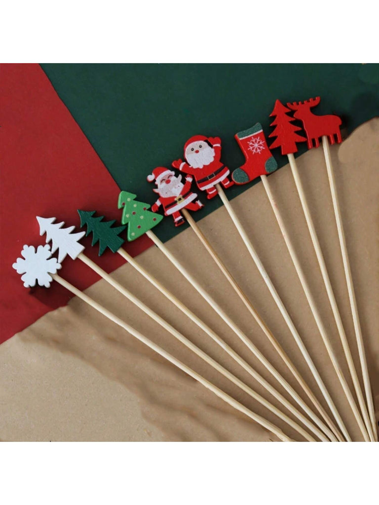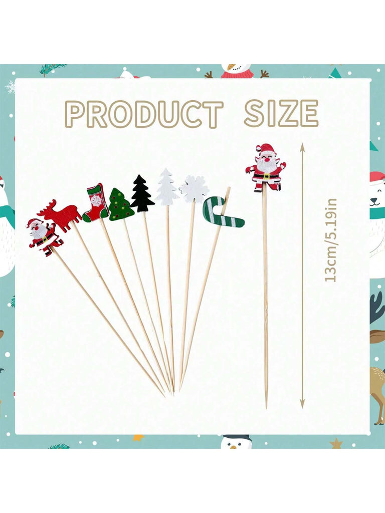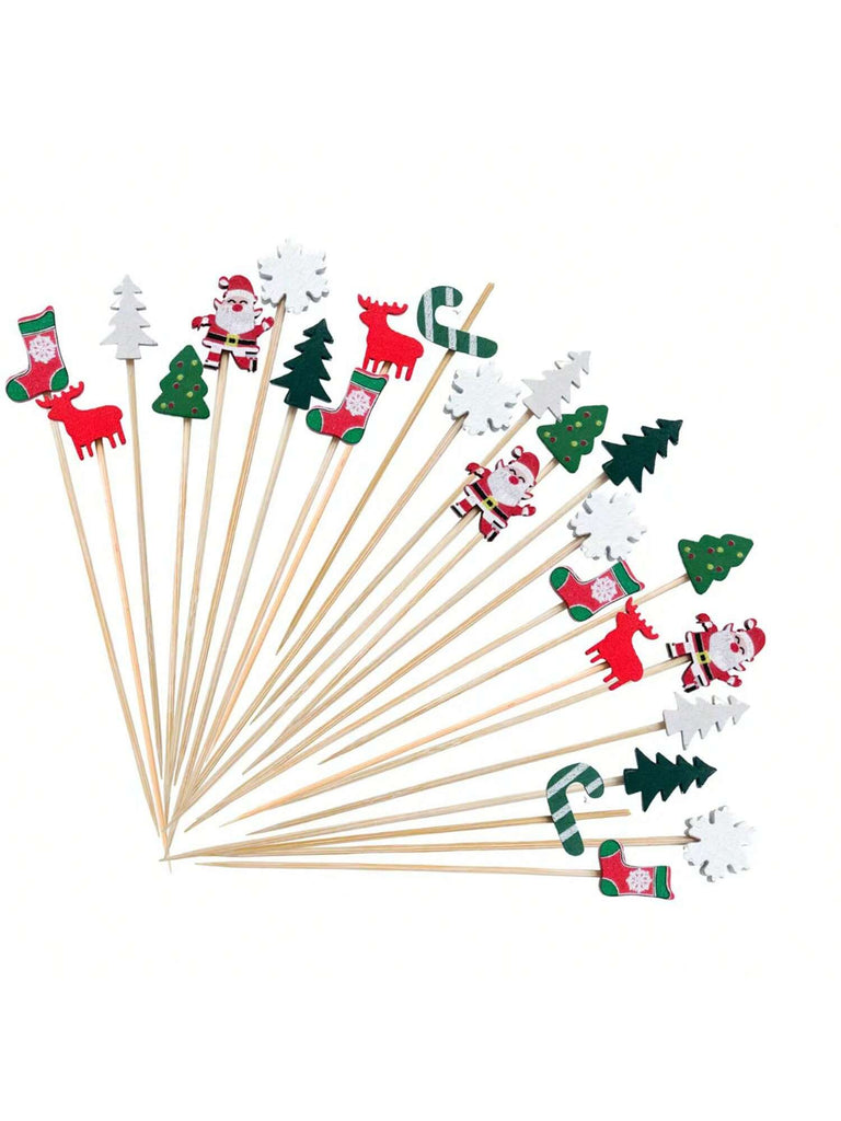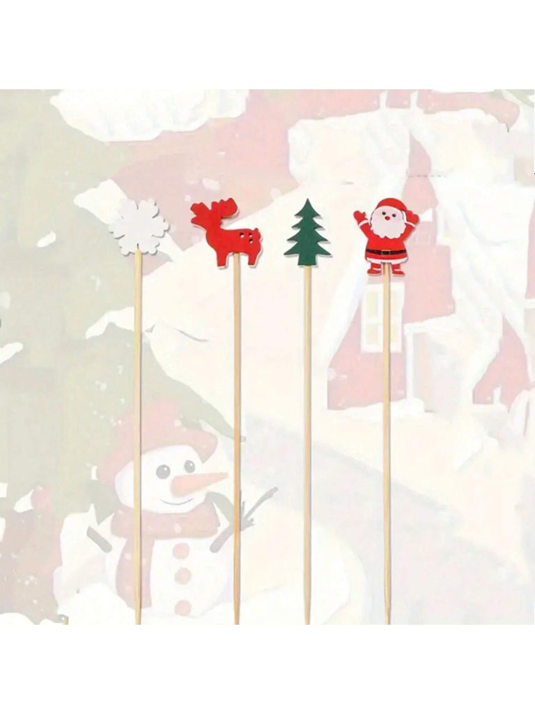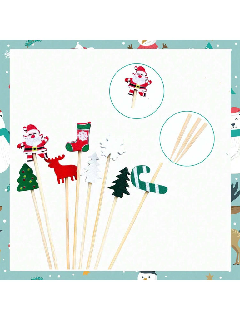 10/20/30/50/80/100/200 Pcs Christmas/Thanksgiving/Halloween Toothpick Set, Bamboo Toothpicks With Various Holiday Designs - Santa Claus, Reindeer, Snowman, Snowflake, Christmas Tree And Star Designs, Suitable For Holiday Party Appetizers, Fruit Skewers,