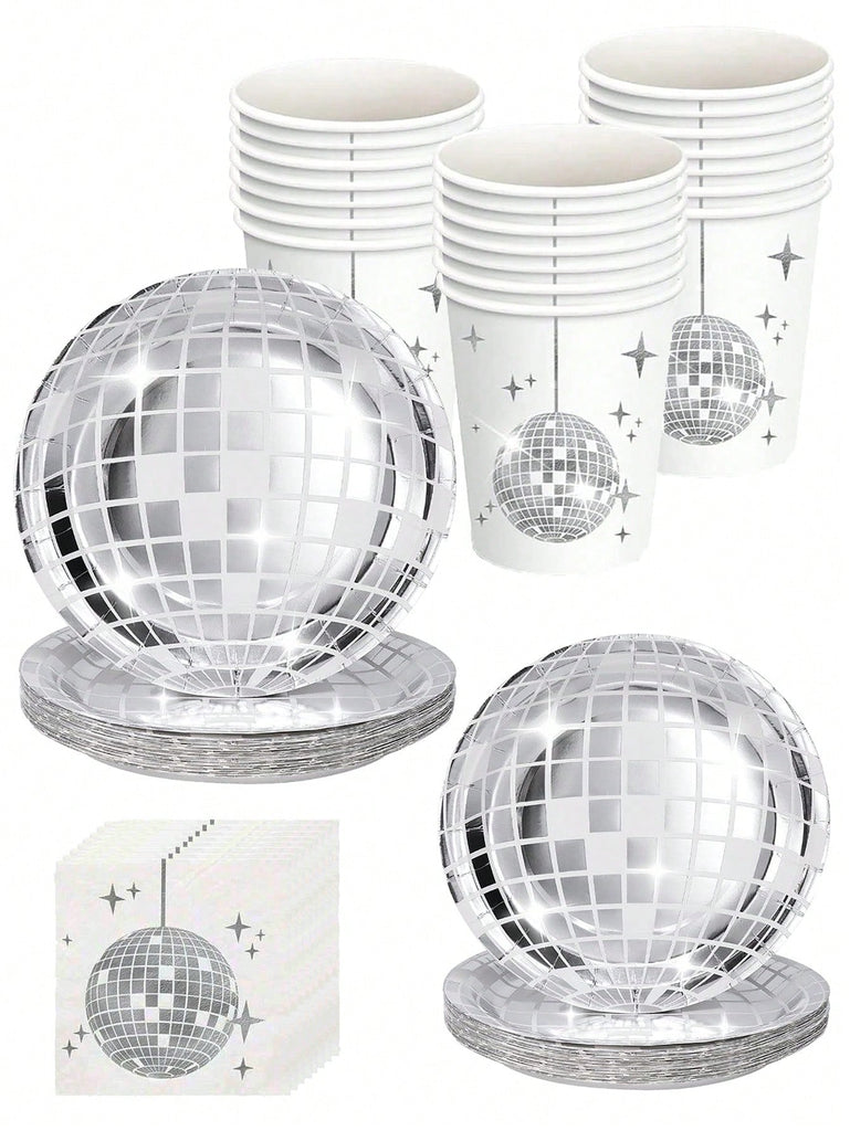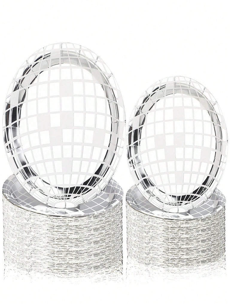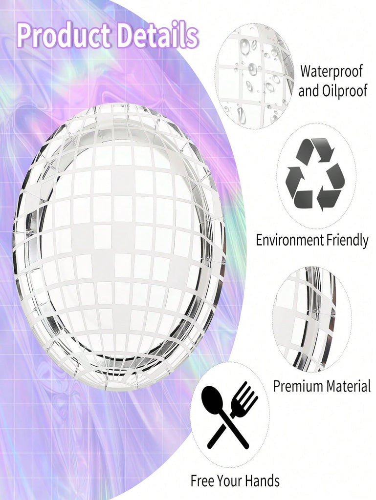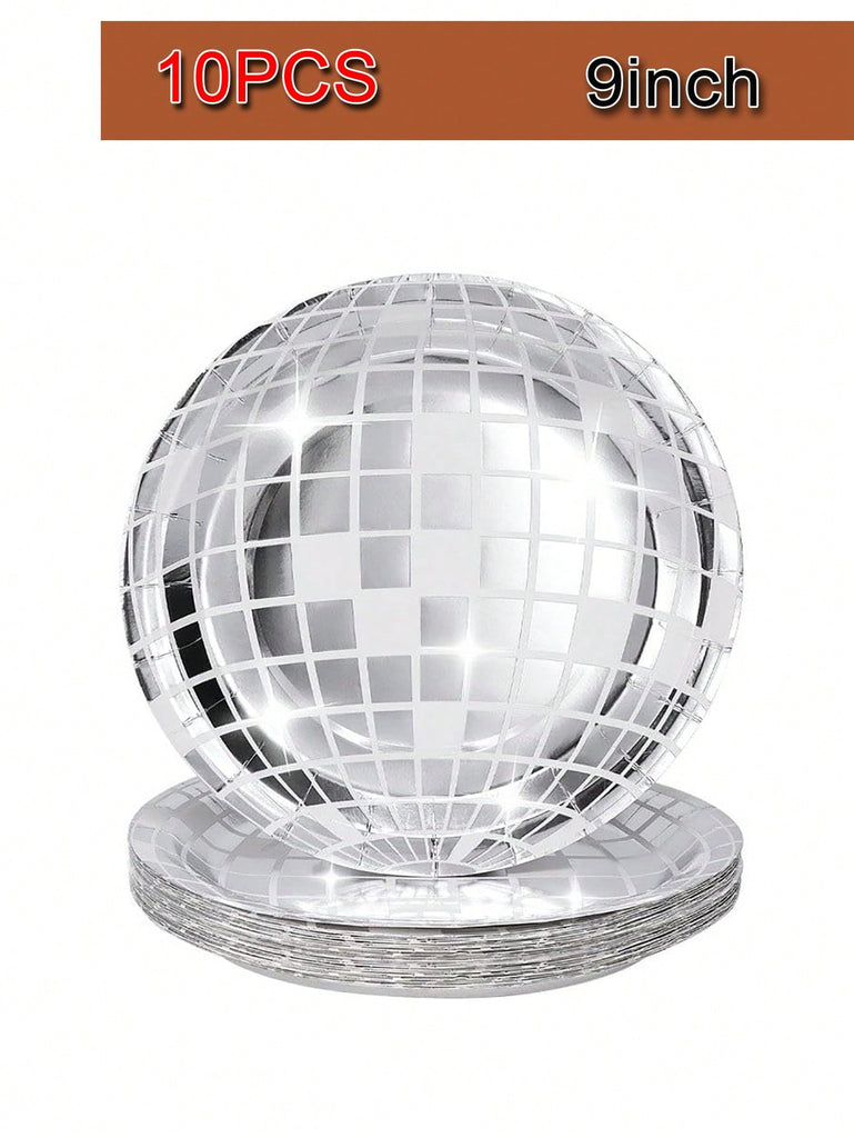 10pcs Disco Paper Plates, Silver Foil Disposable Paperboard Plates, 70s Disco Party Supplies, Bachelor Board Disco Ball Dessert Dinner Board Birthday 70s Disco Party Wedding Includes 7 "/9" Plates, 9OZ Paper Cup, Napkins
