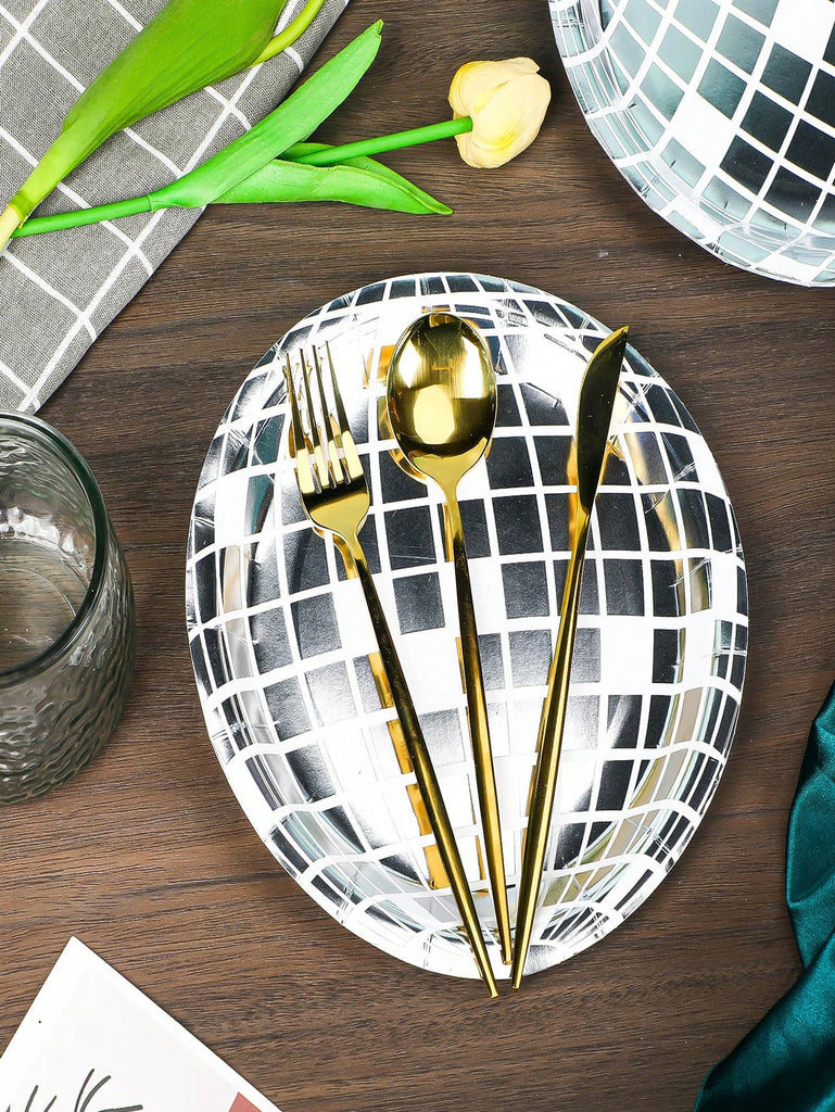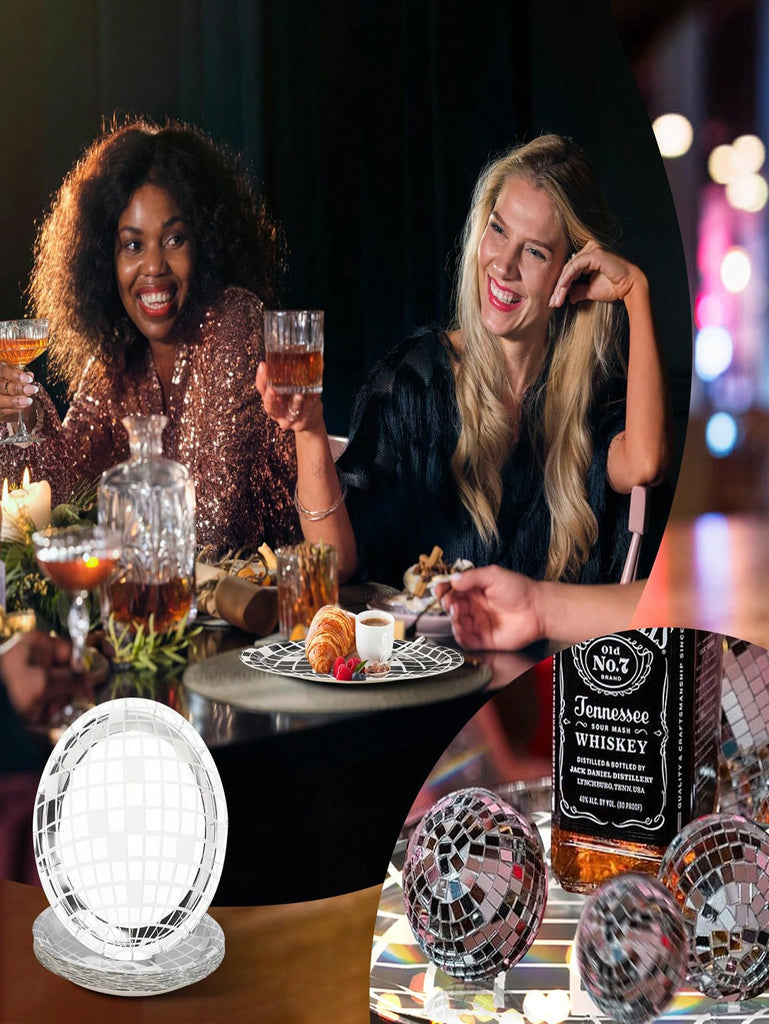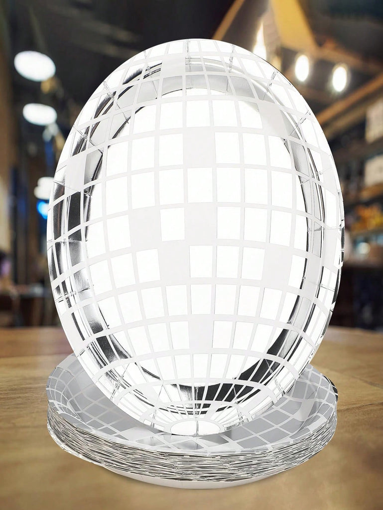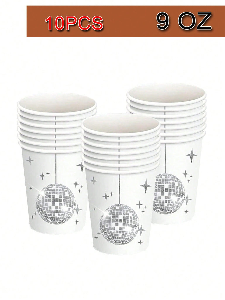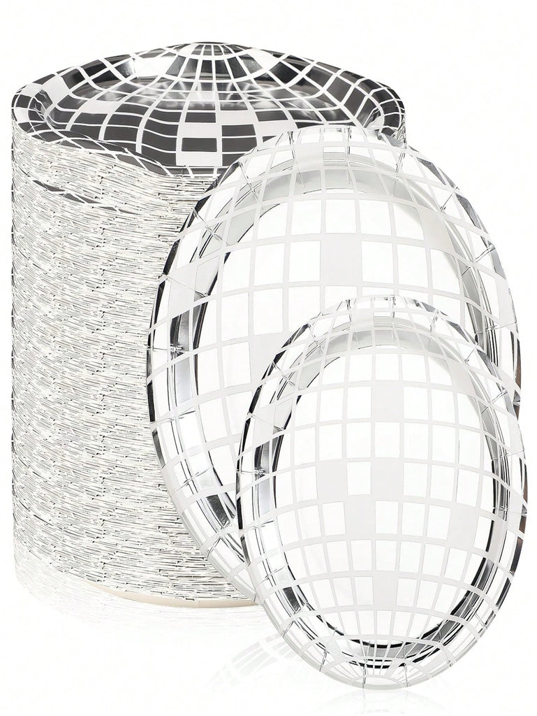 10pcs Disco Paper Plates, Silver Foil Disposable Paperboard Plates, 70s Disco Party Supplies, Bachelor Board Disco Ball Dessert Dinner Board Birthday 70s Disco Party Wedding Includes 7 "/9" Plates, 9OZ Paper Cup, Napkins