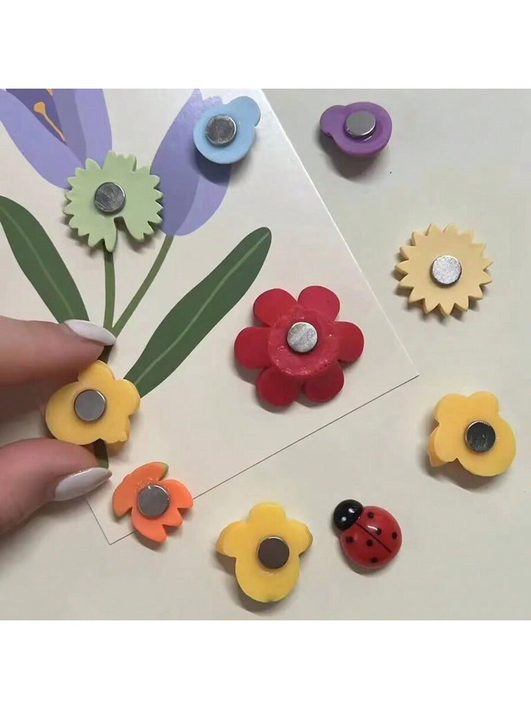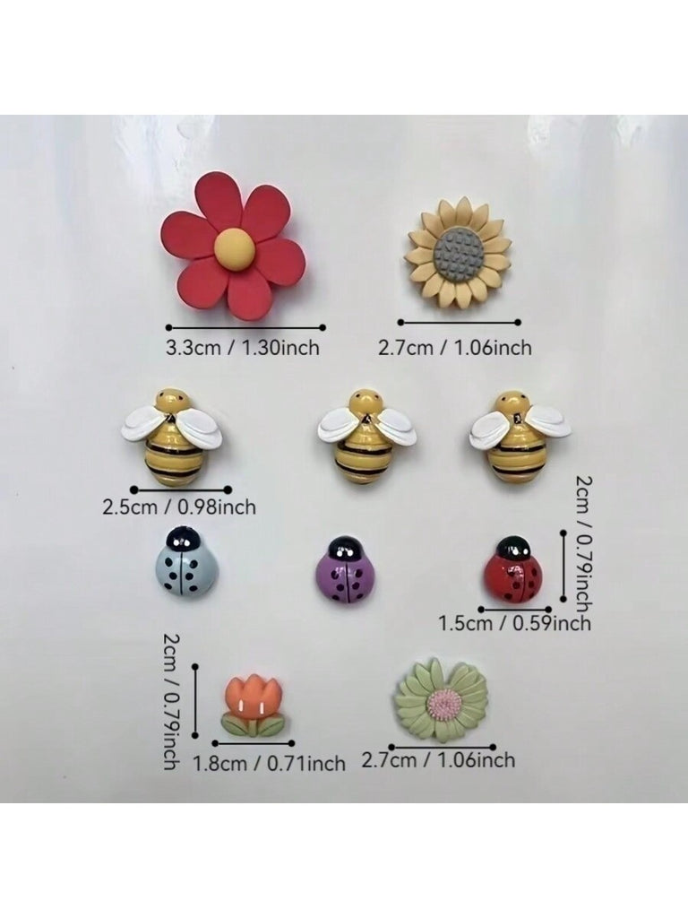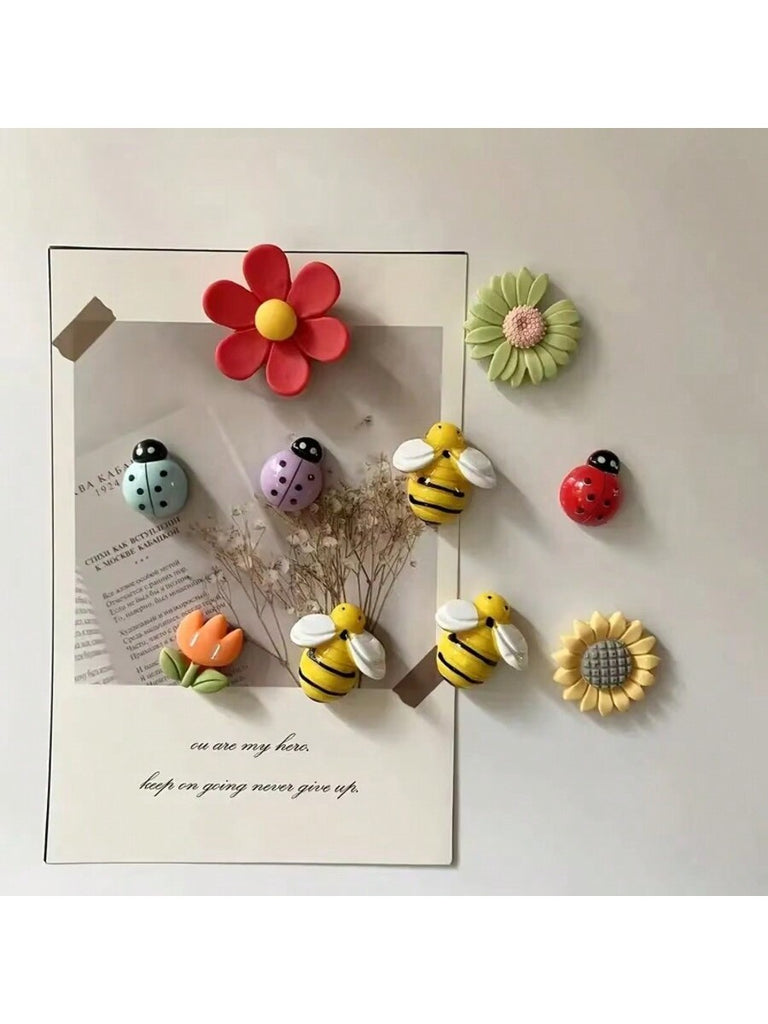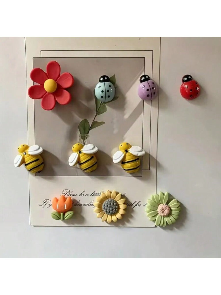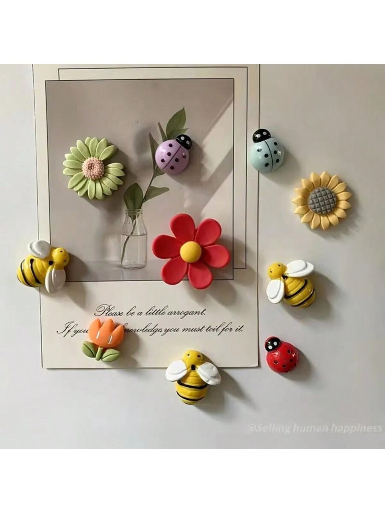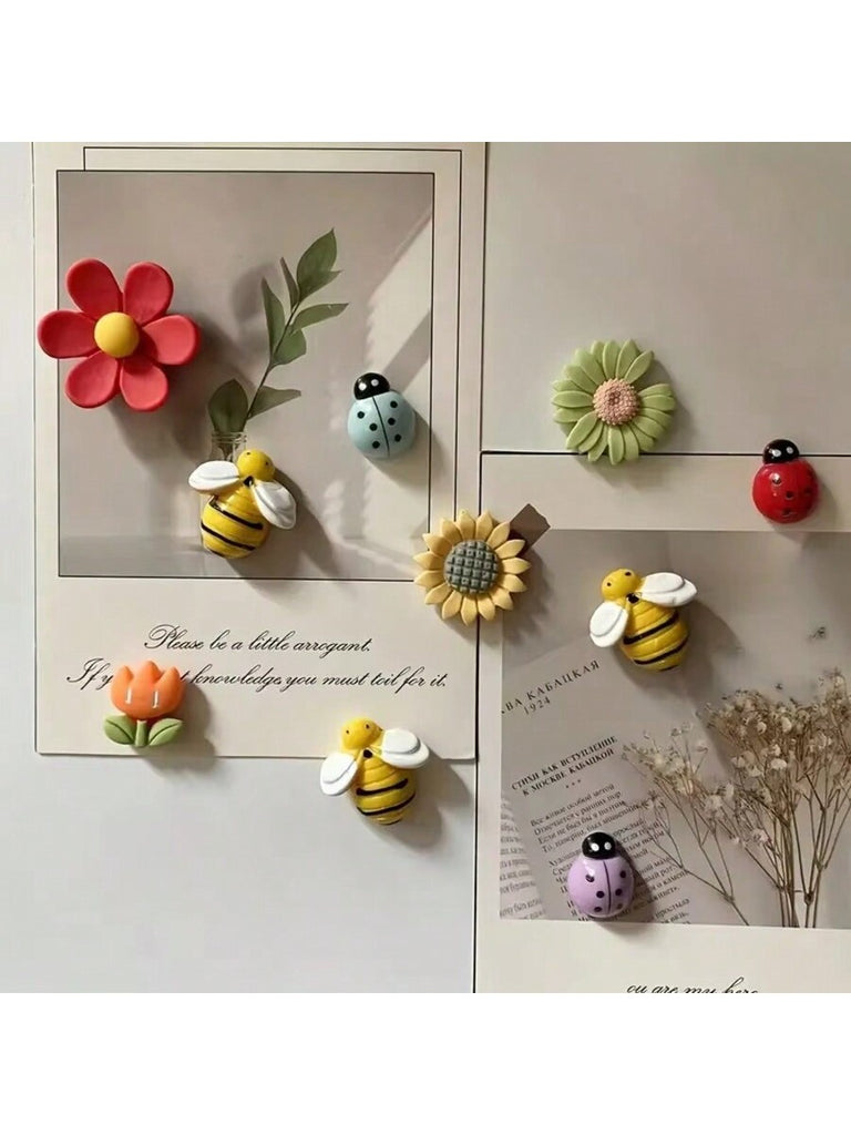 10pcs Flower, Bee, Ladybug Shaped Fridge Magnets, Cute Decorative Magnets, Personalized Refrigerator Stickers For Kitchen, Office, Whiteboard, Storage Cabinets And Dishwasher, Kitchen & Home Decoration, HChrismas Gifts Holiday And Party Favors